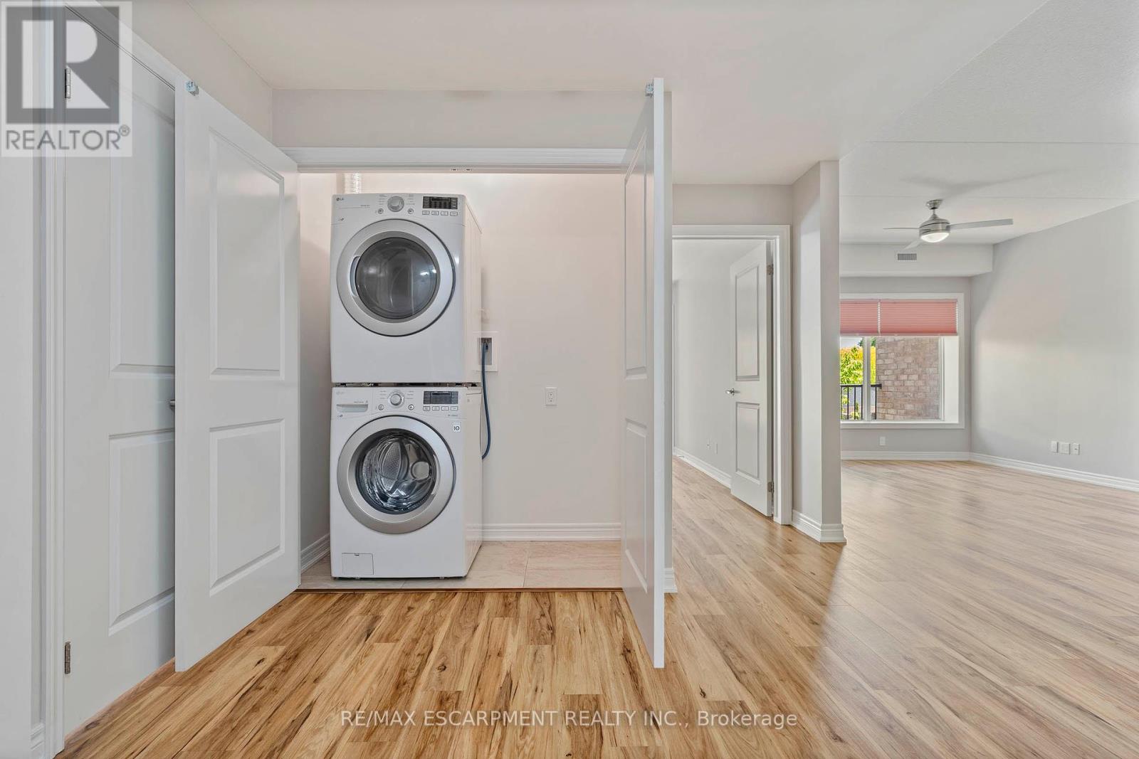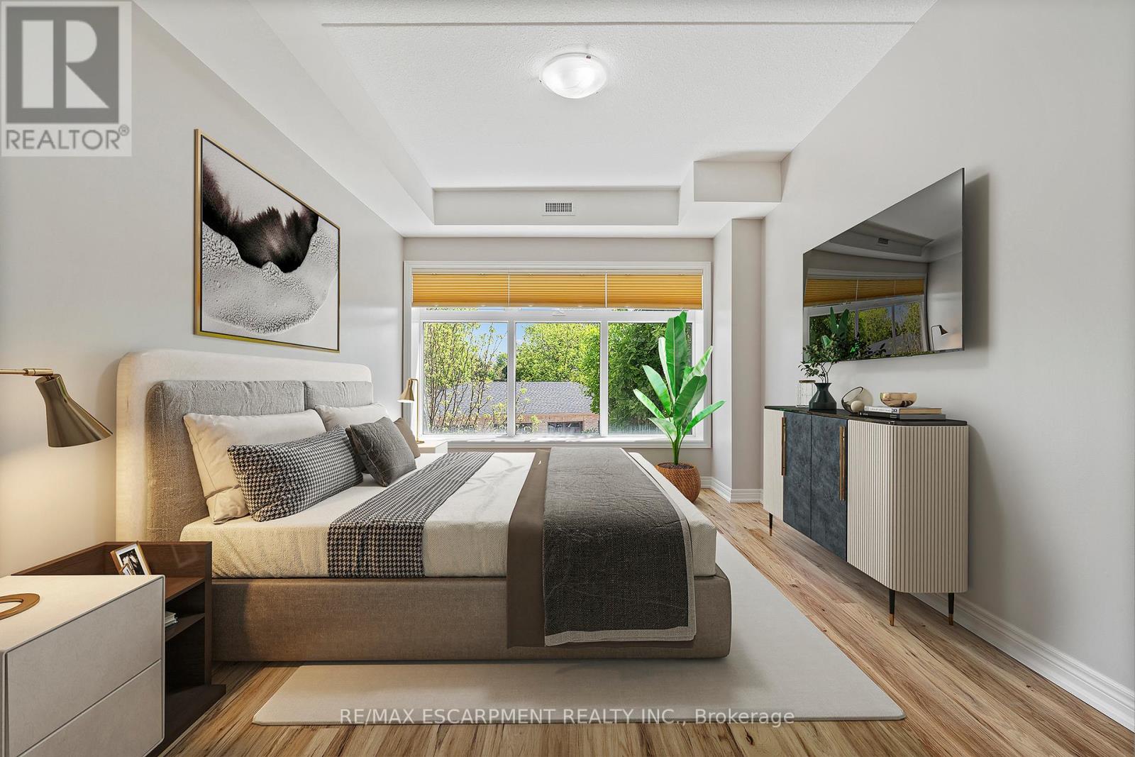 $523.26 MonthlyOne of the only PRIVATE courtyard south-facing units for sale! Have you been wanting to right-size but didn't want to give up the conveniences of a house? Welcome to easy, elegant living in this beautifully maintained south-facing condo, nestled in a sought-after adult-oriented community in Niagara Falls. Offering all the comforts of a traditional home, without the upkeep, this spacious 1,185 square foot residence features your own private garage. This isn't just a parking spot - it's a secure garage that you own, plus an exclusive additional surface parking space and a personal storage locker. This suite is like no other in the building! Freshly painted and overlooking the heated saltwater pool, the condo offers serene privacy with views framed by a mature ornamental pear tree. Inside, you'll find a warm, welcoming space finished with over $15,000.00 in upgrades. The custom upgraded Stone Natural Wood flooring in Pawnee Pecan, known for its style, comfort, and durability. The kitchen and both bathroom vanities are upgraded and fitted with Rev-A-Shelf wire pull-out organizers, while elegant tile backsplashes add a refined touch. Additional upgrades include wired-in motion-sensor closet lighting, Levol or Premium Top-Down Bottom-Up cordless blackout shades, and a steel garage door with a deadbolt for added peace of mind. You'll also enjoy granite countertops, full-sized in-suite laundry, and thoughtfully designed closet organizers that maximize functionality. All of this is set within a vibrant, friendly community that offers a community garden, a fully equipped exercise room, and a cozy building parlour perfect for socializing. Whether you're relaxing poolside or entertaining guests, this is low-maintenance retirement living at its finest. (id:51158)