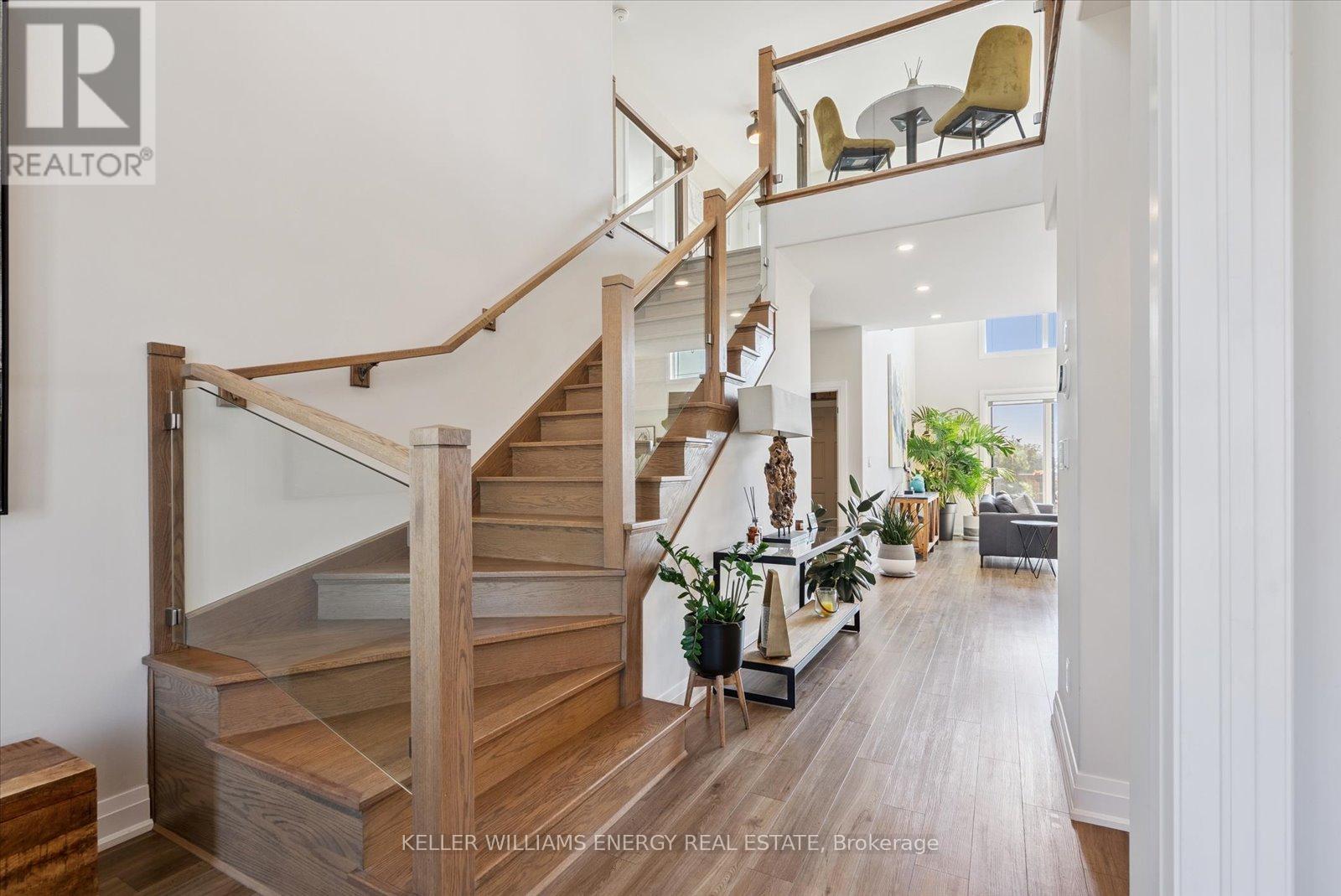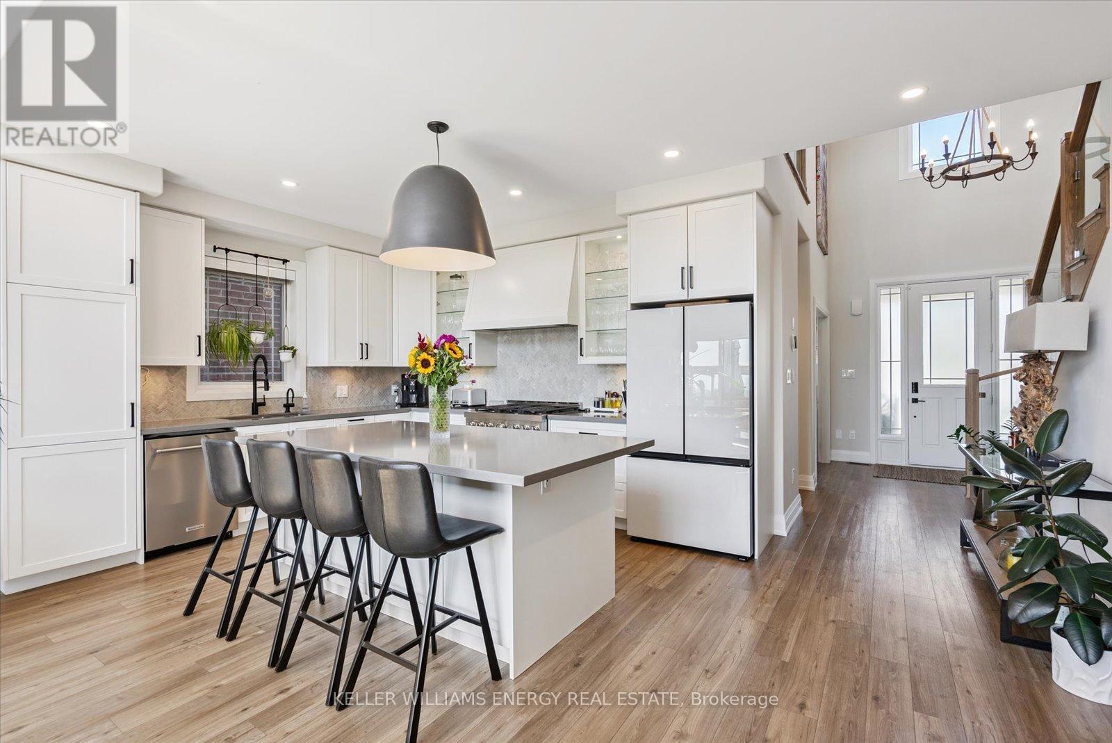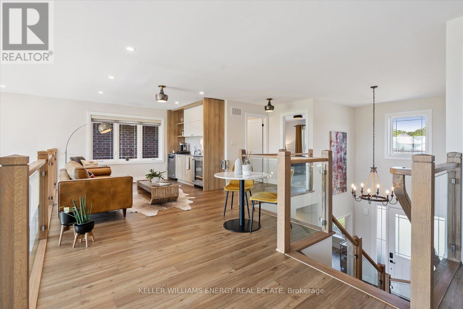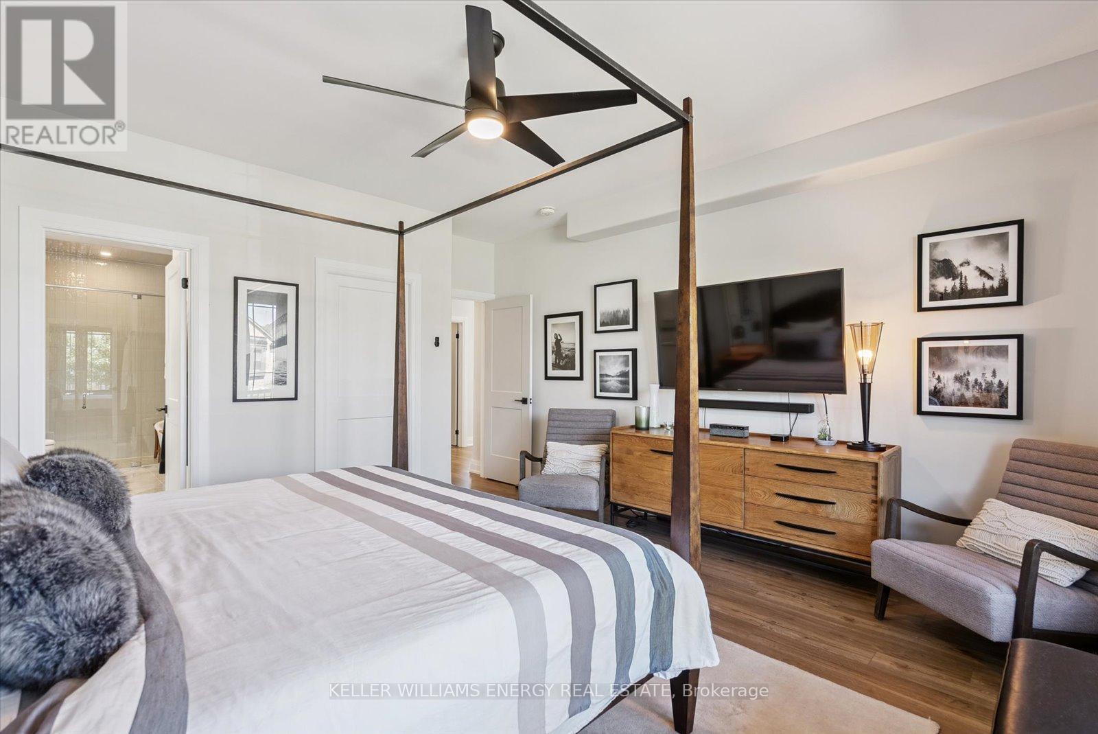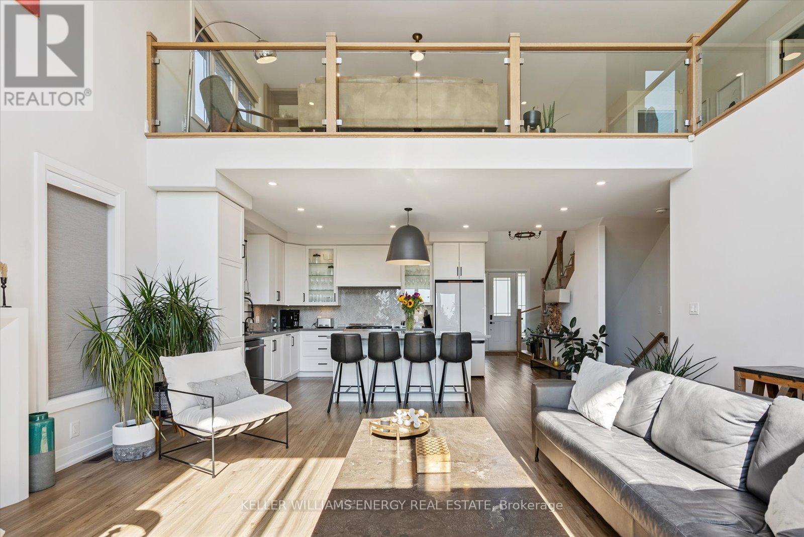 Life at 213 Strachan is defined by light, space, and connection. Wrapped in grey stone and brick with heritage-inspired charm, this 4 bedroom, 4 bathroom executive bungaloft offers a warm sophistication that feels both elevated and inviting. Thoughtfully designed for ease of living, it features a main-floor primary suite, blending the convenience of bungalow-style living with the versatility of a lofted design. Mornings begin in the south-facing living room, where 19-foot ceilings and floor-to-ceiling windows flood the space with sunlight. The open kitchen with oversized island makes gatherings effortless, while the front dining room offers an intimate setting for dinner parties. The primary suite provides a private retreat, complete with a spa-like ensuite and a custom walk-in closet. Every bedroom in the home features built-in organizers, ensuring storage is as elegant as it is functional. Upstairs, the loft was designed for moments to share - pour a drink at the wet bar, then step onto the sun deck to watch the sunset over the golf course and lake. With gas and water lines already in place, it's an outdoor space ready for summer dinners or quiet evenings under the stars. Three additional bedrooms and an additional two well-planned bathrooms give family and guests their own comfortable corners of the home. When it's time to unwind, head downstairs to the custom theatre for movie nights, or outside to the landscaped backyard, where a composite deck, hot tub, and lush gardens create a private oasis. With a second gas hook-up for the grill, entertaining flows easily from indoors to out. Every detail has been considered - from the EV charger in the garage to the timeless architectural design of the home itself. Just minutes from Port Hope's historic downtown, golf, and the lake, this residence offers not only a place to live, but a lifestyle to cherish. (id:51158)