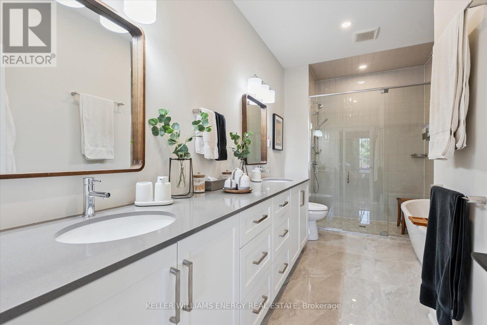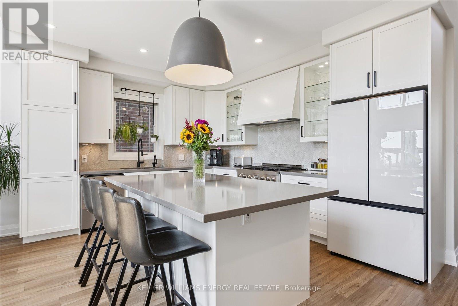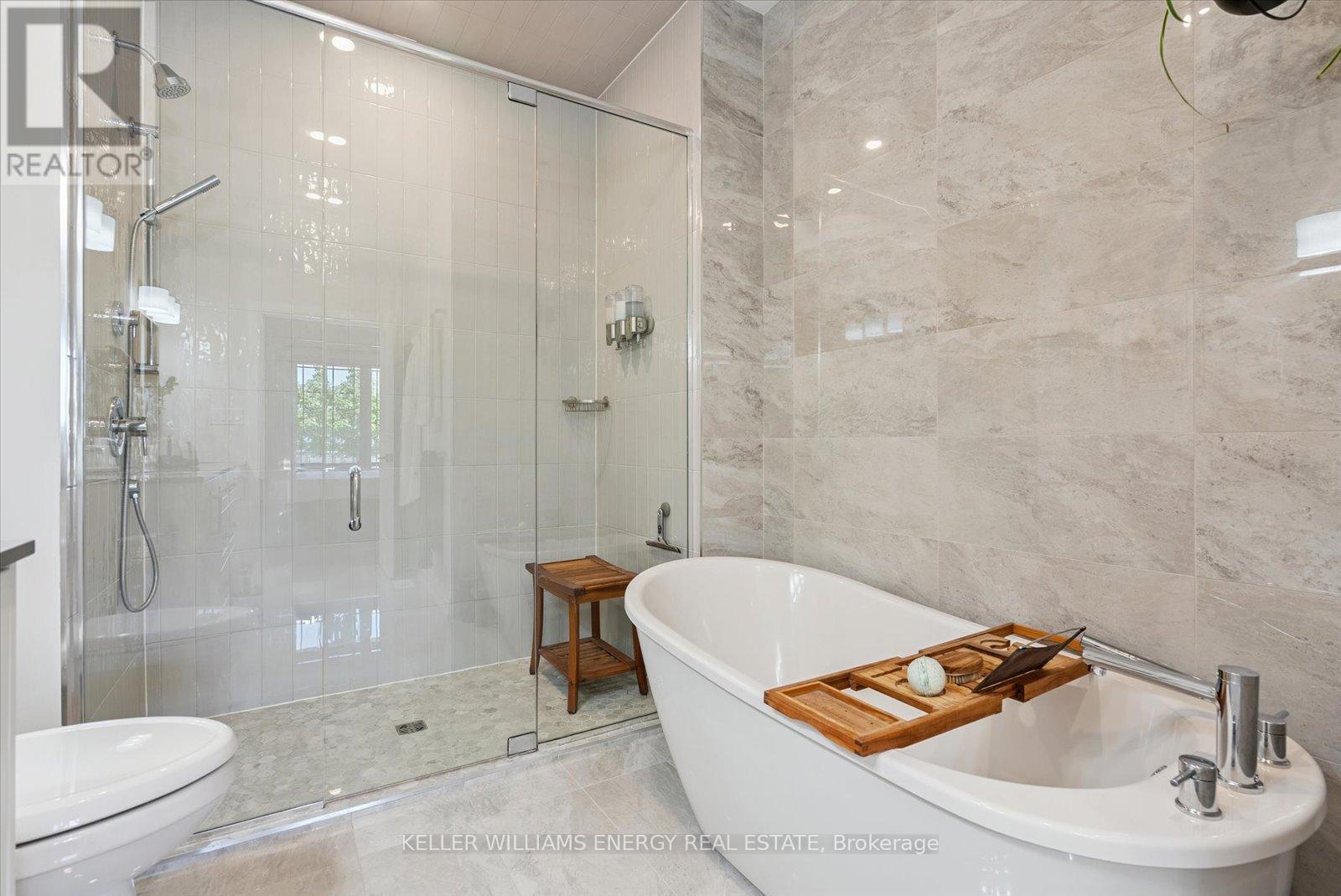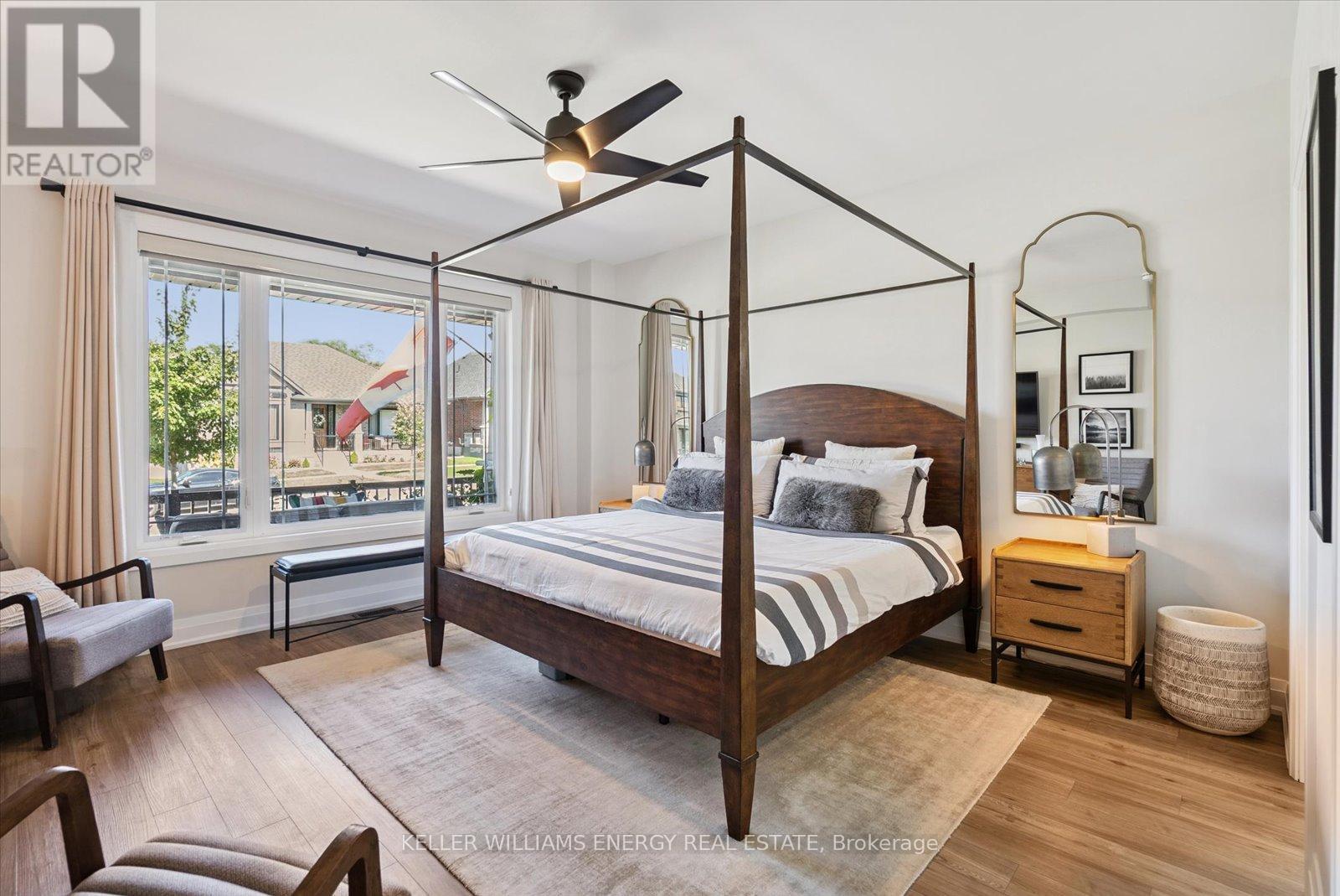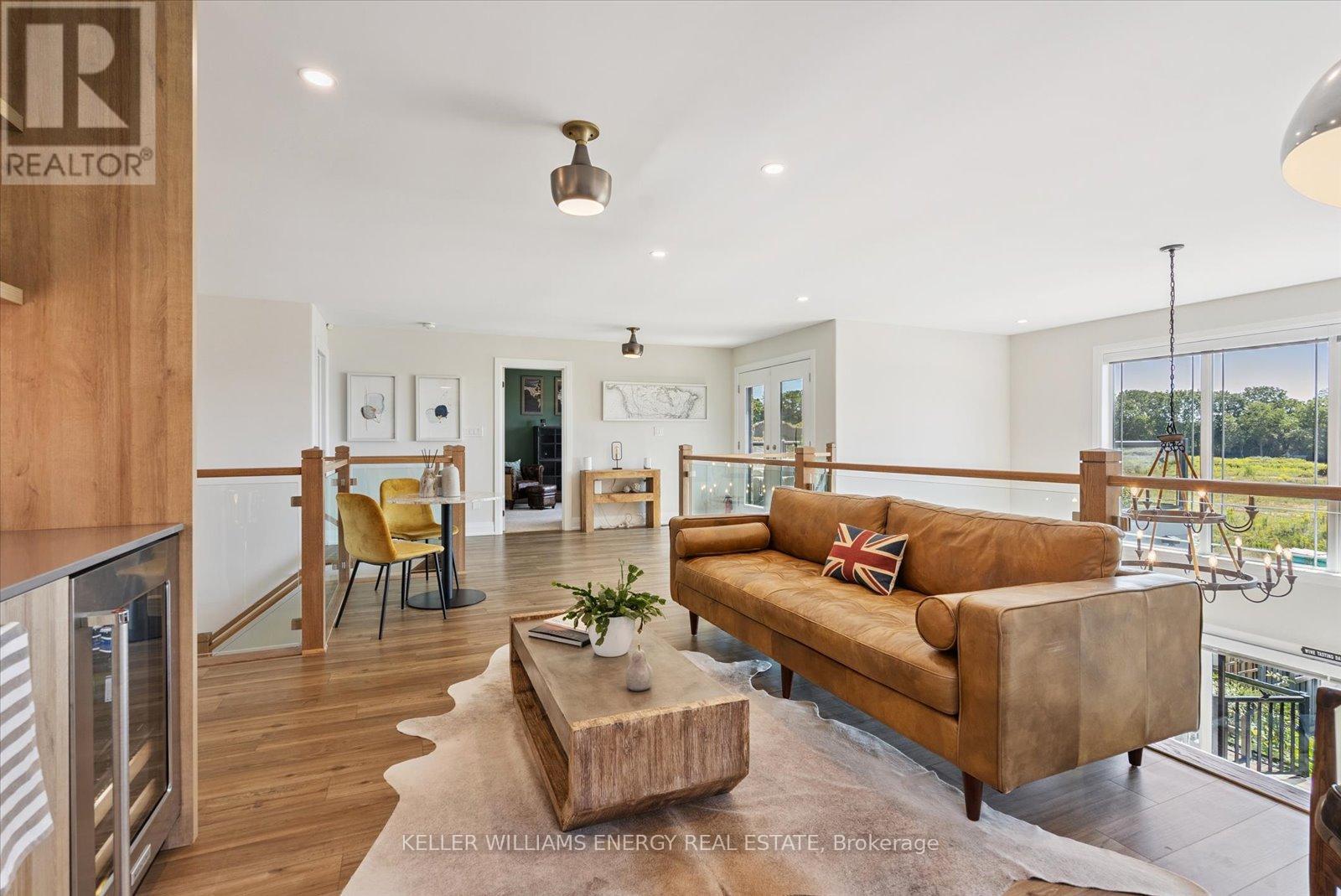 Life at 213 Strachan is defined by light, space, and connection. Wrapped in grey stone and brick with heritage-inspired charm, this 4 bedroom, 4 bathroom executive bungaloft offers a warm sophistication that feels both elevated and inviting. Thoughtfully designed for ease of living, it features a main-floor primary suite, blending the convenience of bungalow-style living with the versatility of a lofted design. Mornings begin in the south-facing living room, where 19-foot ceilings and floor-to-ceiling windows flood the space with sunlight. The open kitchen with oversized island makes gatherings effortless, while the front dining room offers an intimate setting for dinner parties. The primary suite provides a private retreat, complete with a spa-like ensuite and a custom walk-in closet. Every bedroom in the home features built-in organizers, ensuring storage is as elegant as it is functional. Upstairs, the loft was designed for moments to share - pour a drink at the wet bar, then step onto the sun deck to watch the sunset over the golf course and lake. With gas and water lines already in place, it's an outdoor space ready for summer dinners or quiet evenings under the stars. Three additional bedrooms and an additional two well-planned bathrooms give family and guests their own comfortable corners of the home. When it's time to unwind, head downstairs to the custom theatre for movie nights, or outside to the landscaped backyard, where a composite deck, hot tub, and lush gardens create a private oasis. With a second gas hook-up for the grill, entertaining flows easily from indoors to out. Every detail has been considered - from the EV charger in the garage to the timeless architectural design of the home itself. Just minutes from Port Hope's historic downtown, golf, and the lake, this residence offers not only a place to live, but a lifestyle to cherish. (id:51158)