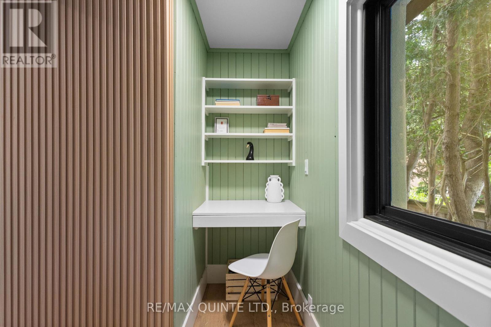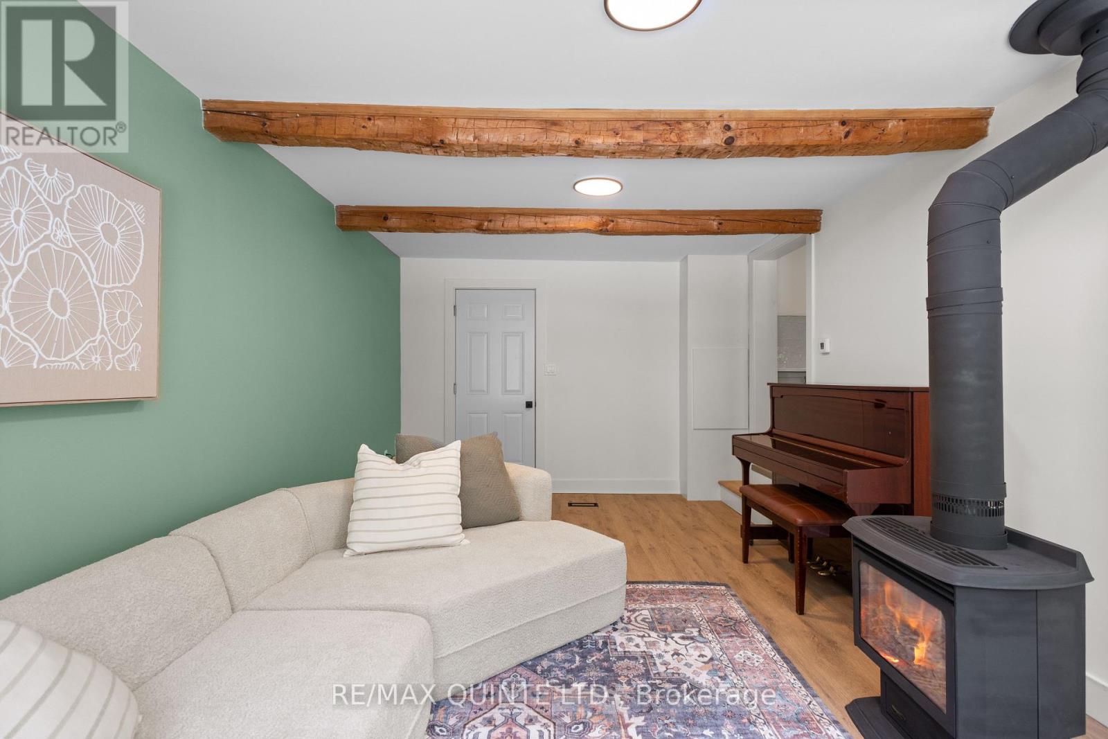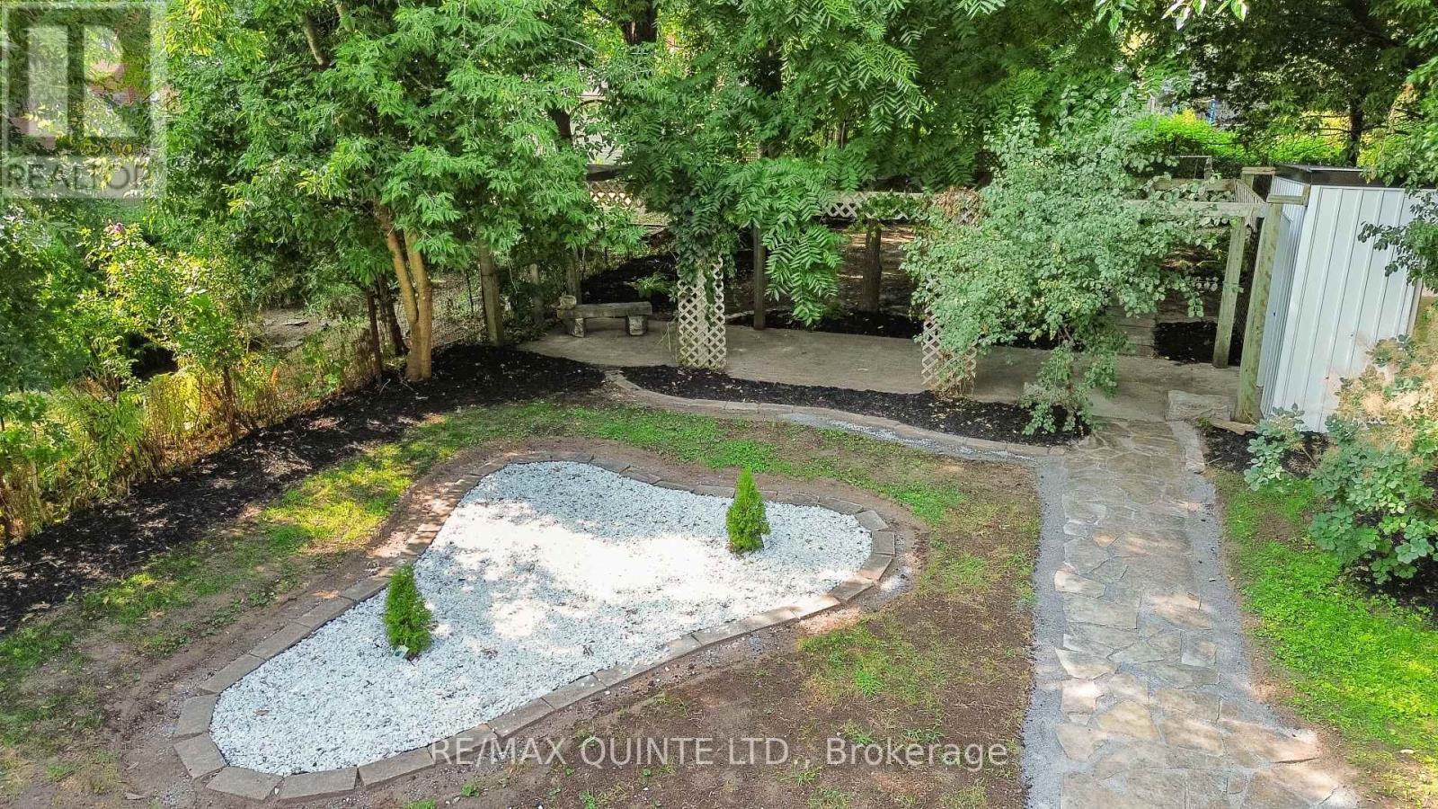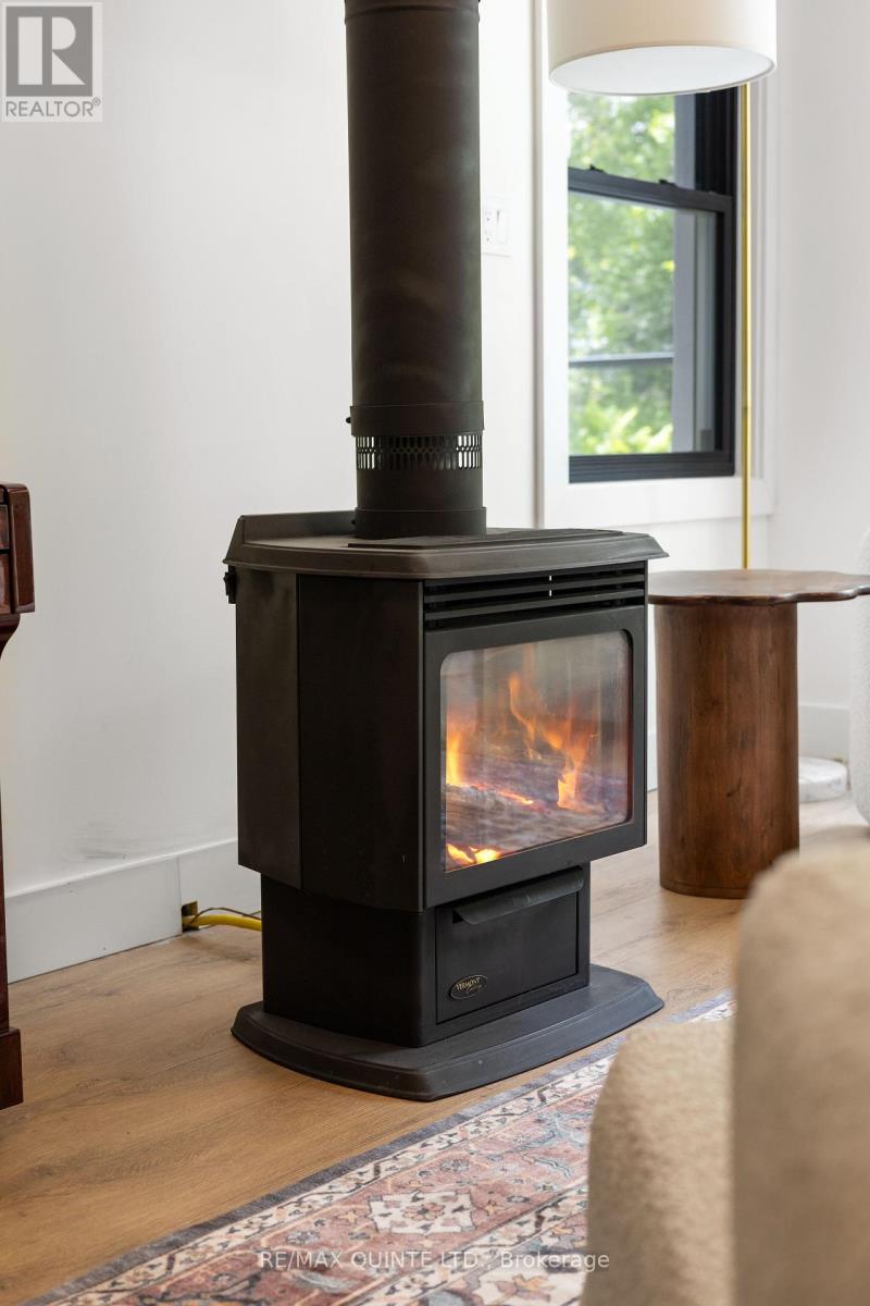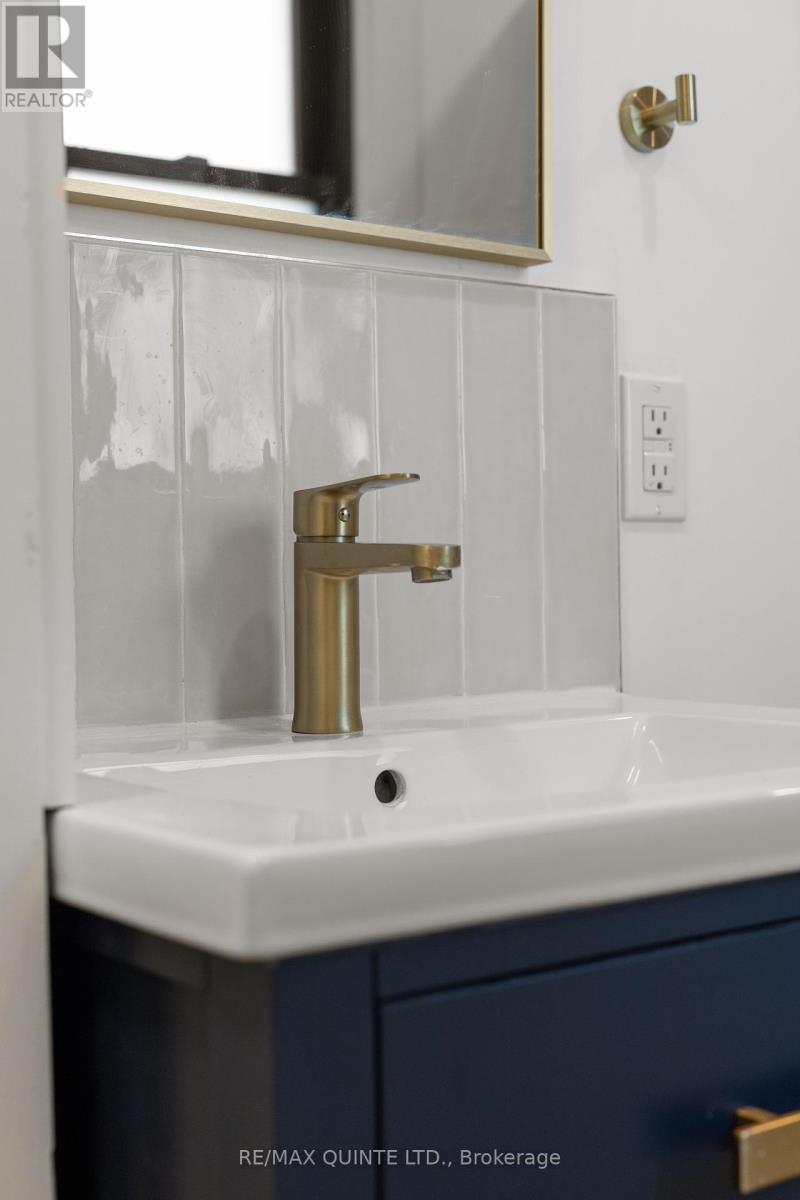 Stunning modern architectural home in the heart of Old East Hill, set on a private 175+ ft lot. Completely reimagined and thoughtfully renovated, this one-of-a-kind residence offers 3 bedrooms, 3.5 bathrooms, and multiple spaces designed for everyday living and entertaining. The striking stone and stucco exterior, attached garage, covered porch, and solarium create a bold first impression. Inside, the spacious kitchen steps down to a sunken living room with exposed beams, a gas fireplace, and oversized rear-facing windows that bring the outdoors in. A 2-piece bath and convenient laundry area are tucked away enroute to the open-concept living and dining area featuring modern lighting, a second gas fireplace, a wet bar, and access to the expansive composite deck with glass railings. Upstairs, all three bedrooms are paired with full bathrooms for ultimate convenience. The primary suite includes a walk-in closet, feature wall with sconce lighting, and a walkout to a private terrace overlooking the park-like backyard. Additional outdoor highlights include a lower-level concrete patio and steps wrapping around the eastside. Situated in one of Belleville's most sought-after neighbourhoods, this home stands out for its design, finishes, and exceptional setting. (id:51158)