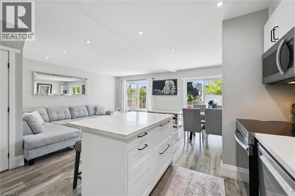 Welcome to beautiful North Oakville in the family friendly River Oaks neighborhood! Step inside this incredibly renovated TURN KEY freehold townhome. With almost 1800 square feet of total living space, this property features a recently finished lower level, 3 bedrooms with a rare 3 full bathrooms and parking for 3 cars! This open concept replaced eat in kitchen with quartz counters, stainless steel appliances and glass backsplash, spacious living and dining room all with replaced floors and an incredible main floor bonus den/office or even main floor bedroom (can be easily convertible back to a single garage). Head out back to a flagstone patio and large shed, all in a very rare 133 foot fully fenced lot. Upstairs offers a primary bedroom with a newly finished (rare for this layout) 4pc ensuite bathroom and a custom wall closet system, two more bright spacious bedrooms both with double closets and freshly renovated 3 pc main bathroom. Newly finished basement has an open recreation room/playroom and a new 3pc bathroom and laundry area. Talk about move in ready! Perfect growing family home or downsizing, close to all amenities, restaurants, highway access and all that Oakville has to offer! Don’t miss out on this beautiful townhome. (id:51158)
