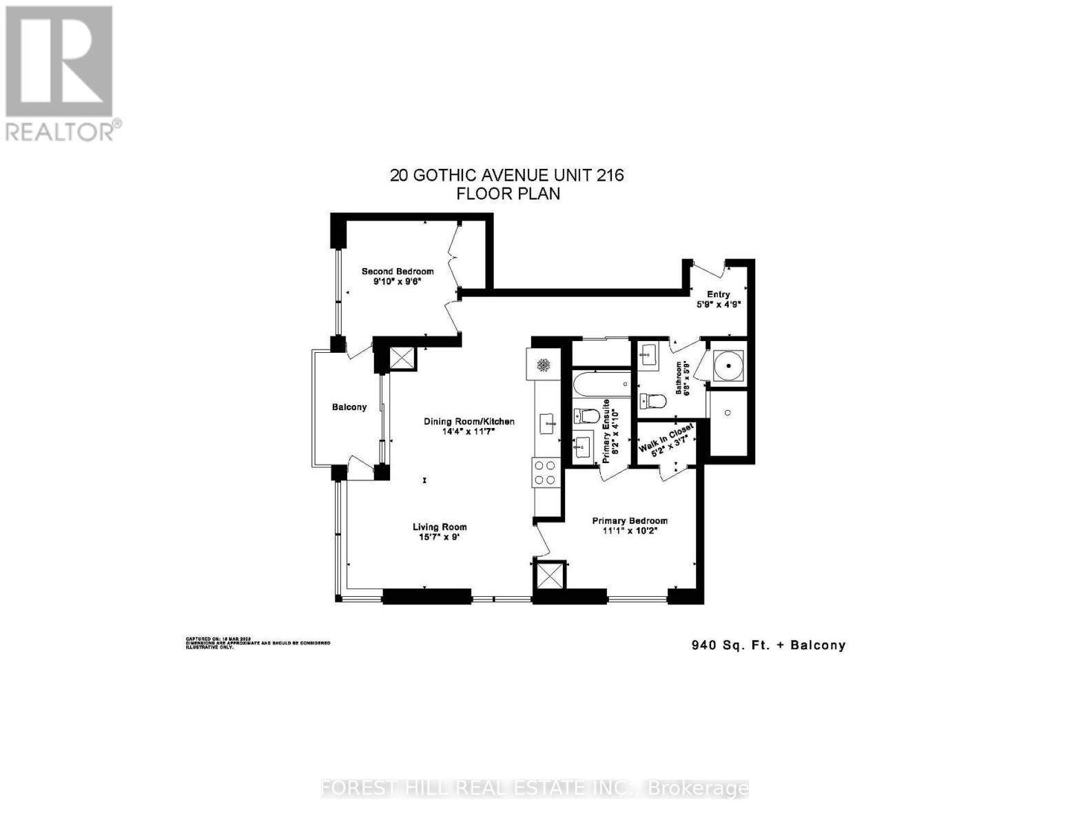 Welcome to 20 Gothic Avenue High Park Living at Its Finest Discover the perfect balance of urban convenience and natural beauty in this spacious 2-bedroom, 2-bathroom condo at 20 Gothic Avenue, ideally situated in the heart of High Park North. Just steps from Bloor West Village, the TTC subway, and directly across from High Park, this elegant residence offers a bright and open app 900sq ft layout with 9-ft ceilings, floor-to-ceiling windows, and a split-bedroom design for ultimate privacy. This stunning corner unit has 3 walk outs to balcony with wonderful tree lined views The living and dining area flows seamlessly into a modern kitchen featuring stainless steel appliances, a double sink, and ample cabinetry perfect for entertaining or everyday living. The primary suite includes a generous walk in closet, and ensuite bathroom, the second bedroom offers excellent storage and beautiful views ideal for guests or a home office. Additional features include full-size ensuite laundry, ample storage, one underground parking space, and a dedicated locker. Enjoy resort-style amenities including a 24-hour concierge, guest suites, party and billiards rooms, theatre, outdoor terrace with BBQs, and visitor parking. Located steps from charming cafés, boutiques, and top-rated restaurants, this is city living with a serene park-side feel. Welcome home to 20 Gothic Avenue your urban retreat in the heart of High Park. (id:51158)