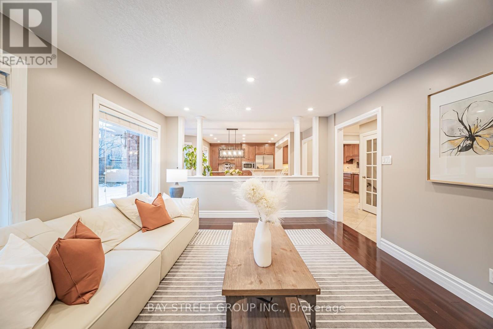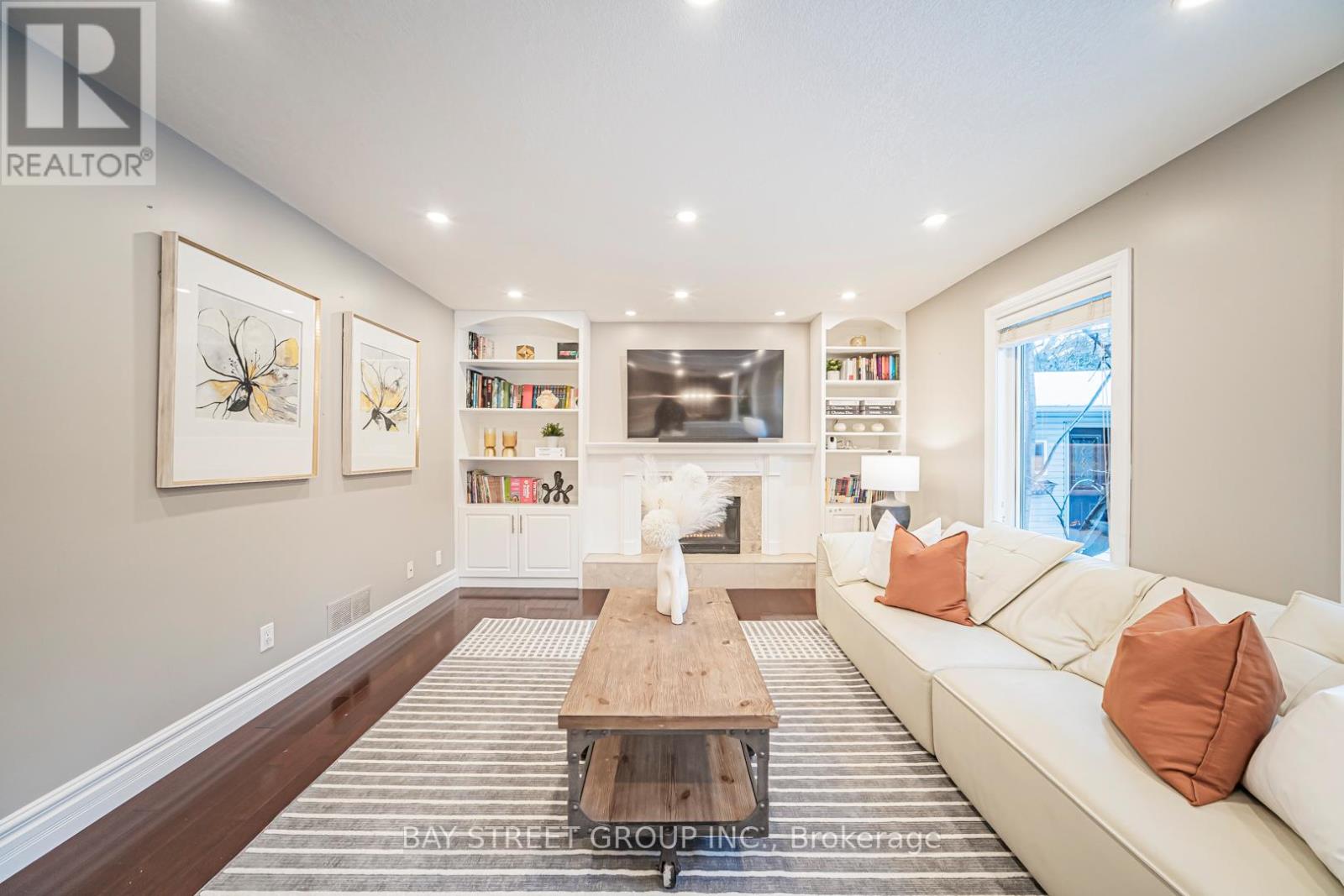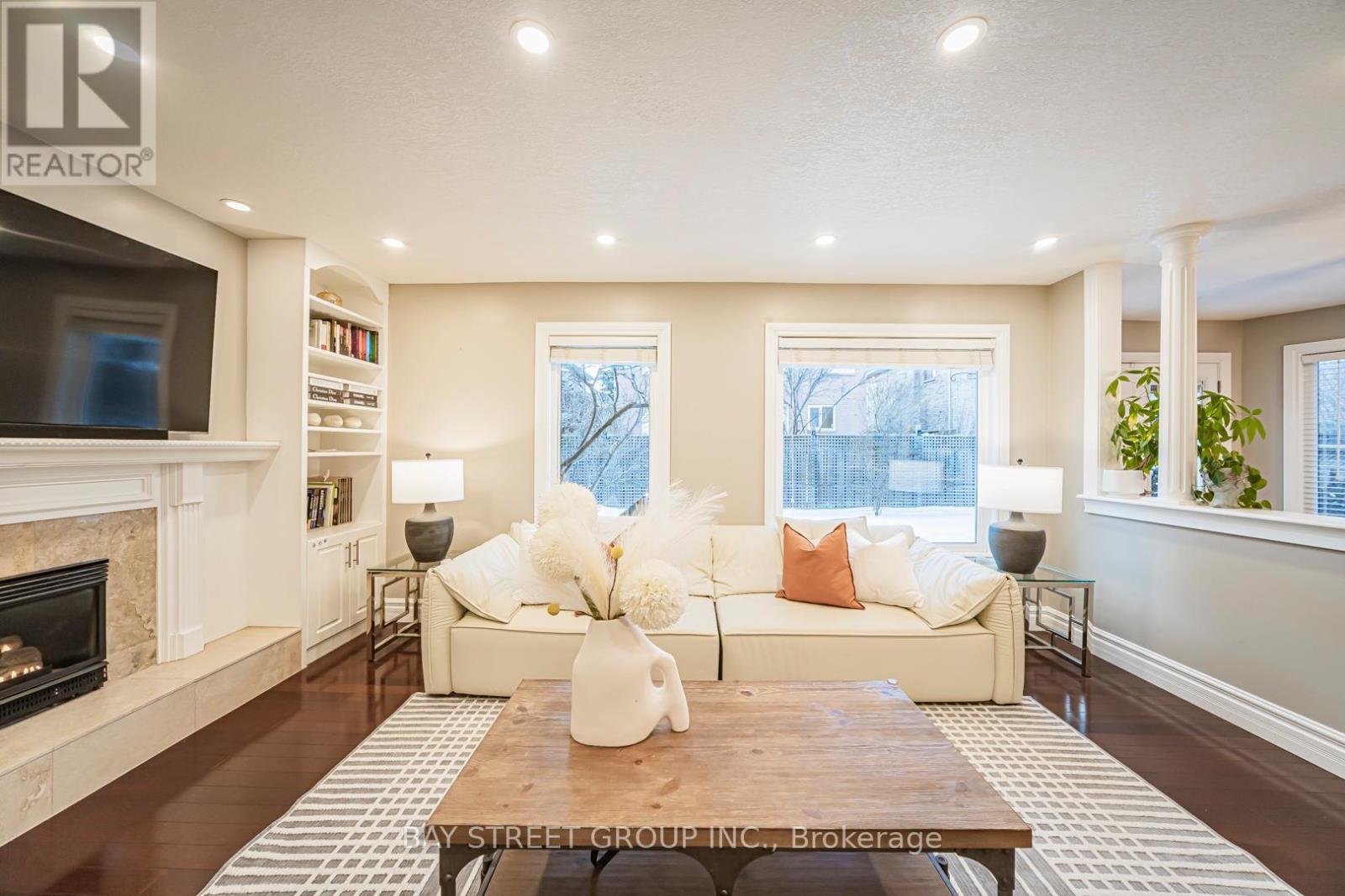 Beautiful and bright family home offering approximately 4,350 sq ft of total living space, located on a quiet crescent. Features a stamped concrete driveway and a 2-car garage. The main floor offers a functional open-concept layout with a formal living room, home office, oversized custom kitchen, spacious family room, laundry, and a 2-piece powder room. Hardwood flooring throughout the main and second levels, with pot lights throughout the main floor. The kitchen overlooks the large family room with a gas fireplace and built-in bookshelves, ideal for both everyday living and entertaining. The second level offers 4 bedrooms, including a primary bedroom with his and hers walk-in closets and a 4-piece ensuite. A fully finished basement provides additional living space. The fan-shaped lot boasts an impressive 70-ft wide backyard, offering exceptional outdoor space. Steps to scenic trails and parks, and conveniently close to shopping and everyday amenities. (id:51158)