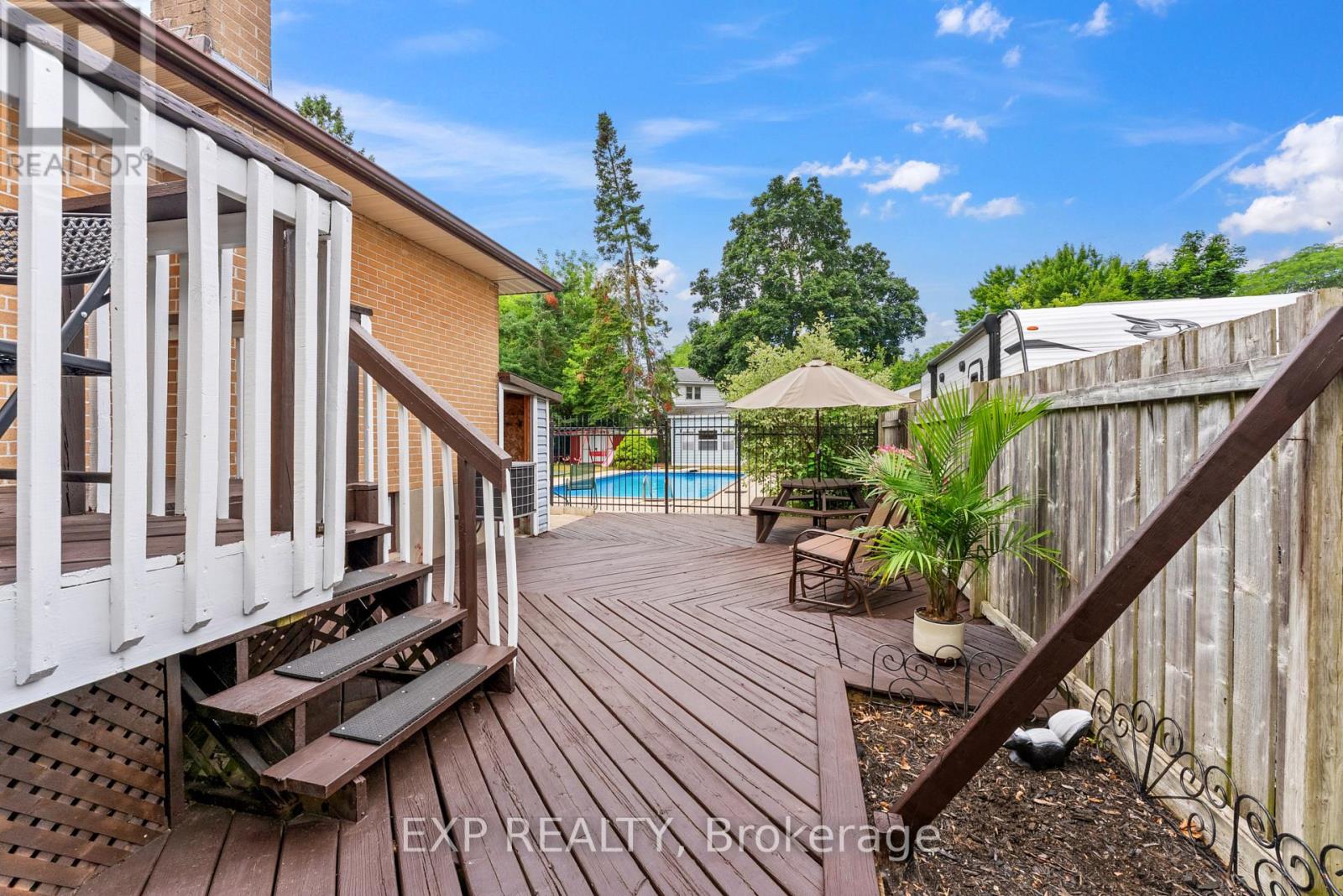 Welcome to 218 Farley Ave, where everyday living feels elevated. Tucked into Belleville's sought-after East End, this bright raised bungalow delivers the kind of flexibility and comfort that lets you live exactly the way you want. Mornings start with sunlight pouring into the open main floor, where hardwood floors, a warm living space, 2 large bedrooms, and a versatile dining room (formerly a third bedroom) create an easy, inviting flow. Downstairs, the separate in-law suite opens the door to true lifestyle freedom-space for extended family, a private retreat for adult kids, or a turnkey income opportunity with its own entrance, full kitchen, large bedroom,, and rec room anchored by a cozy gas fireplace. Step outside and the property becomes a personal resort. A 16x32 saltwater in-ground pool framed by a dual-level deck, pool house, and private yard means summers spent hosting friends, relaxing after work, and creating memories without ever leaving home. With double gas lines for effortless BBQ nights, a covered walkout for added convenience, and an attached garage for storage or hobbies, this home blends practicality with the kind of amenities people dream about. Move-in ready and located in a quiet, established neighbourhood close to parks, schools, and waterfront trails, 218 Farley Ave offers a lifestyle of comfort, connection, and year-round enjoyment. (id:51158)