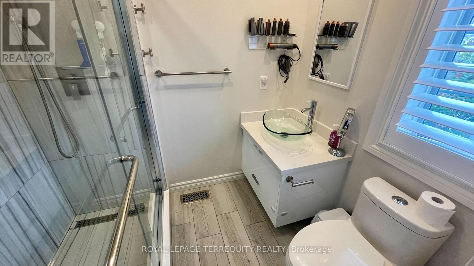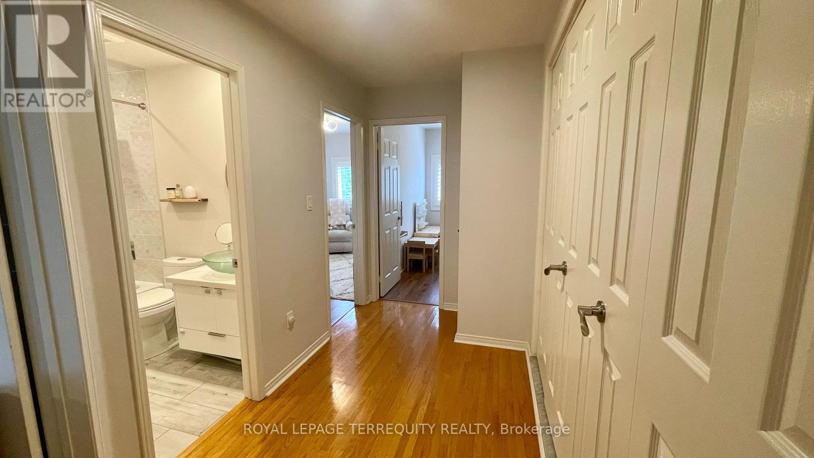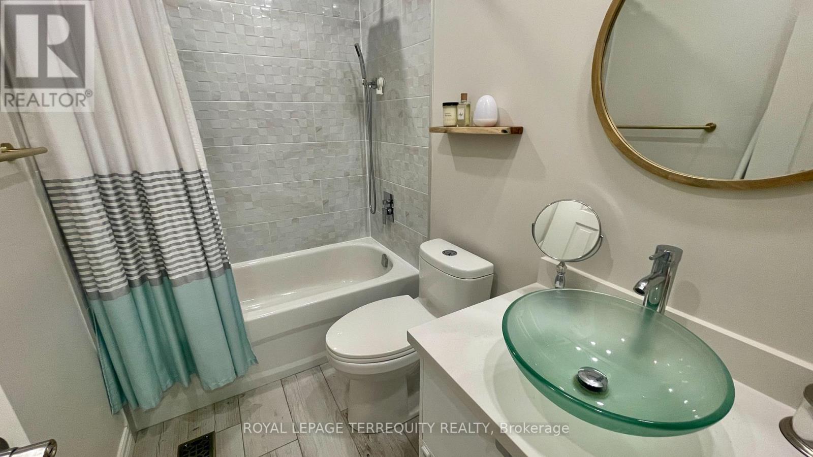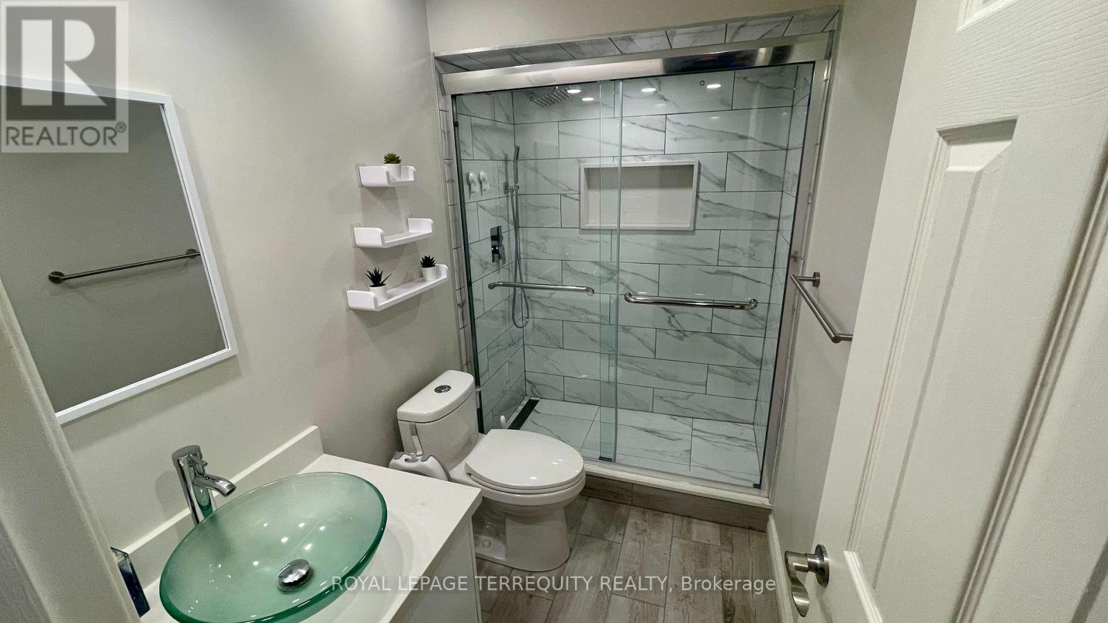 Step into this beautifully renovated 3-bedroom townhouse, where contemporary elegance meets functional design. The modern kitchen boasts sleek quartz countertops and breakfast bar, complemented by high-gloss cabinets & stainless steel appliances. The kitchen is well-lit with stylish pot lights that enhance the chic ambiance. The spacious layout is perfect for relaxing, bathed in natural light from large windows & overlooks a tranquil park. The walk-out basement adds versatility, dedicated office space and a full 3 pc bathroom, ideal for both work and leisure. A rare second-floor laundry area with ample shelving for optimal organization. Situated close to local parks, churches, & Go Stn, restaurants & shopping this townhouse combines convenience with luxury, offering a truly exceptional living experience. (id:51158)