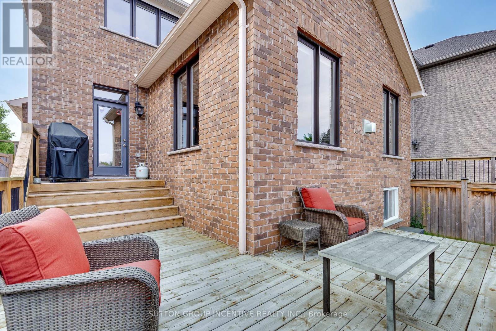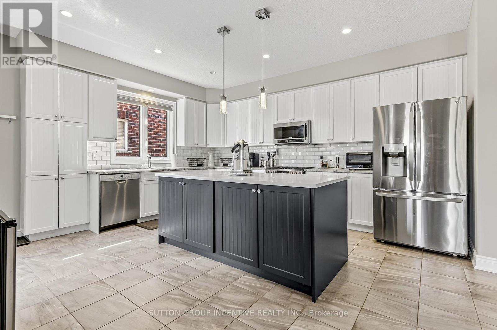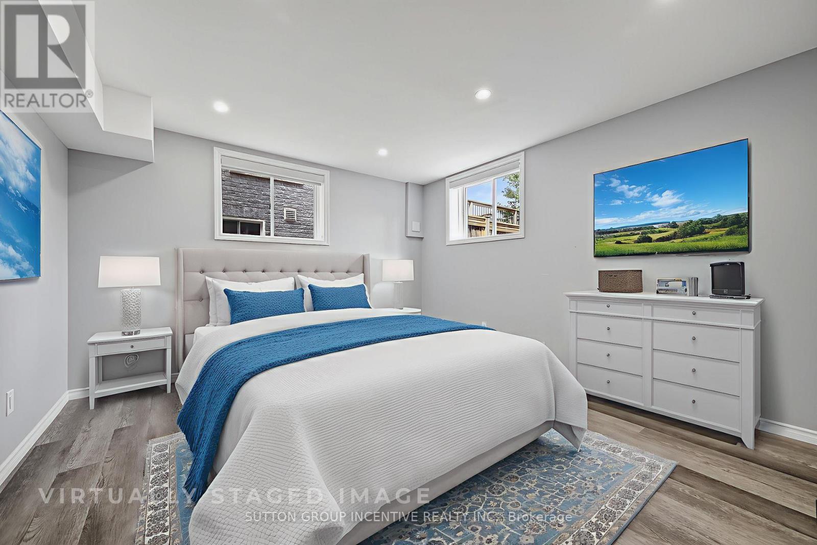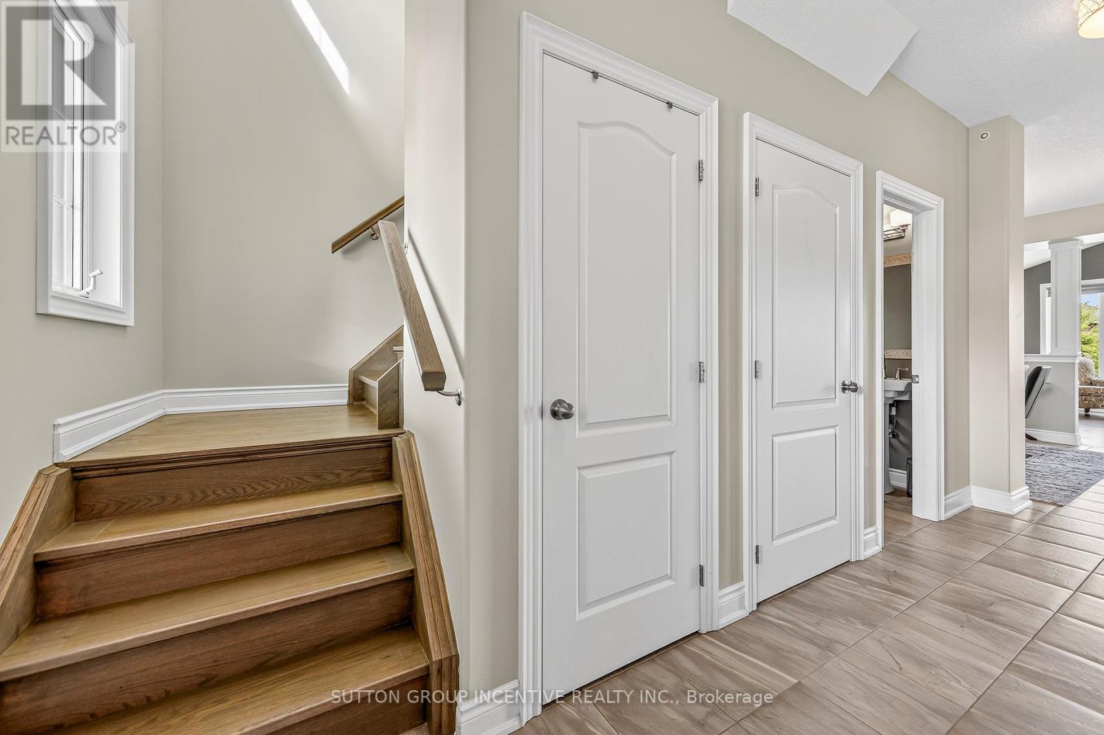 Stunning all-brick 3+1 bedroom executive home, built by the highly regarded Grandview Homes, and ideally located on a premium street in Barrie's prestigious Summerhill Estates community. Popular Derby 2 model, celebrated for its spacious and functional layout offering both style and comfort for modern family living. From the moment you step inside, you'll appreciate the thoughtful design and attention to detail. The main floor features 9-foot ceilings, upgraded oversized windows that flood the space with natural light, and elegant finishes with no carpet. The chefs kitchen is both stylish and practical, complete with a lrg island with stone countertops and built in beverage center, a gas stove and a tasteful backsplash. The open-concept great room boasts a soaring 17-foot ceiling, a floor-to-ceiling stone gas fireplace, and a bright, airy ambiance that's perfect for both everyday living and entertaining. Upstairs, the spacious primary suite offers a luxurious retreat with a beautifully appointed ensuite featuring in-floor heating, a walk-in glass shower, double sinks, and generous counter space. Two additional bedrooms on this level are perfect for children or guests, and the stylish main bathroom continues the home's high-end design aesthetic. The fully finished basement adds even more living space with high-end laminate flooring, large lookout windows, a rec room, an additional bedroom with a custom walk-in closet, and a modern 3-piece bathroom. Its an ideal setup for guests, in-laws, or a teen retreat. Step outside to enjoy the fully fenced backyard with gates on both sides for easy access, a custom-built deck that allows for various entertaining configurations, and a garden shed for additional storage. From the upper bedrooms, you can even enjoy views of Kempenfelt Bay. (id:51158)