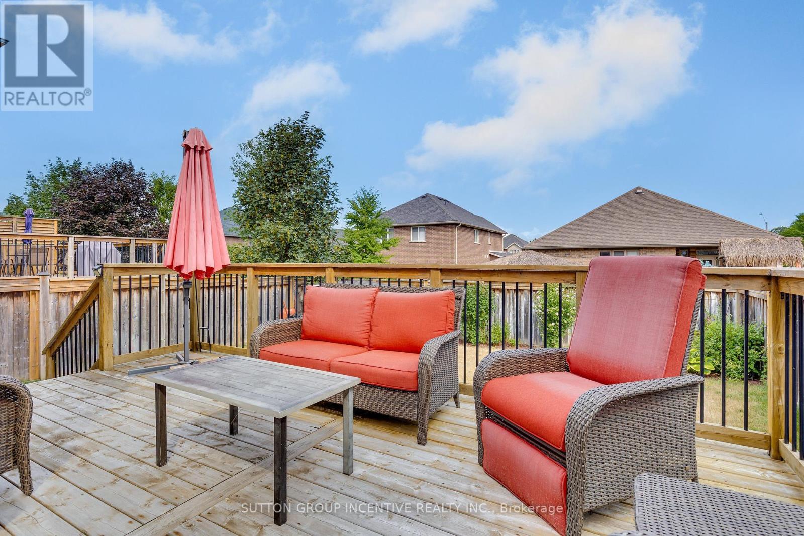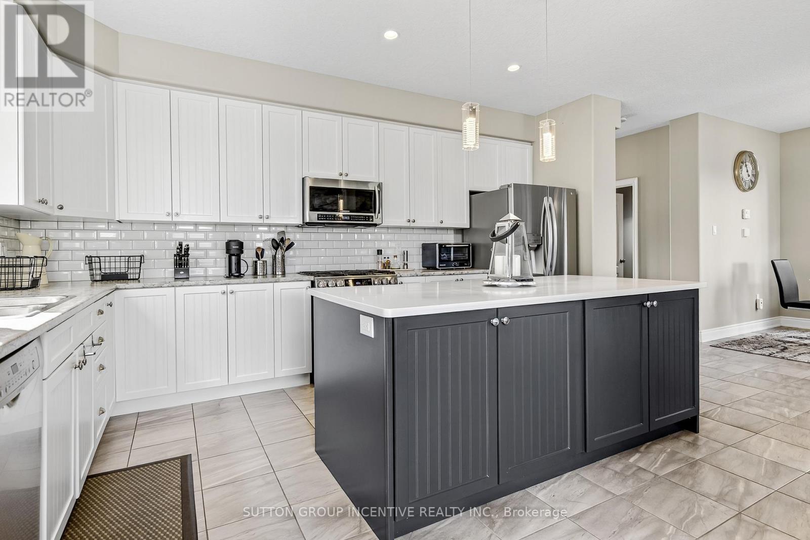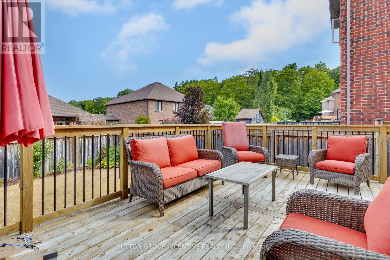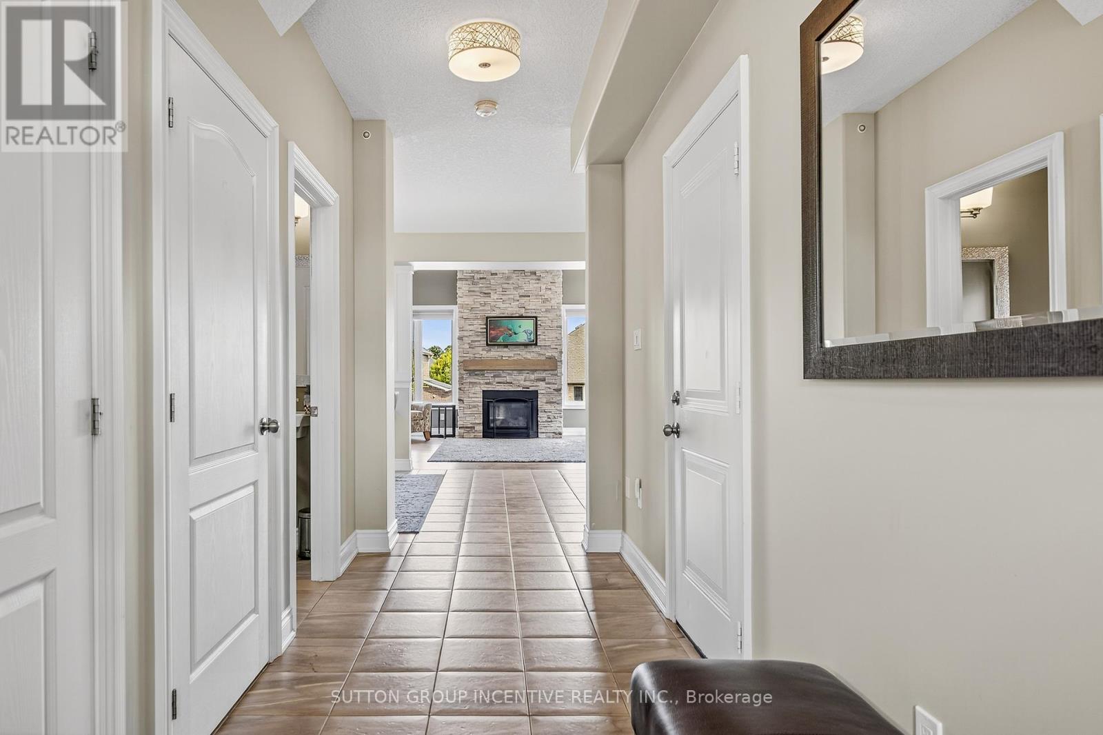 Stunning all-brick 3+1 bedroom executive home, built by the highly regarded Grandview Homes, and ideally located on a premium street in Barrie's prestigious Summerhill Estates community. Popular Derby 2 model, celebrated for its spacious and functional layout offering both style and comfort for modern family living. From the moment you step inside, you'll appreciate the thoughtful design and attention to detail. The main floor features 9-foot ceilings, upgraded oversized windows that flood the space with natural light, and elegant finishes with no carpet. The chefs kitchen is both stylish and practical, complete with a lrg island with stone countertops and built in beverage center, a gas stove and a tasteful backsplash. The open-concept great room boasts a soaring 17-foot ceiling, a floor-to-ceiling stone gas fireplace, and a bright, airy ambiance that's perfect for both everyday living and entertaining. Upstairs, the spacious primary suite offers a luxurious retreat with a beautifully appointed ensuite featuring in-floor heating, a walk-in glass shower, double sinks, and generous counter space. Two additional bedrooms on this level are perfect for children or guests, and the stylish main bathroom continues the home's high-end design aesthetic. The fully finished basement adds even more living space with high-end laminate flooring, large lookout windows, a rec room, an additional bedroom with a custom walk-in closet, and a modern 3-piece bathroom. Its an ideal setup for guests, in-laws, or a teen retreat. Step outside to enjoy the fully fenced backyard with gates on both sides for easy access, a custom-built deck that allows for various entertaining configurations, and a garden shed for additional storage. From the upper bedrooms, you can even enjoy views of Kempenfelt Bay. (id:51158)