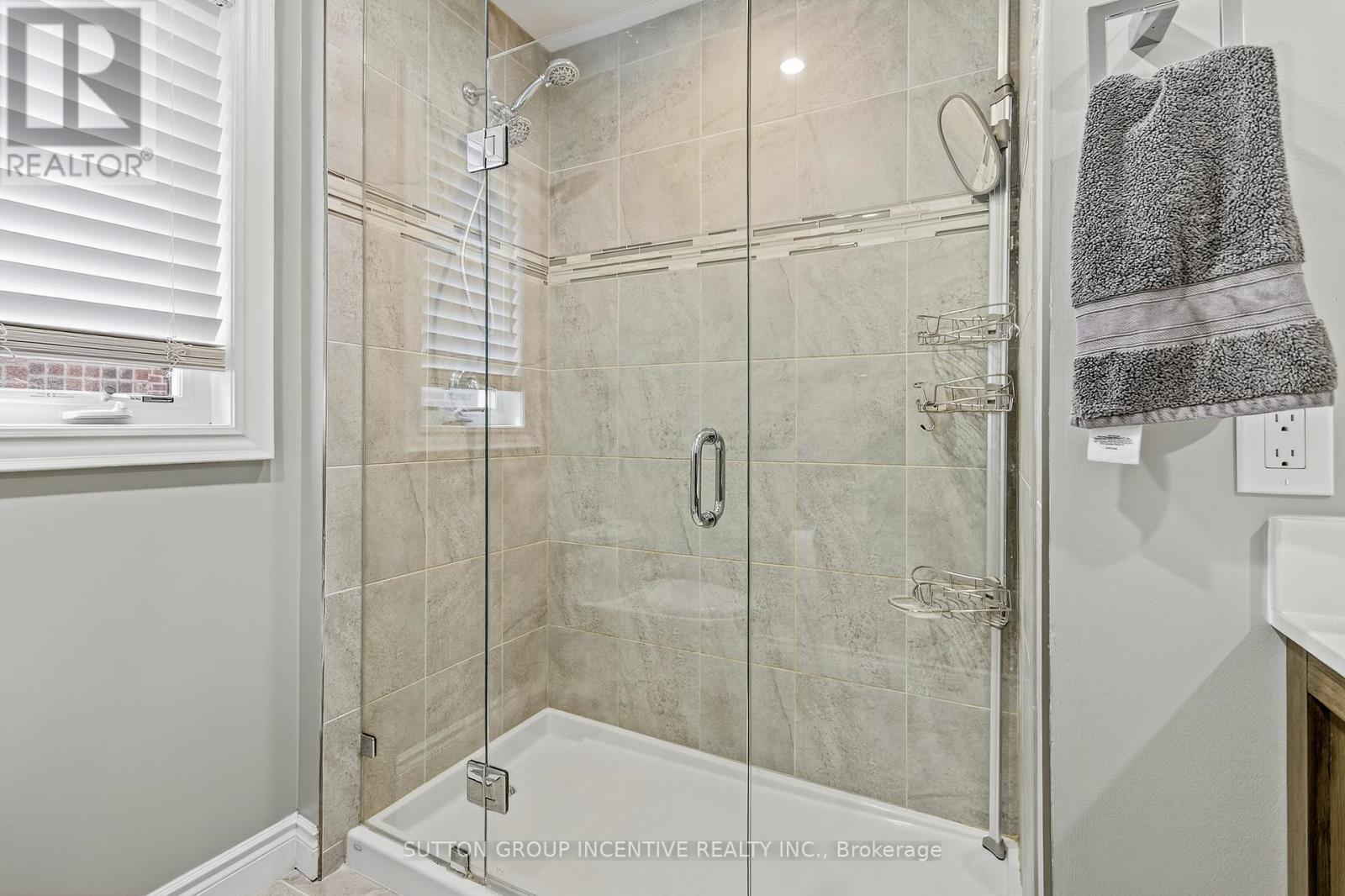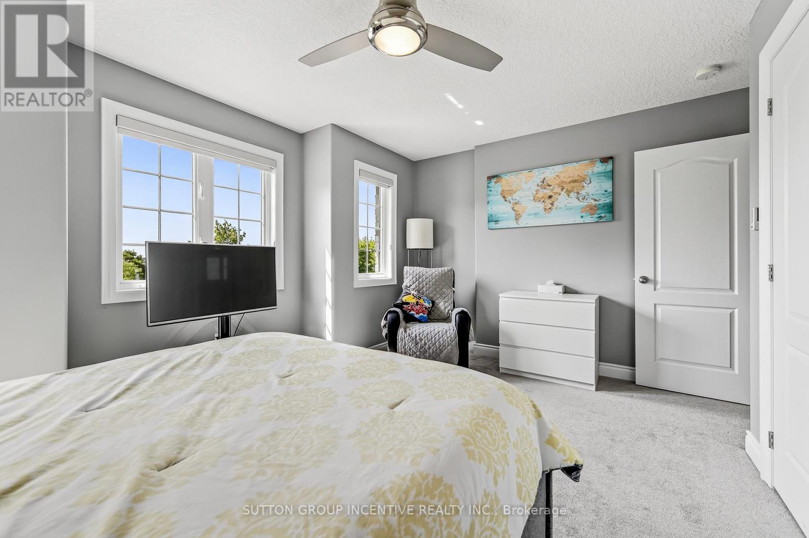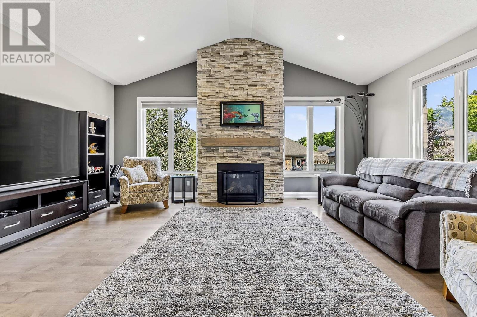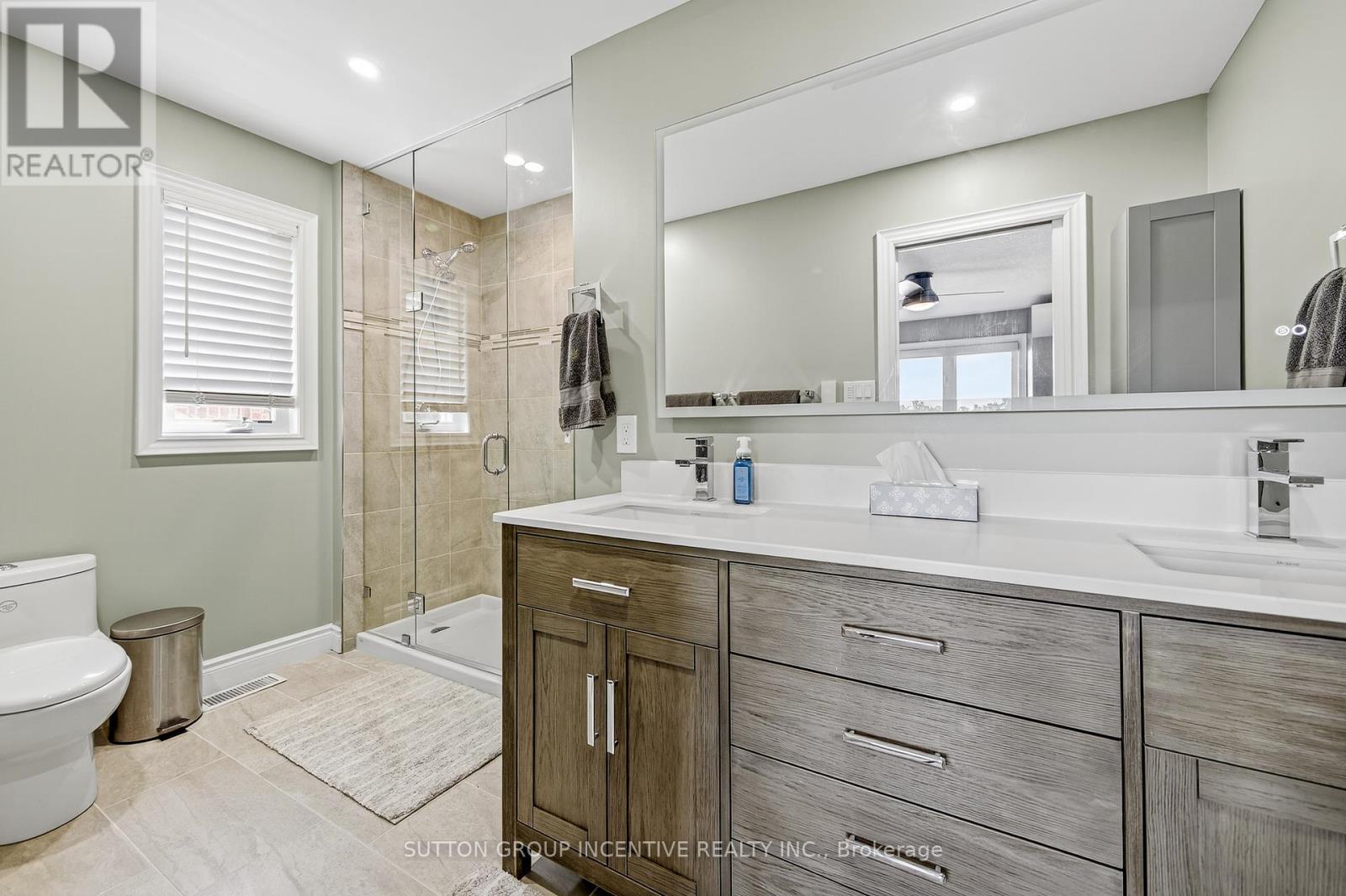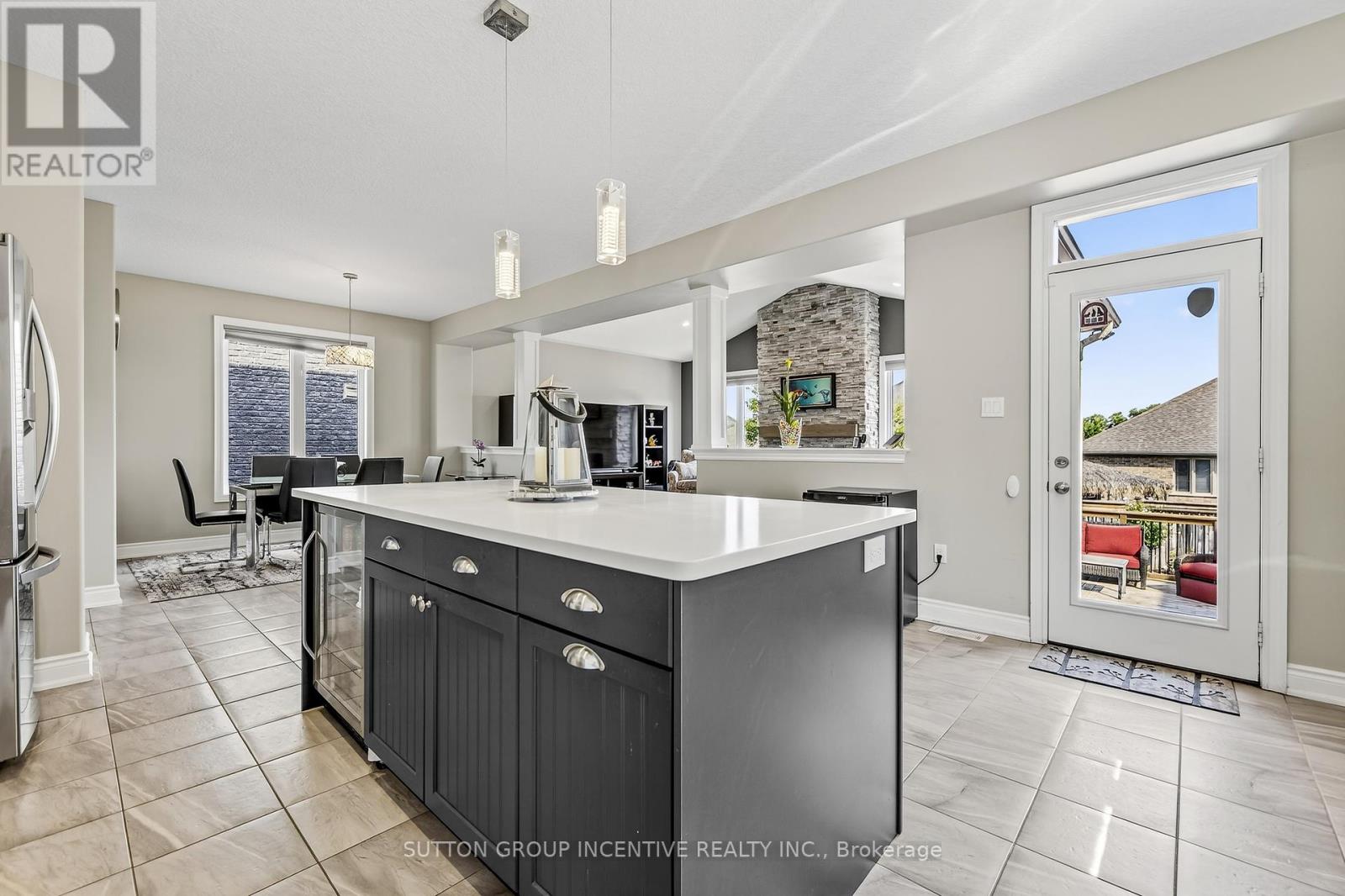 Stunning all-brick 3+1 bedroom executive home, built by the highly regarded Grandview Homes, and ideally located on a premium street in Barrie's prestigious Summerhill Estates community. Popular Derby 2 model, celebrated for its spacious and functional layout offering both style and comfort for modern family living. From the moment you step inside, you'll appreciate the thoughtful design and attention to detail. The main floor features 9-foot ceilings, upgraded oversized windows that flood the space with natural light, and elegant finishes with no carpet. The chefs kitchen is both stylish and practical, complete with a lrg island with stone countertops and built in beverage center, a gas stove and a tasteful backsplash. The open-concept great room boasts a soaring 17-foot ceiling, a floor-to-ceiling stone gas fireplace, and a bright, airy ambiance that's perfect for both everyday living and entertaining. Upstairs, the spacious primary suite offers a luxurious retreat with a beautifully appointed ensuite featuring in-floor heating, a walk-in glass shower, double sinks, and generous counter space. Two additional bedrooms on this level are perfect for children or guests, and the stylish main bathroom continues the home's high-end design aesthetic. The fully finished basement adds even more living space with high-end laminate flooring, large lookout windows, a rec room, an additional bedroom with a custom walk-in closet, and a modern 3-piece bathroom. Its an ideal setup for guests, in-laws, or a teen retreat. Step outside to enjoy the fully fenced backyard with gates on both sides for easy access, a custom-built deck that allows for various entertaining configurations, and a garden shed for additional storage. From the upper bedrooms, you can even enjoy views of Kempenfelt Bay. (id:51158)