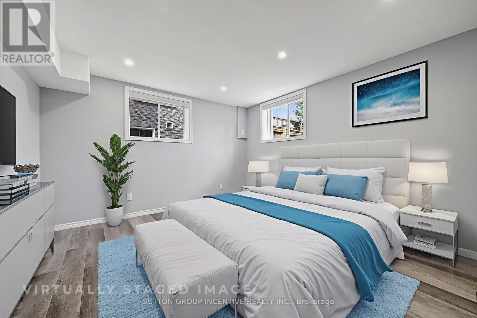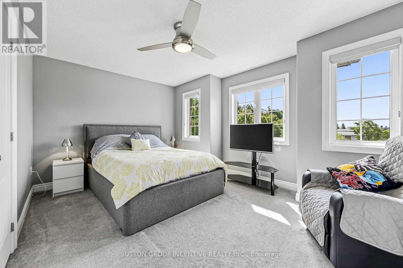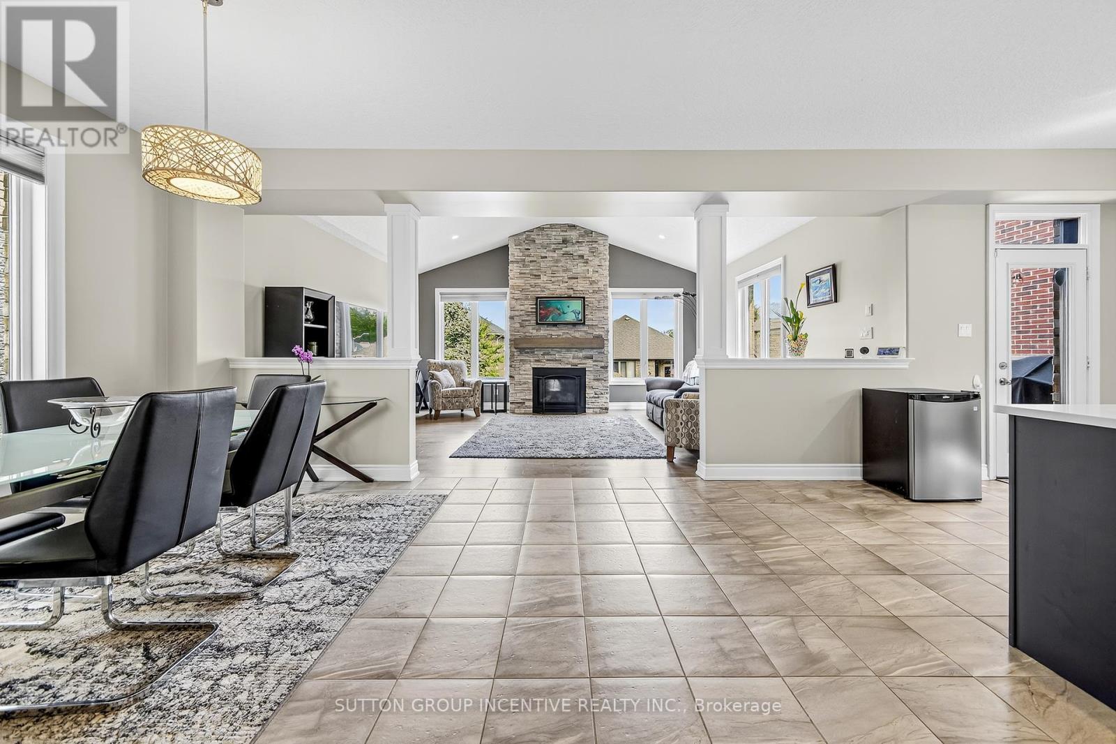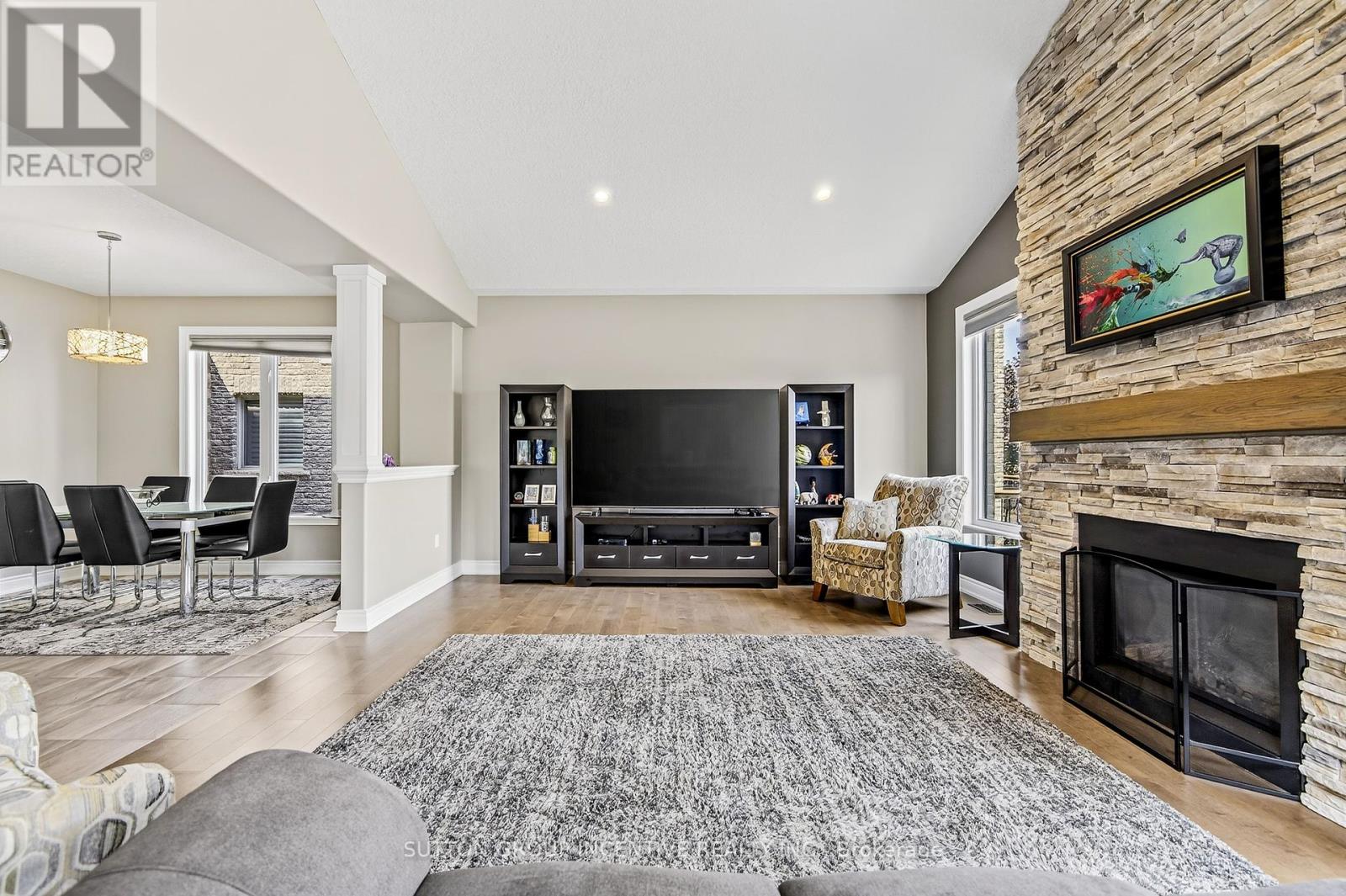 Stunning all-brick 3+1 bedroom executive home, built by the highly regarded Grandview Homes, and ideally located on a premium street in Barrie's prestigious Summerhill Estates community. Popular Derby 2 model, celebrated for its spacious and functional layout offering both style and comfort for modern family living. From the moment you step inside, you'll appreciate the thoughtful design and attention to detail. The main floor features 9-foot ceilings, upgraded oversized windows that flood the space with natural light, and elegant finishes with no carpet. The chefs kitchen is both stylish and practical, complete with a lrg island with stone countertops and built in beverage center, a gas stove and a tasteful backsplash. The open-concept great room boasts a soaring 17-foot ceiling, a floor-to-ceiling stone gas fireplace, and a bright, airy ambiance that's perfect for both everyday living and entertaining. Upstairs, the spacious primary suite offers a luxurious retreat with a beautifully appointed ensuite featuring in-floor heating, a walk-in glass shower, double sinks, and generous counter space. Two additional bedrooms on this level are perfect for children or guests, and the stylish main bathroom continues the home's high-end design aesthetic. The fully finished basement adds even more living space with high-end laminate flooring, large lookout windows, a rec room, an additional bedroom with a custom walk-in closet, and a modern 3-piece bathroom. Its an ideal setup for guests, in-laws, or a teen retreat. Step outside to enjoy the fully fenced backyard with gates on both sides for easy access, a custom-built deck that allows for various entertaining configurations, and a garden shed for additional storage. From the upper bedrooms, you can even enjoy views of Kempenfelt Bay. (id:51158)