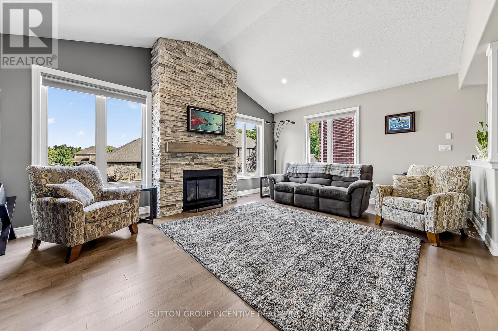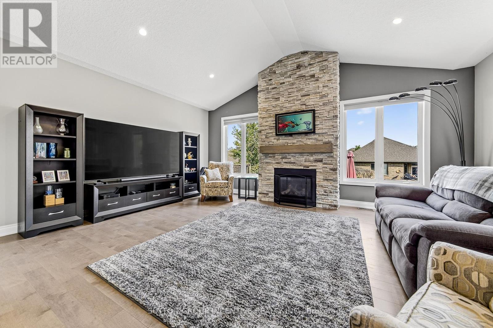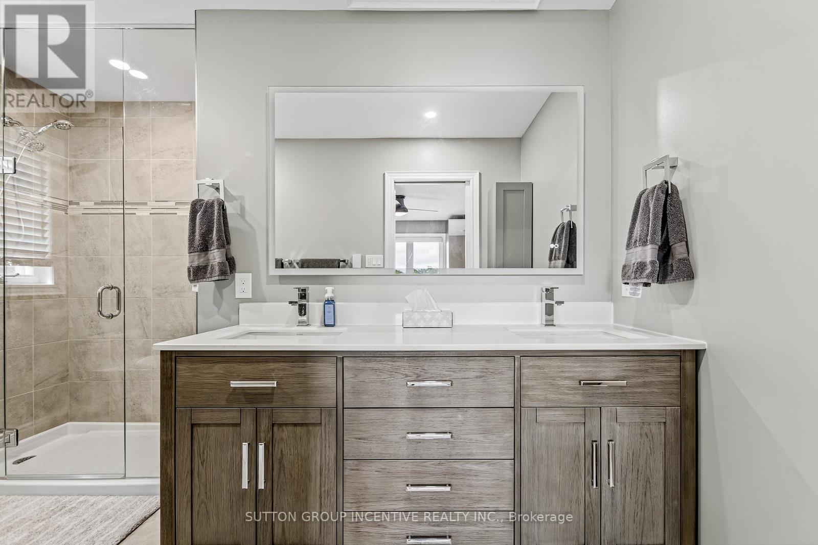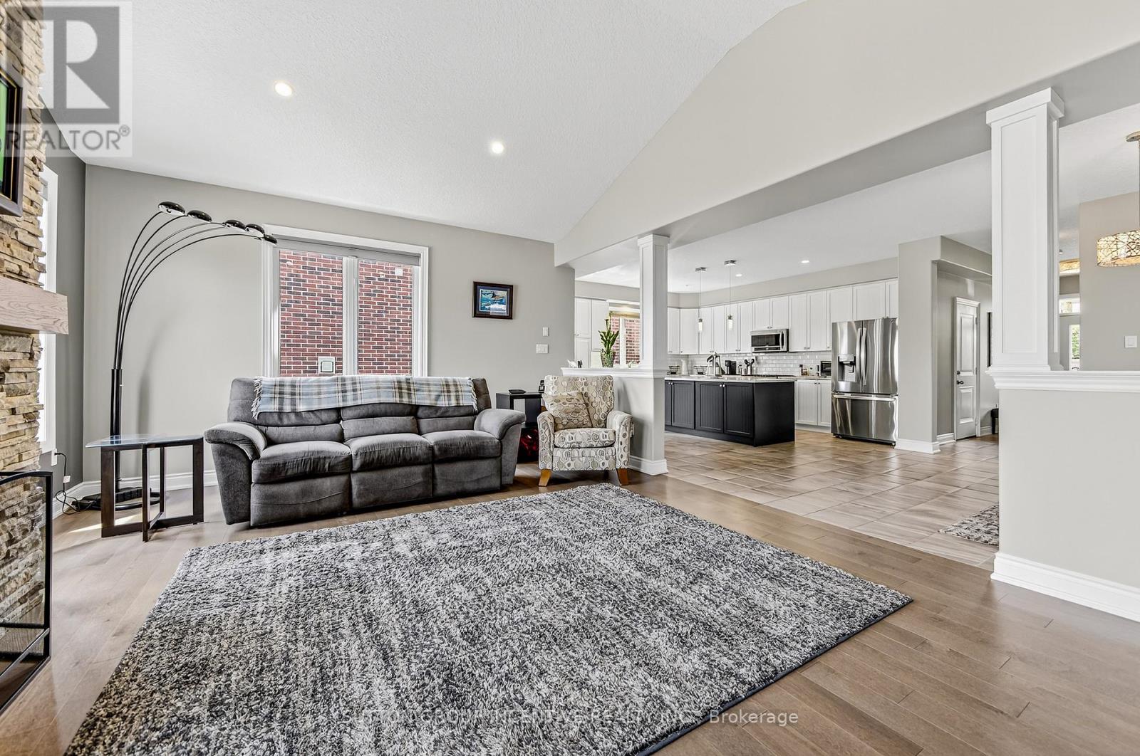 Stunning all-brick 3+1 bedroom executive home, built by the highly regarded Grandview Homes, and ideally located on a premium street in Barrie's prestigious Summerhill Estates community. Popular Derby 2 model, celebrated for its spacious and functional layout offering both style and comfort for modern family living. From the moment you step inside, you'll appreciate the thoughtful design and attention to detail. The main floor features 9-foot ceilings, upgraded oversized windows that flood the space with natural light, and elegant finishes with no carpet. The chefs kitchen is both stylish and practical, complete with a lrg island with stone countertops and built in beverage center, a gas stove and a tasteful backsplash. The open-concept great room boasts a soaring 17-foot ceiling, a floor-to-ceiling stone gas fireplace, and a bright, airy ambiance that's perfect for both everyday living and entertaining. Upstairs, the spacious primary suite offers a luxurious retreat with a beautifully appointed ensuite featuring in-floor heating, a walk-in glass shower, double sinks, and generous counter space. Two additional bedrooms on this level are perfect for children or guests, and the stylish main bathroom continues the home's high-end design aesthetic. The fully finished basement adds even more living space with high-end laminate flooring, large lookout windows, a rec room, an additional bedroom with a custom walk-in closet, and a modern 3-piece bathroom. Its an ideal setup for guests, in-laws, or a teen retreat. Step outside to enjoy the fully fenced backyard with gates on both sides for easy access, a custom-built deck that allows for various entertaining configurations, and a garden shed for additional storage. From the upper bedrooms, you can even enjoy views of Kempenfelt Bay. (id:51158)