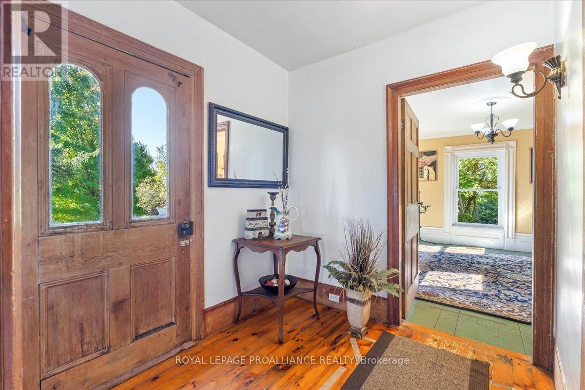 Step back in time with this classic two-story farmhouse, built in 1834, set on a private 1.6 acre lot surrounded by rolling countryside. The main floor features a large, bright living area, country kitchen and a spacious sun-room spanning the whole side of the home with stunning views of the Moira Hills. The home features 3 bedrooms upstairs and an additional bedroom on the main level and 1 bath, ideal for a growing family. The generously sized primary bedroom includes a large walk-in closet. Character abounds with original trim throughout, while large windows frame picturesque country views from every room and grand staircase with large landing at the top for added living space. Two sizable outbuildings add versatility-perfect for storage, hobbies, or a workshop and a pool to cool down on the hot summer days. The grounds are just as charming, with fruit trees scattered around the property and a raised garden, perfect for those who enjoy outdoor living and homegrown harvests. This property has endless potential to make it your own while preserving its historic charm. Just 20 minutes from Belleville, it offers the best of country living with city convenience close at hand. Bell Fibe is available for those needing to work from home. This classic home is perfect for rural living. (id:51158)