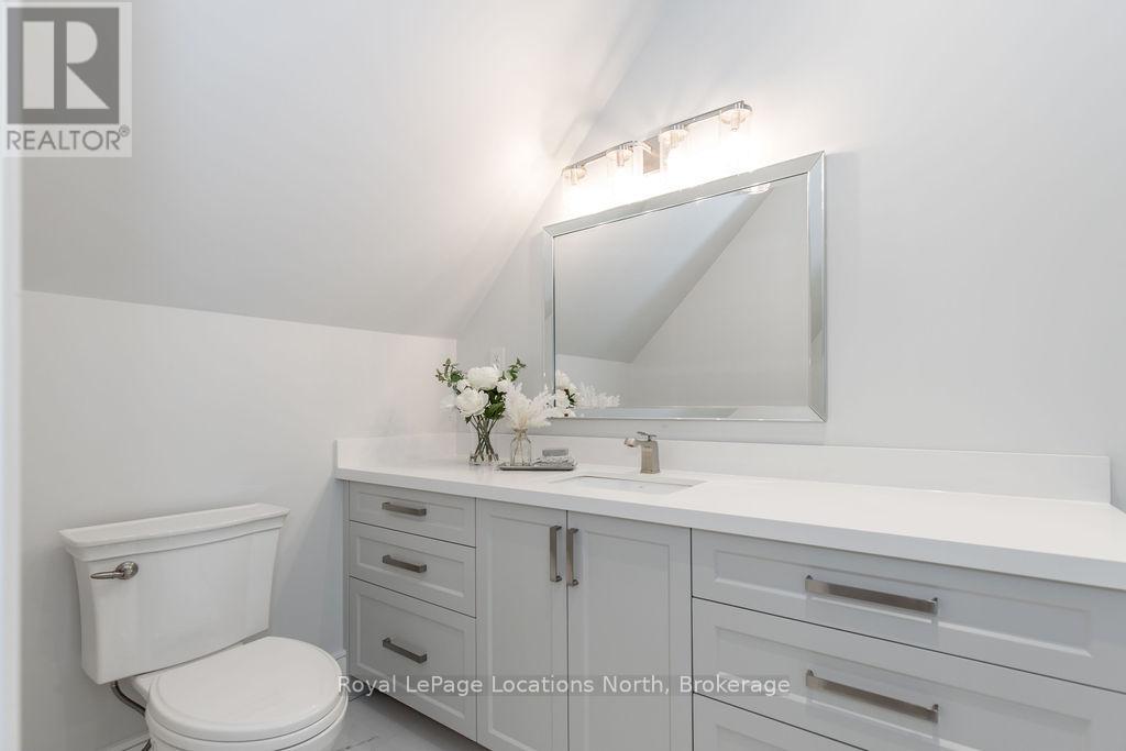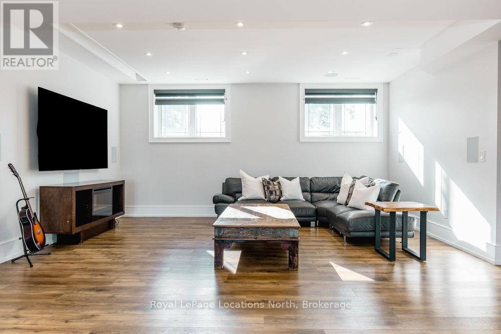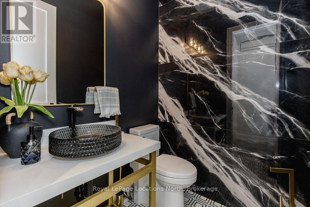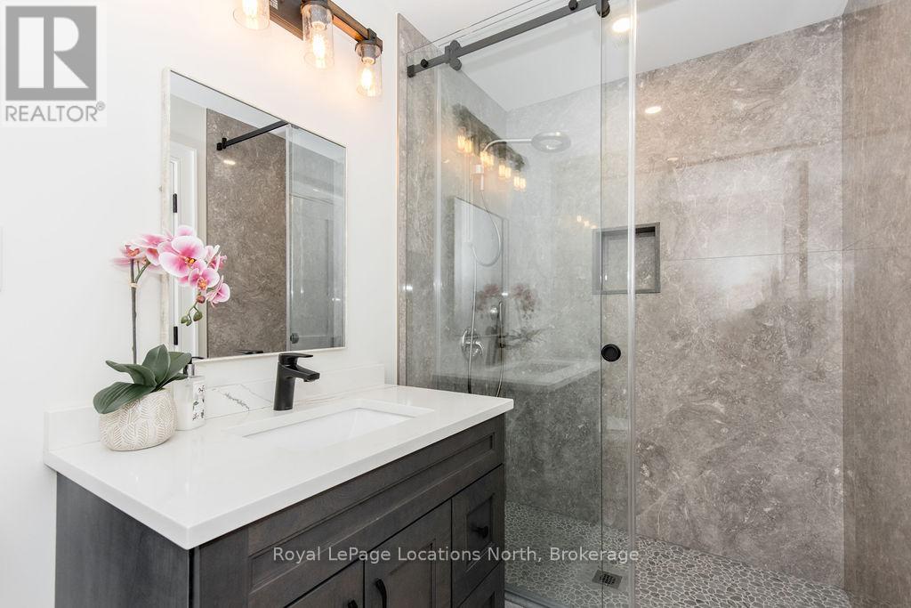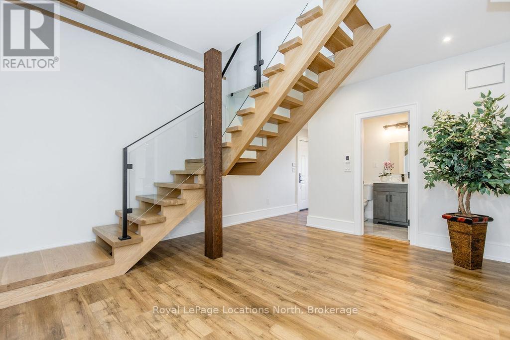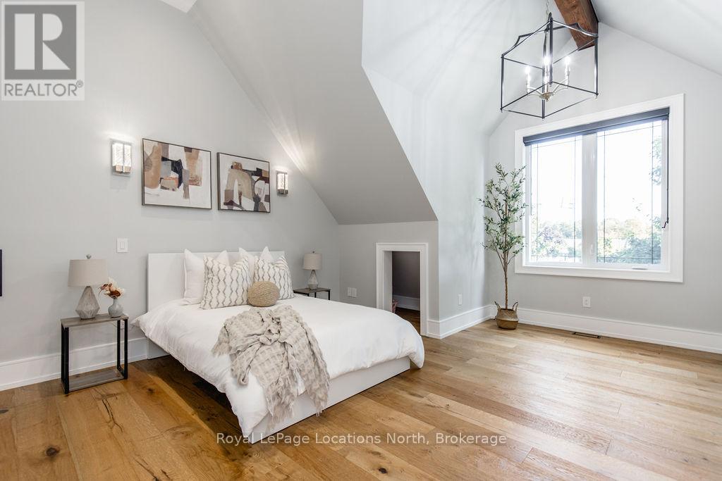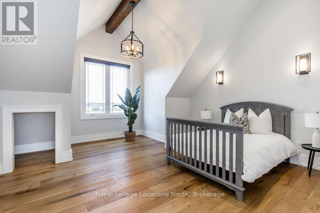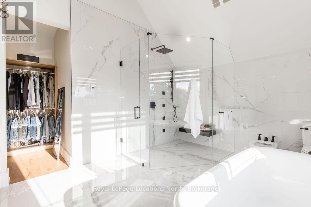 MLS# N12070419 – FOR SALE : 22 East John Street Cookstown Innisfil – 5 Beds, 5 Baths Detached House ** BACKS ONTO PROTECTED LAND. This stunning luxury home is situated on a quiet dead-end st, w/views of the countryside, + steps from park/rink/courts/library. This thoughtfully designed home offers an elegant, vibe, w/high end craftsmanship, featuring a stone + stucco exterior w/exceptional curb appeal. Upon entering, you are greeted by a grand entrance w/ heated porcelain tile floors, a custom wood staircase w/glass railing, + vaulted ceilings that create an inviting ambiance. The main level showcases engineered white oak flooring + exposed beam accents. The spacious living room offers custom-built cabinetry, a tiled feature wall with a built-in electric f/pl, + space for a TV. Adjacent is the elegant dining room, equipped w/ built-in cabinetry, dry bar, quartz counters, backsplash, +under-mount lighting perfect for entertaining. The family room flows directly from the dining room, offering a 2nd tiled wall w/ built-in electric f/pl, lg windows + seamless transition. The gourmet kitchen is classy, featuring an oversized island, quartz countertops, high-end s/s appliances, incl a gas range w/ a custom range hood + walk-in pantry. A private office w/views + a mud/laundry room w/heated tile floors, inside entry to garage w/ epoxy flrs + w/up from bsmt. 25 ft ceilings impress, flowing into 2nd flr w/white oak flooring that continues throughout, leading to the luxurious primary suite. This retreat incl access to private balcony, a walk-through clst w/ built-in organizers, + 6PC ensuite w/ dbl sinks, soaker tub, + large glass shower. Two additional bedrms each have their own 3PC bathrms w/ tiled showers + heated floors. The bsmt offers versatility, featuring expansive rec room + walk-out French doors leading to the patio, providing in-law potential. This bright space offers luxury plank flr, full kitchen, 2 bedrms, + a 3PC bathrm. Outside, enjoy an add. detached,heated ** 22 East John Street Cookstown Innisfil **
