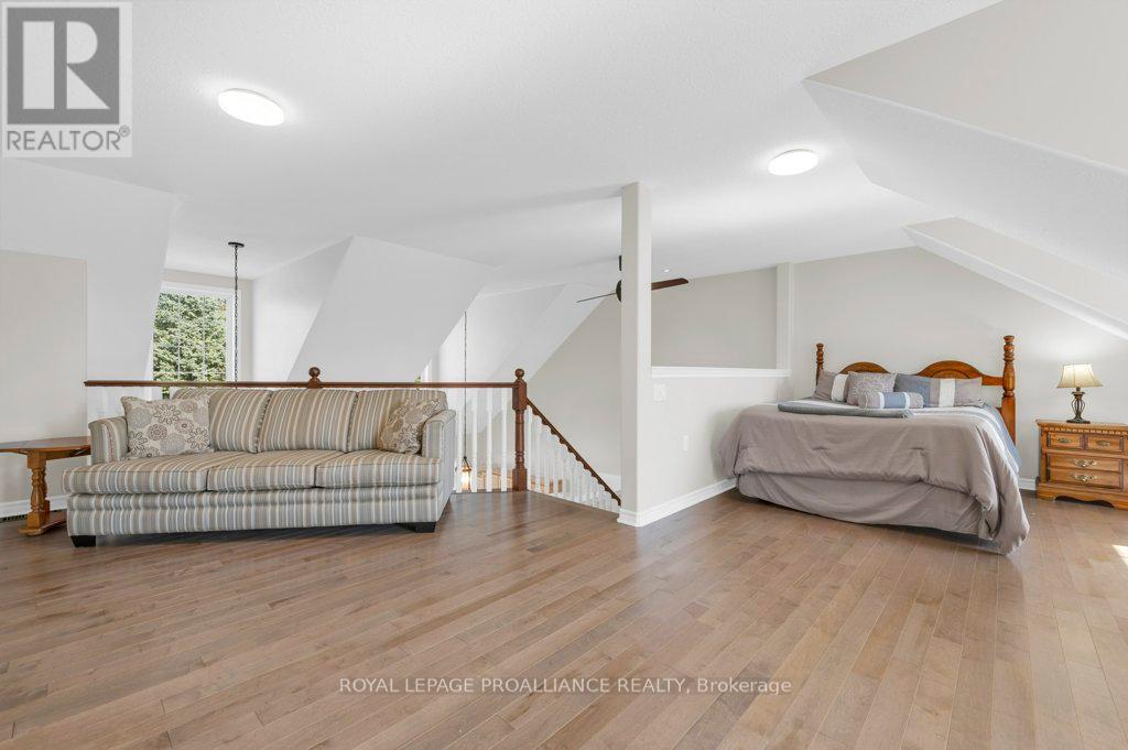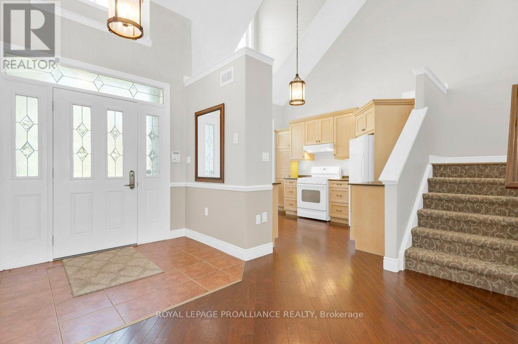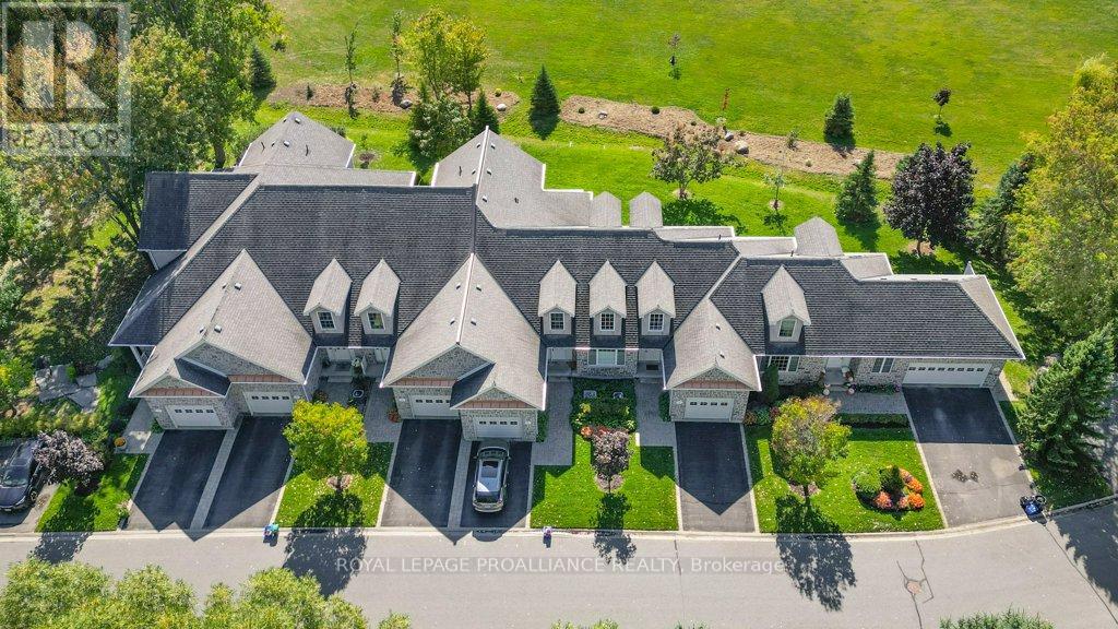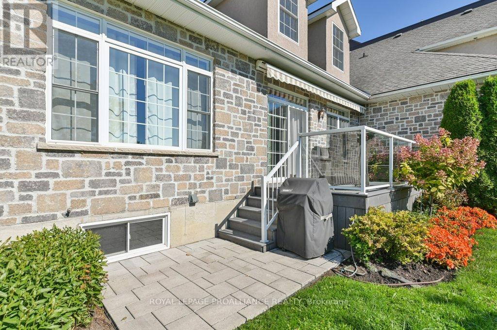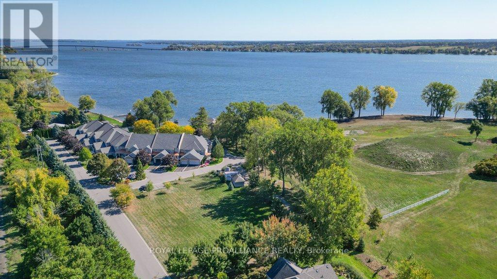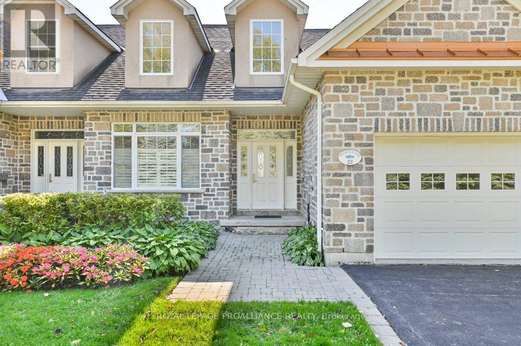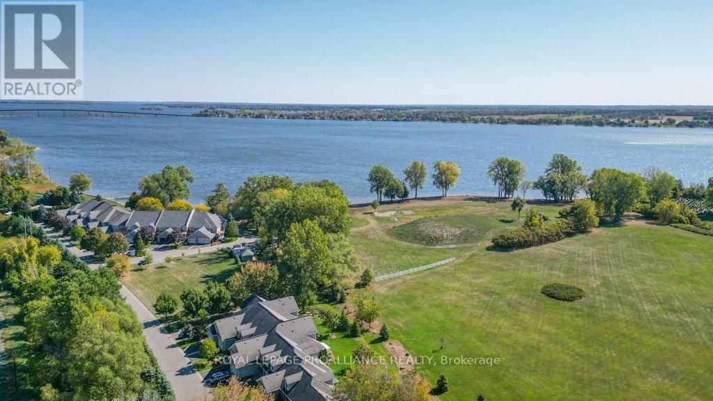 Welcome to 22 Gracefield Lane in the highly sought-after St. James by the Bay, Bellevilles premier adult lifestyle community nestled along the Bay of Quinte. This beautiful bungaloft townhome features an elegant stone exterior and an attached single-car garage with inside entry and paved driveway. The main floor primary suite offers double closets and a 4-piece ensuite with a low-entry shower and bidet. High-end hardwood floors flow through the main living areas, and the open-concept layout is enhanced by soaring two-storey ceilings in the foyer and kitchen. The upstairs loft provides ideal guest accommodations with a sitting area, bedroom, walk-in closet, and 4-piece bath. The basement is ready to finishalready wired, drywalled, and includes a rough-in bath and cold room. Step outside to a composite deck with glass railings and awning overlooking lush green space. Enjoy beautifully landscaped grounds, visitor parking, common areas, and a private pebble beach on the Bay of Quinte. Worry-free living means no more grass cutting or snow removaleverything from lawn care to walkway shoveling and seasonal upkeep is included. Extras such as central vacuum, outdoor gas line for BBQ, Bosch dishwasher, garage door opener with remotes, ceiling fans, and window coverings are included. This exceptional home offers comfort and convenience just minutes to Prince Edward Countys wineries and dining, and only 15 minutes to Highway 401. Immediate possession available. (id:51158)