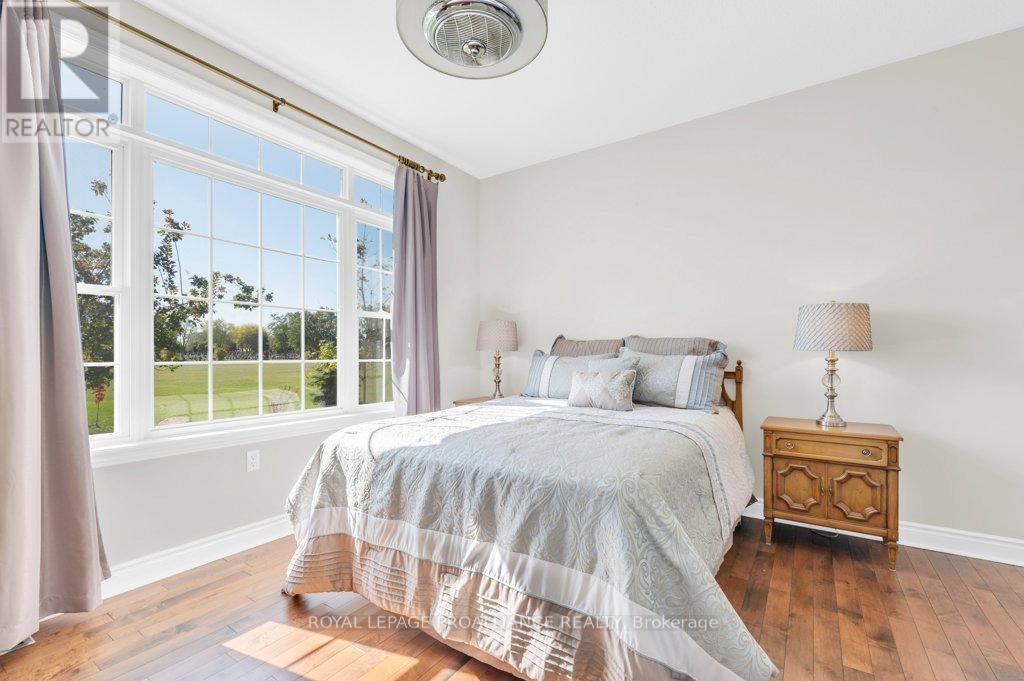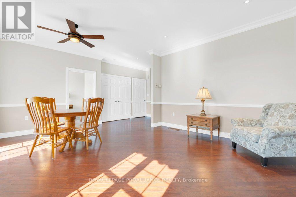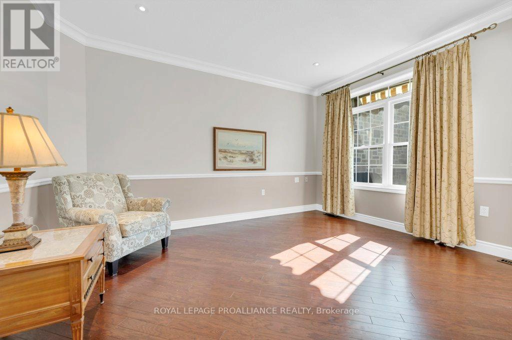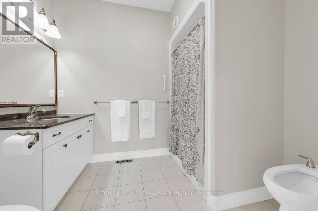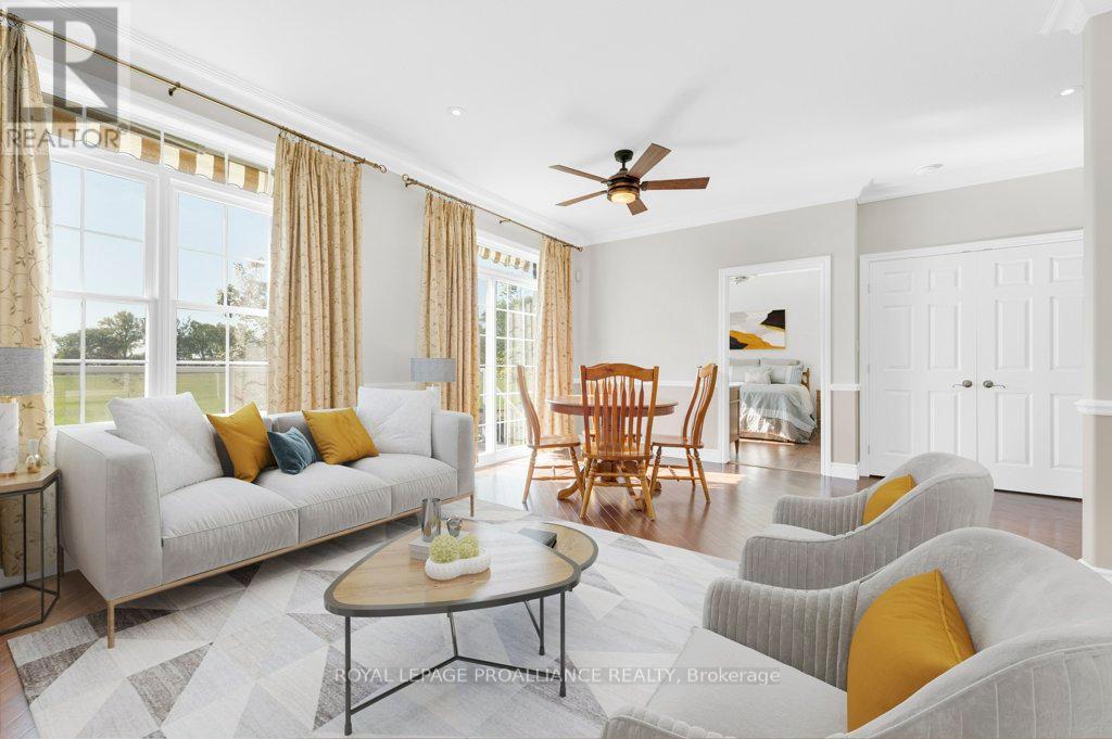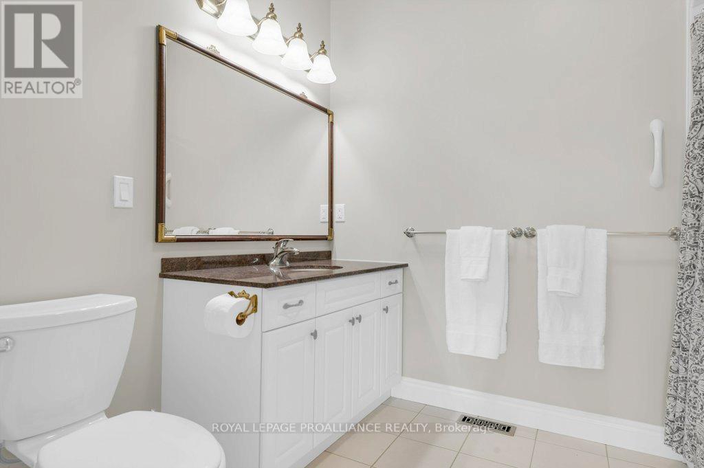 Welcome to 22 Gracefield Lane in the highly sought-after St. James by the Bay, Bellevilles premier adult lifestyle community nestled along the Bay of Quinte. This beautiful bungaloft townhome features an elegant stone exterior and an attached single-car garage with inside entry and paved driveway. The main floor primary suite offers double closets and a 4-piece ensuite with a low-entry shower and bidet. High-end hardwood floors flow through the main living areas, and the open-concept layout is enhanced by soaring two-storey ceilings in the foyer and kitchen. The upstairs loft provides ideal guest accommodations with a sitting area, bedroom, walk-in closet, and 4-piece bath. The basement is ready to finishalready wired, drywalled, and includes a rough-in bath and cold room. Step outside to a composite deck with glass railings and awning overlooking lush green space. Enjoy beautifully landscaped grounds, visitor parking, common areas, and a private pebble beach on the Bay of Quinte. Worry-free living means no more grass cutting or snow removaleverything from lawn care to walkway shoveling and seasonal upkeep is included. Extras such as central vacuum, outdoor gas line for BBQ, Bosch dishwasher, garage door opener with remotes, ceiling fans, and window coverings are included. This exceptional home offers comfort and convenience just minutes to Prince Edward Countys wineries and dining, and only 15 minutes to Highway 401. Immediate possession available. (id:51158)