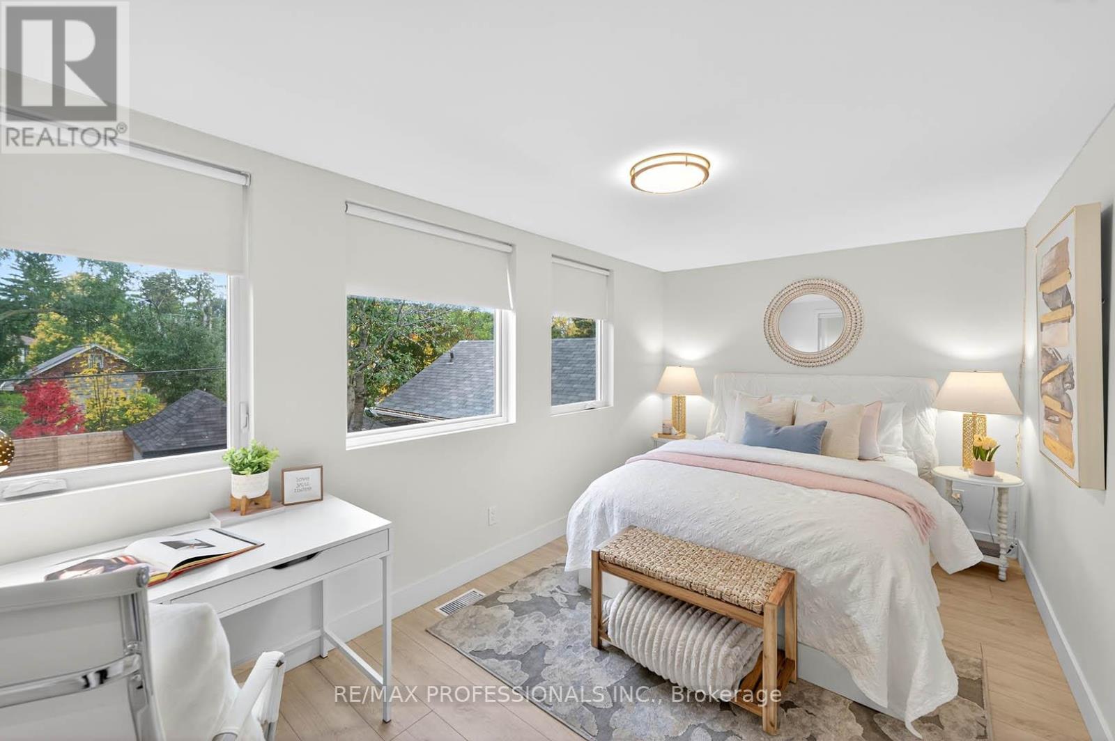 Stunning 3-Story California-Inspired Home, Completely Rebuilt in 2023! This one-of-a-kind residence in New Toronto's Lake-Side community offers 3 spacious bedrooms, 4 beautifully designed bathrooms, and a perfect blend of modern luxury and warm charm. The open-concept main floor features a sun-filled living space and a chef's dream kitchen with a large family island, premium stainless-steel appliances, integrated built-in dishwasher, countertop stove with commercial-grade hood vent, and built-in wall oven & microwave. Elegant undermount and glass cabinet lighting, along with ample storage, make this kitchen an entertainer's delight! Step outside to a large back deck and garden with a built-in Hydropool Swim Spa, creating a private backyard oasis ideal for relaxation or gatherings. The 2nd level boasts two large, light-filled bedrooms with generous closets, a modern 4-piece bath, and convenient laundry. Retreat to the entire third level, exclusively designed as a private Primary Suite featuring a sun-drenched bedroom with an electric fireplace, balcony overlooking the treed neighborhood, and a luxurious 5-piece spa ensuite with a soaker tub, crystal chandelier, double sinks with light-up anti-fog mirrors, and a separate shower with elegant glass Tiffany tile. Enjoy instant privacy with a custom remote blind! Glass & steel railings throughout add a sleek, contemporary touch. The finished basement offers a separate entrance, kitchen area with rough-in for a stovetop, spacious recreation room, 3-piece bath, fourth bedroom, and rough-in for additional laundry-perfect for guests or in-law/rental suite potential! Complete with a garage for storage, steps to beautiful parks, trails, schools, shopping, transit (TTC & GO), and so much more, this fully rebuilt home is truly turnkey and ready for you to move right in and start living your life by the lake! (id:51158)