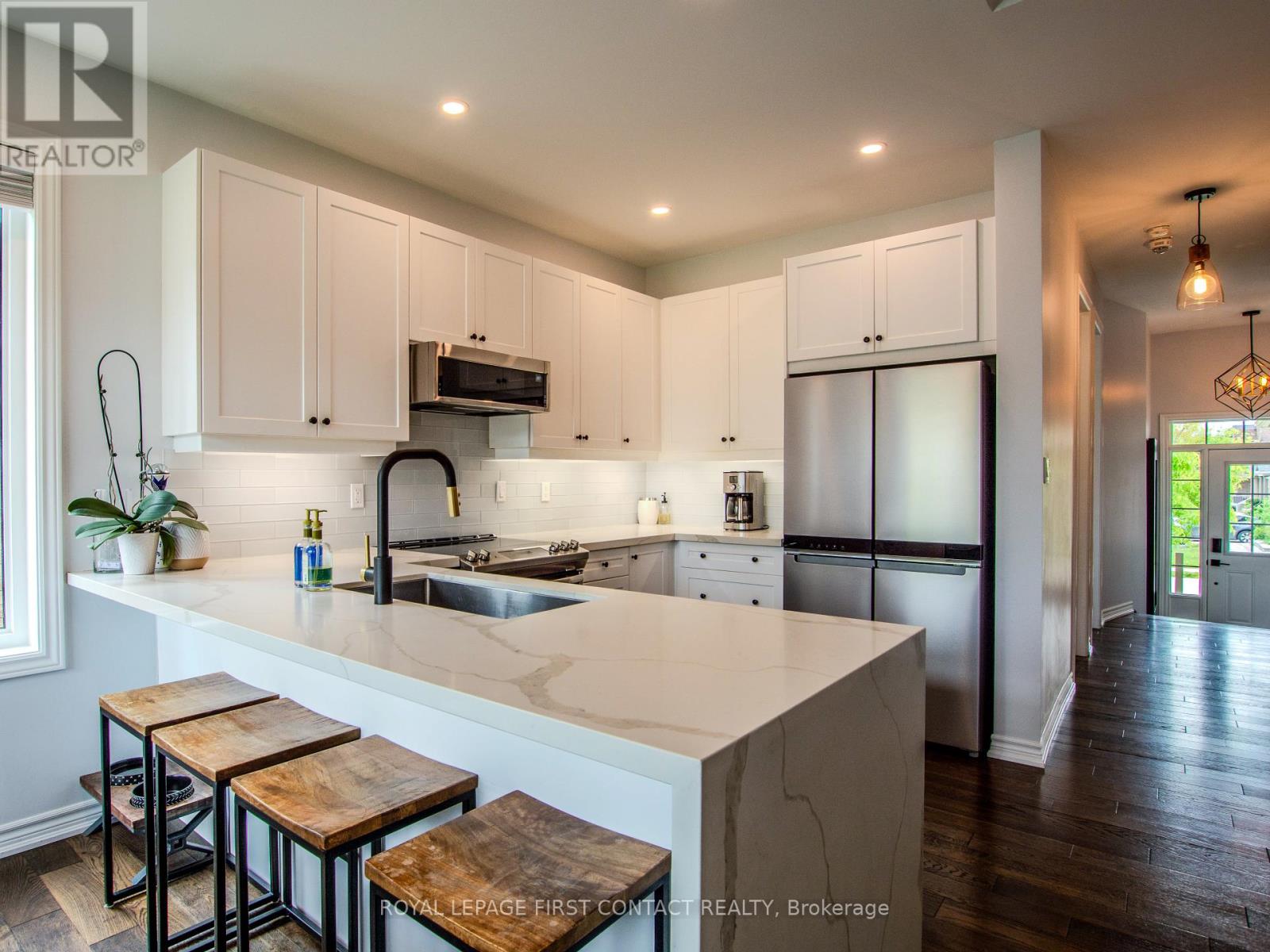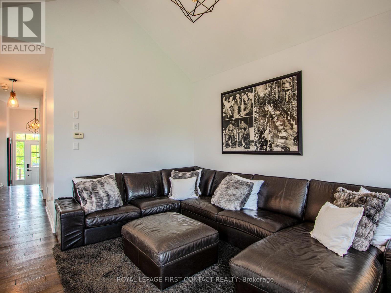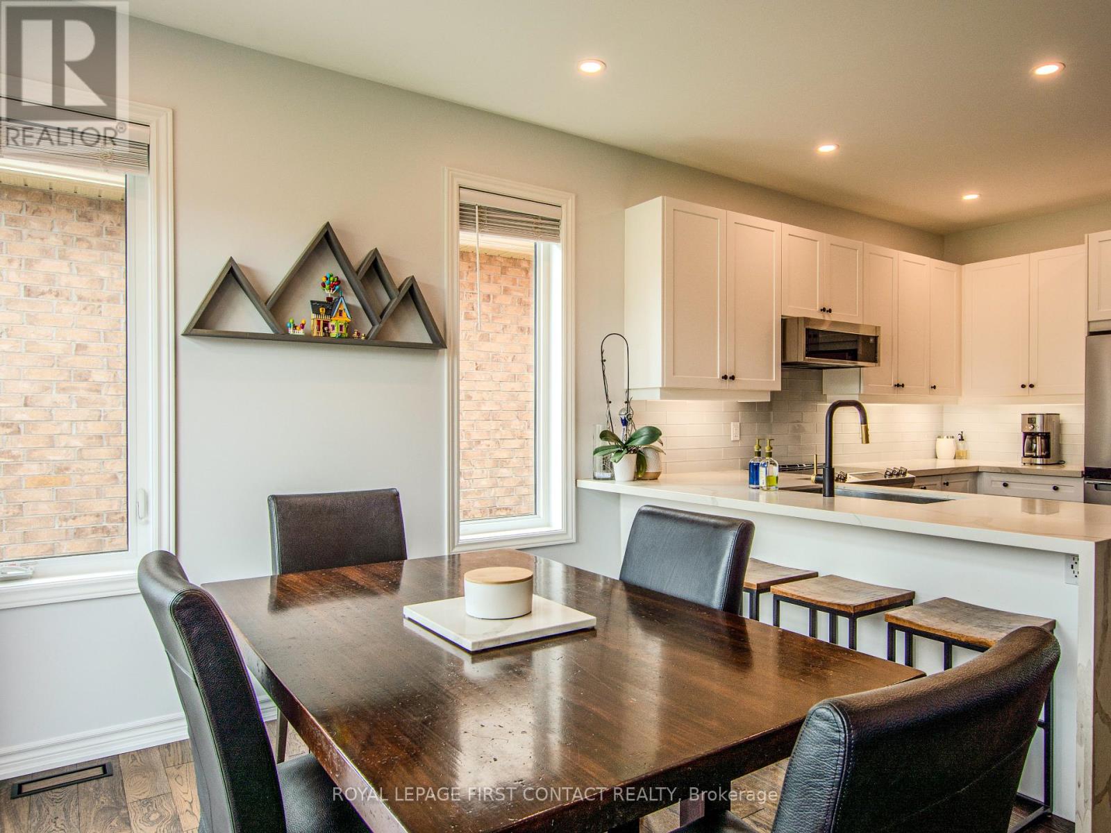 Welcome to this immaculate brick and stone bungalow offering comfort, space, and style in a truly family-oriented setting. With 3 bedrooms and 2 full baths, including a private primary suite complete with spa-like ensuite, this home delivers both everyday ease and a touch of luxury. The heart of the home is the open-concept kitchen, dining, and great room perfect for entertaining or cozy family time. Soaring vaulted ceilings, abundant natural light, and a warm gas fireplace create a welcoming atmosphere, while the kitchen impresses with crisp white cabinetry, quartz countertops with waterfall edge, and modern finishes. Enjoy the convenience of main floor laundry, a spacious double garage, and a fully fenced backyard that stretches over 147 feet deep, ideal for outdoor play or future landscaping dreams. Across the street, you'll find a park, playground, and serene forested space, adding to the peaceful, community-focused vibe. The partially finished basement features a large rec room and offers potential for an additional bedroom/bathroom suite and generous storage space. This is a home thats been lovingly maintained and thoughtfully designed for modern family living... move in and make it yours! (id:51158)