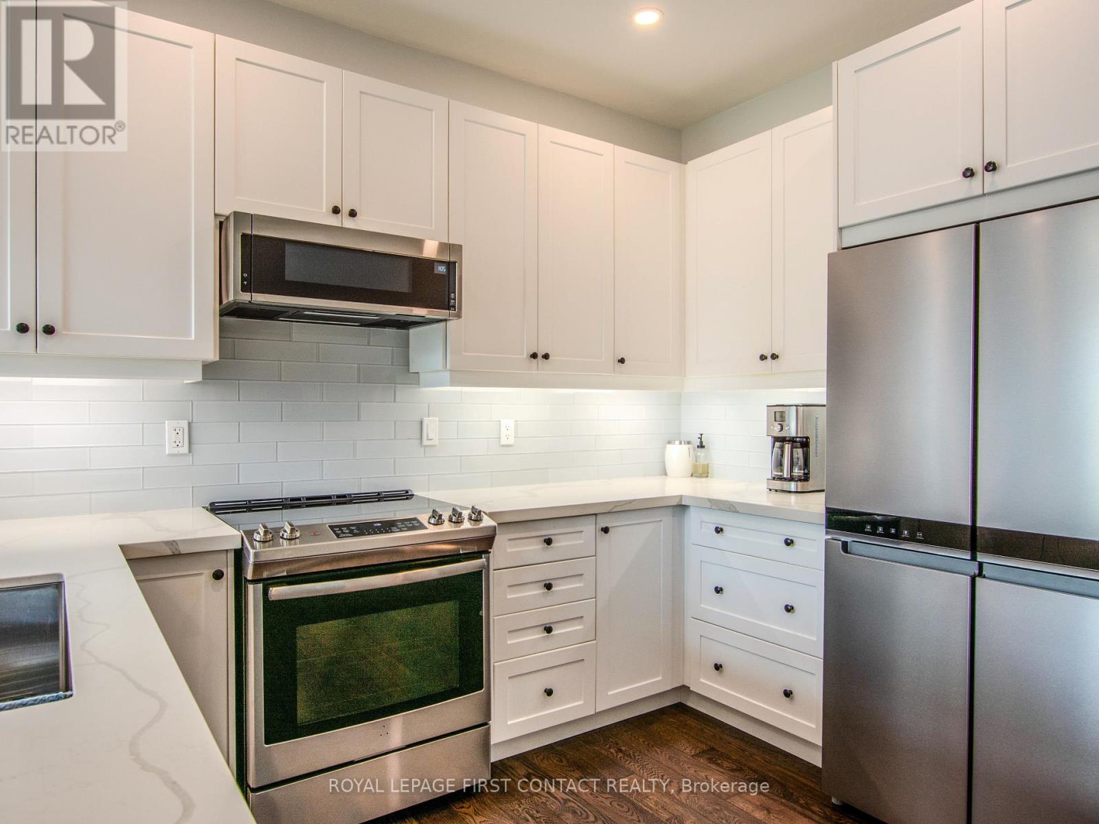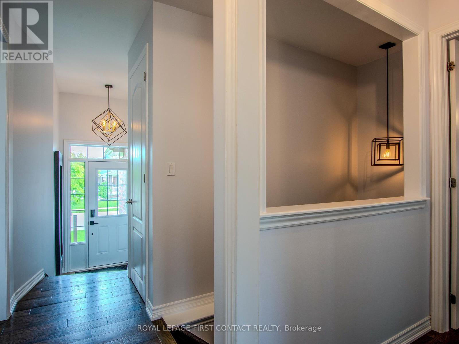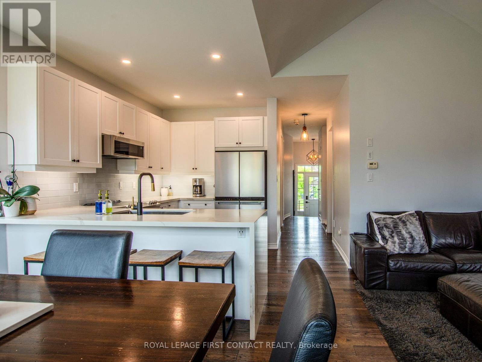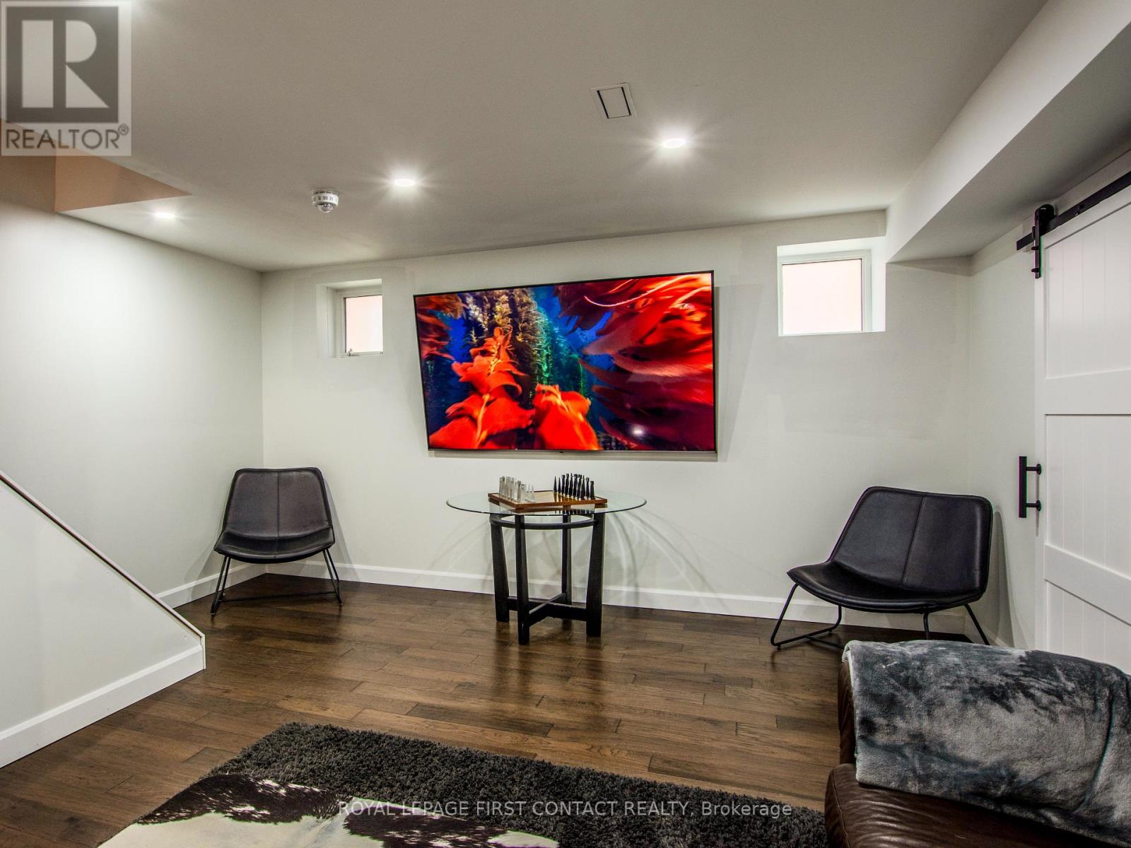 Welcome to this immaculate brick and stone bungalow offering comfort, space, and style in a truly family-oriented setting. With 3 bedrooms and 2 full baths, including a private primary suite complete with spa-like ensuite, this home delivers both everyday ease and a touch of luxury. The heart of the home is the open-concept kitchen, dining, and great room perfect for entertaining or cozy family time. Soaring vaulted ceilings, abundant natural light, and a warm gas fireplace create a welcoming atmosphere, while the kitchen impresses with crisp white cabinetry, quartz countertops with waterfall edge, and modern finishes. Enjoy the convenience of main floor laundry, a spacious double garage, and a fully fenced backyard that stretches over 147 feet deep, ideal for outdoor play or future landscaping dreams. Across the street, you'll find a park, playground, and serene forested space, adding to the peaceful, community-focused vibe. The partially finished basement features a large rec room and offers potential for an additional bedroom/bathroom suite and generous storage space. This is a home thats been lovingly maintained and thoughtfully designed for modern family living... move in and make it yours! (id:51158)
