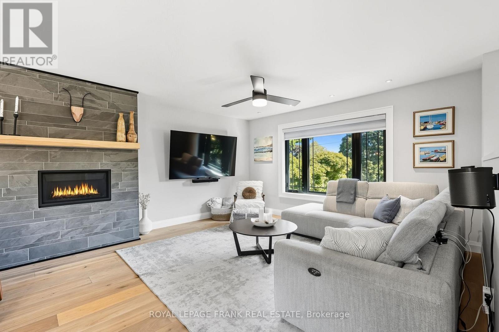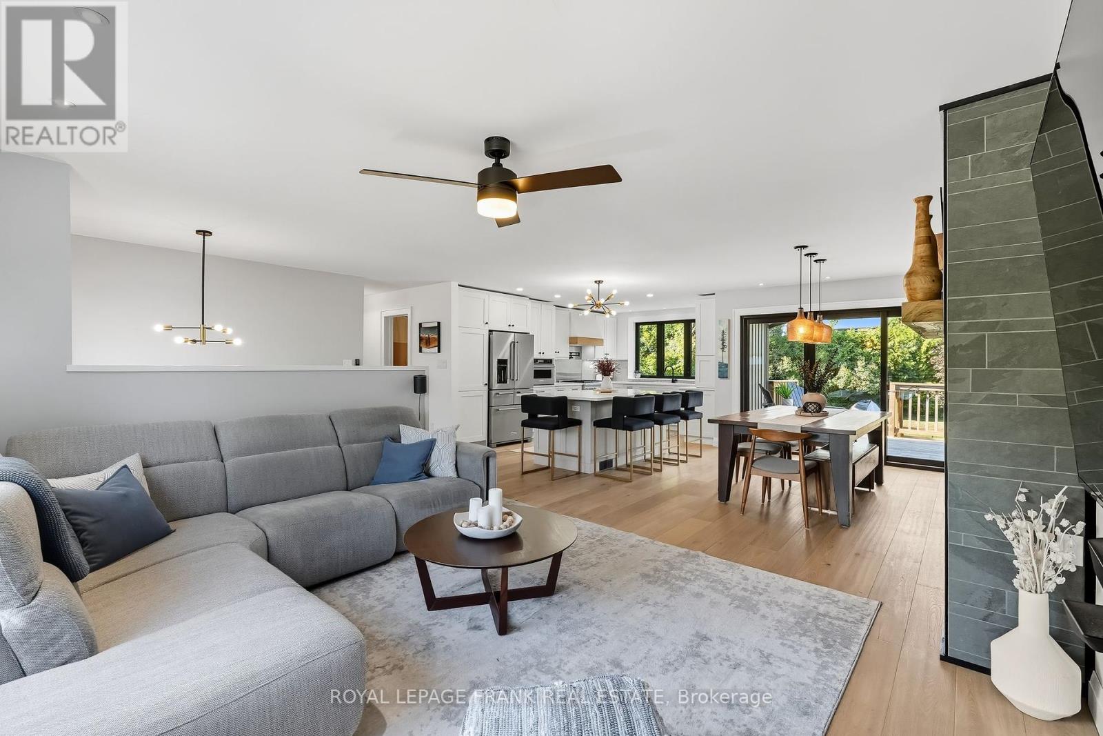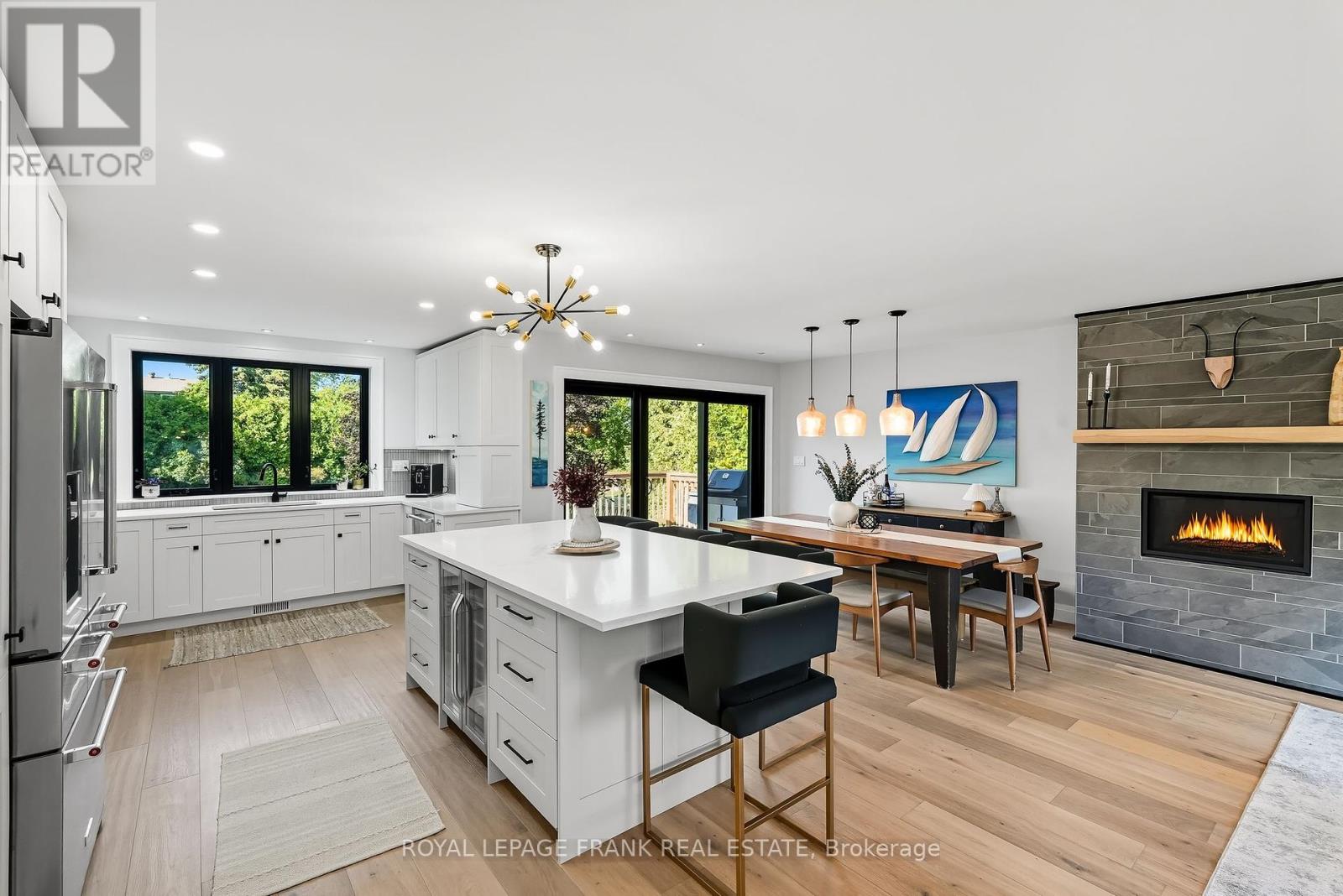 Nestled on a generously-sized, mature lot in the highly sought neighbourhood of Glen Acres, this beautifully renovated, 3 + 2 bedroom, raised bungalow offers a spacious layout, top-of-the-line finishes, and thoughtful design. As you step through the front door, you are immediately greeted by a light-filled, open-concept living area that seamlessly blends the kitchen, dining, and living rooms into one welcoming space. Sleek glass railings provide an elegant touch to the stairway and the brand-new kitchen, features sleek, contemporary design elements and functional style. A large central island serves as both a statement piece and a hub for family gatherings and casual meals. The kitchen boasts high-end built-in appliances, offering both functionality and elegance. The open floor plan allows the kitchen to flow effortlessly into the dining and living areas, where you'll find a built-in fireplace and large picture window. This home features three spacious bedrooms and 2 fully renovated bathrooms w/heated flooring on the main floor while the lower level offers additional space for your family to spread out and enjoy. Here you'll find a cozy rec room, 4th bedroom, full bathroom, gym/flex place, and large laundry room/mudroom with convenient access to the garage. Sitting on a large, mature lot, the home offers plenty of outdoor space to relax, entertain, or simply enjoy the privacy this property offers. Surrounded by lush greenery, mature trees, and a sense of tranquility, its the perfect balance of privacy and nature. Within close proximity to schools, parks, community centres, shopping, dining, nature trails and all the amenities Uxbridge has to offer. Small town charm with all the conveniences of modern living. *House has been updated from top to bottom all windows & doors, hardwood & vinyl throughout, brand new kitchen, new appliances, all bathrooms renovated w/heated flooring. 2 fireplaces, stairs & railings, light fixtures, deck, blown in attic insulation. (id:51158)