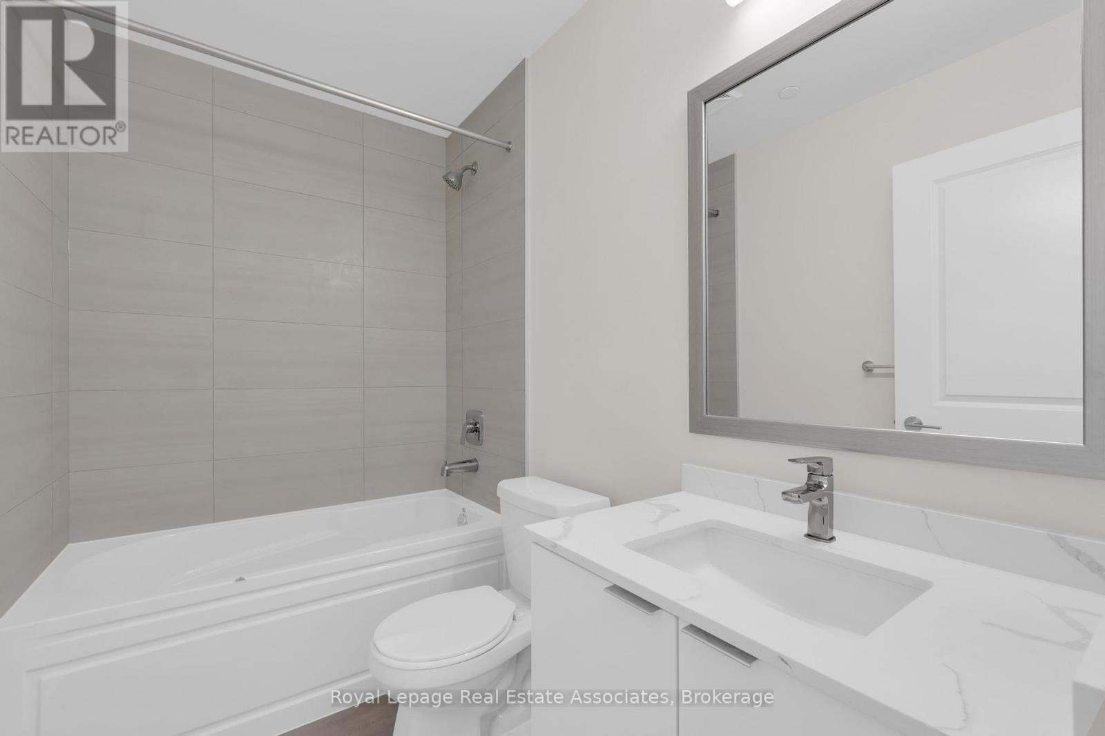 Welcome to this thoughtfully designed 1+den suite at 15 Watergarden Drive, offering 615 sq. ft. of modern living space. The open-concept layout flows seamlessly from the kitchen to the living and dining areas, complemented by large windows that fill the home with natural light.The kitchen features sleek wood-toned cabinetry, quartz countertops, a built-in breakfast bar, and stainless steel appliances, creating both function and style. A versatile den provides the perfect option for a home office, study, or guest space. The bright bedroom includes a generous closet, while the spa-inspired 4-piece bathroom showcases modern tiling, a deep soaker tub, and a contemporary vanity. In-suite laundry adds convenience. Step outside to your private balcony, offering an extension of your living space and room to unwind. Residents have access to a full suite of amenities, including a 24-hour concierge, fitness centre, indoor pool, party room, guest suites, and rooftop terrace. Ideally located near shopping, dining, parks, and major commuter routes, this home combines comfort with convenience. (id:51158)
