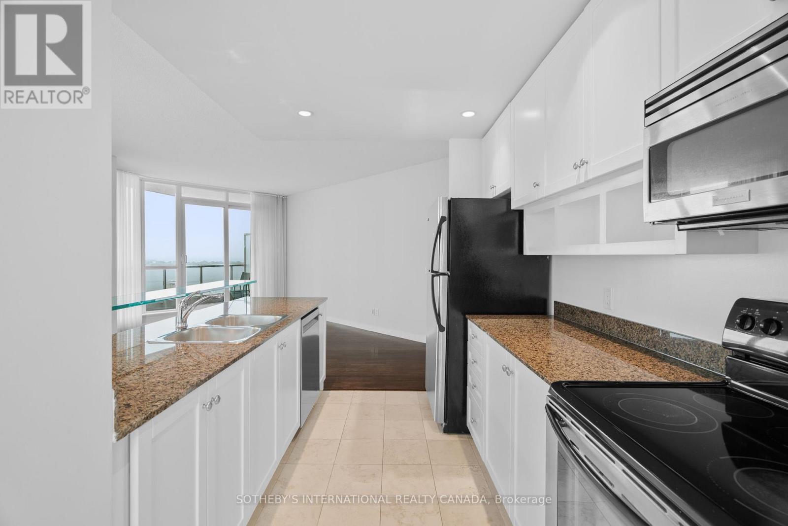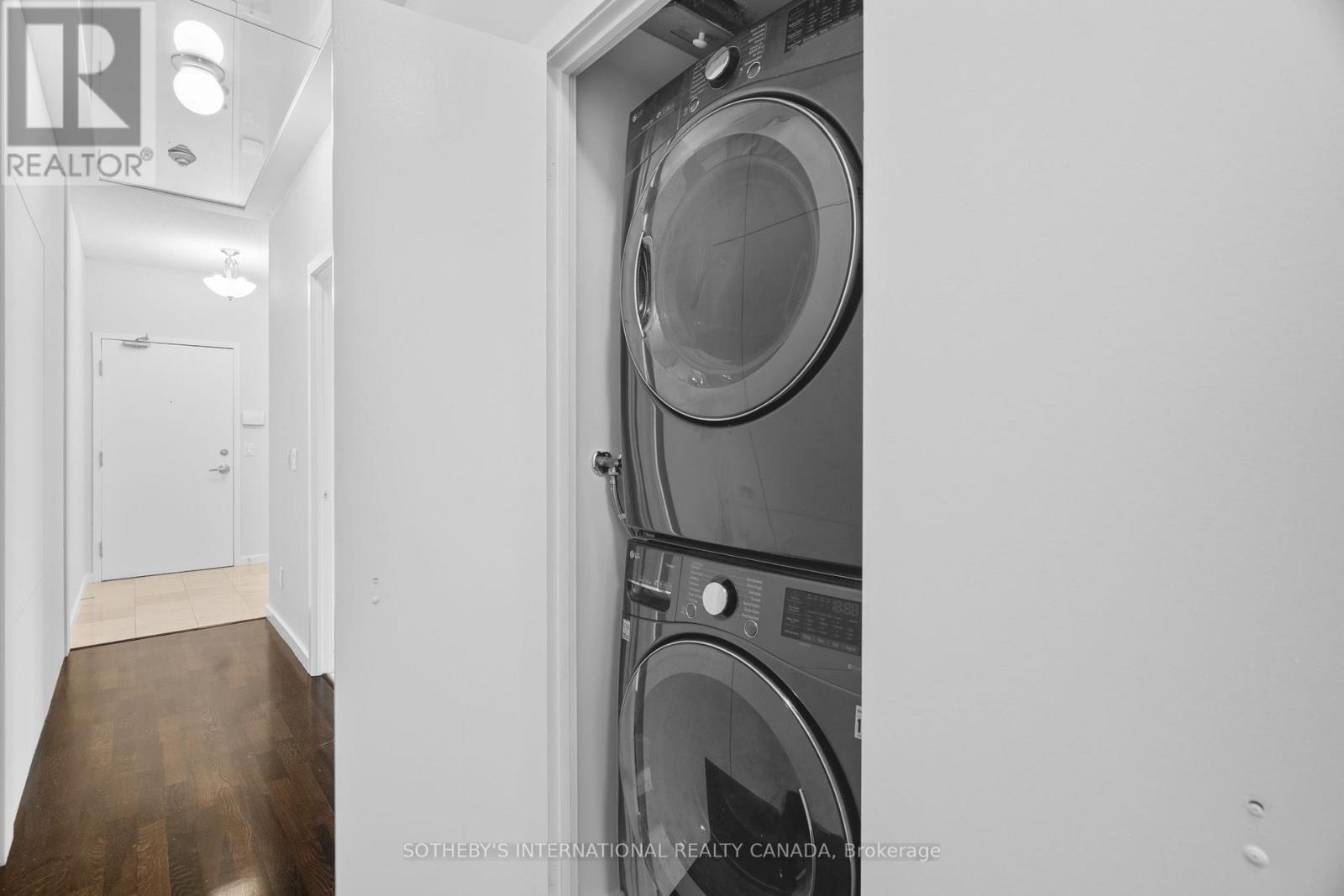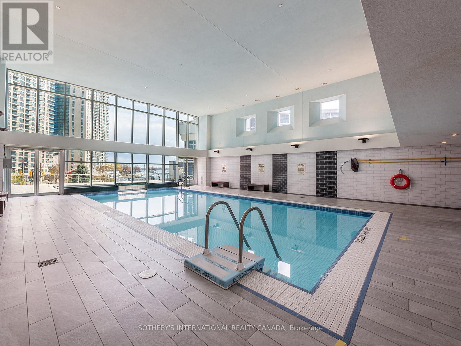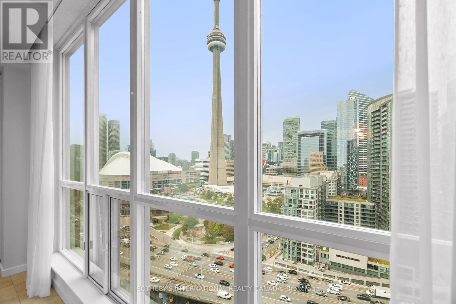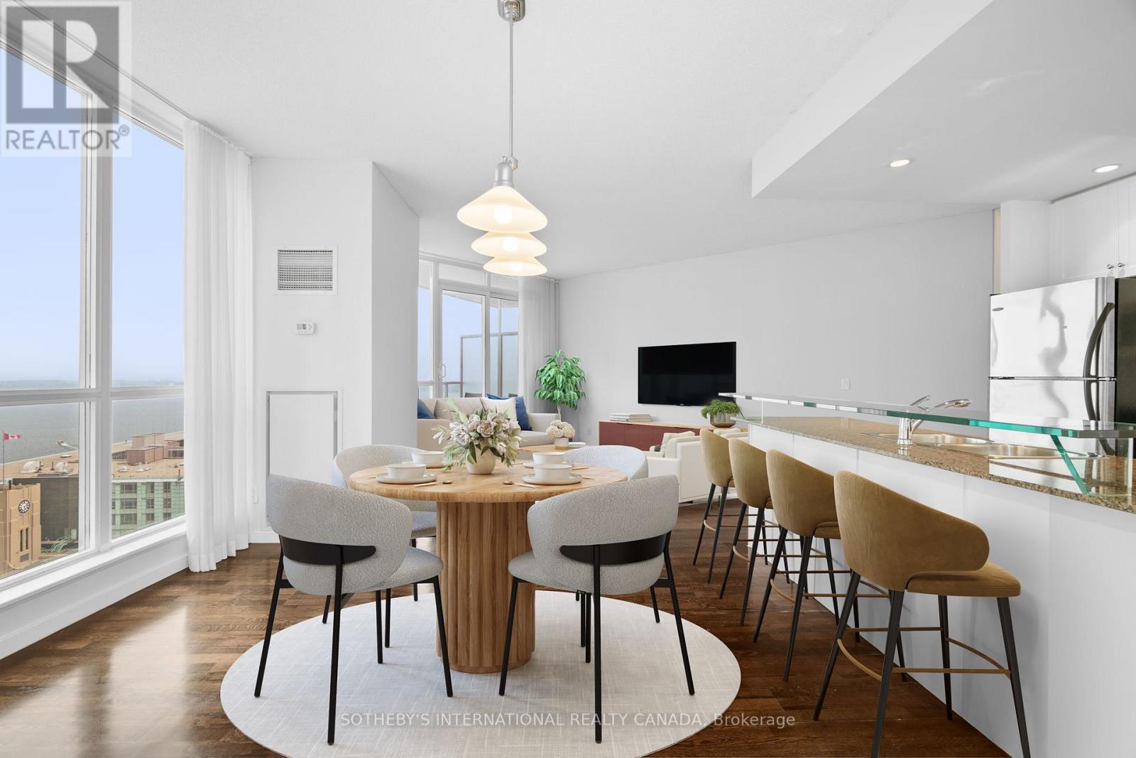 Welcome to Waterclub Condominiums - Toronto's premier waterfront address! This upgraded southeast corner suite was customized by the builder and features real hardwood floors, soaring 9 ft ceilings, and floor-to-ceiling windows that frame breathtaking views of Lake Ontario, the CN Tower, and Toronto's skyline. With approximately 1,200 sq. ft. of thoughtfully designed space, the open-concept layout is ideal for both everyday living and entertaining. The kitchen is appointed with granite counters, a breakfast bar, and ample cabinetry. The private primary suite offers a walk-in closet with custom organizers and a 4-piece ensuite, while the second bedroom also includes a generous walk-in closet and expansive windows. A welcoming foyer with a custom coat closet, convenient in-suite laundry, one parking space, and two lockers complete the home. Residents enjoy resort-style amenities including 24-hour concierge, indoor & outdoor pools, a fitness centre, sauna, guest suites, and BBQ terraces. The location is unmatched: walk across the street to Farm Boy for daily essentials, or stroll to the Financial District, Harbourfront Centre, Scotiabank Arena, Rogers Centre, parks, and the waterfront boardwalk. With Union Station, the PATH, TTC, and highway access just minutes away, this suite offers the ultimate downtown waterfront lifestyle. (id:51158)