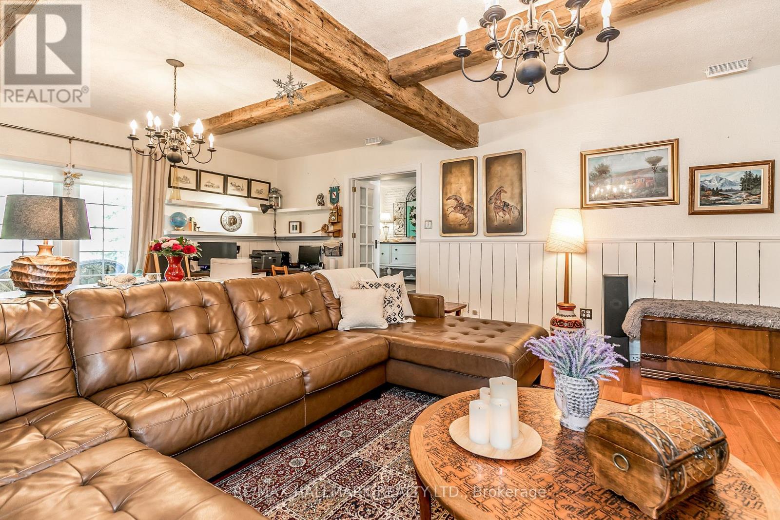 Tucked away at the end of a quiet cul-de-sac just off Innisfil Beach Road, just under 2 Acres, this property offers a rare level of privacy and the perfect foundation for a modern homestead. The grounds are defined by mature weeping willows and a serene, running water pond, creating a natural buffer from the outside world. Inside, the four-bedroom home has been thoughtfully renovated with an open-concept kitchen featuring a gas stove and stainless steel appliances, alongside a family room anchored by reclaimed wood beams and a stone fireplace. The finished basement provides additional space for a home gym, office, or quiet retreat. The outdoor space is designed for self-sufficiency and relaxation, featuring a fully fenced garden, various fruit trees, and a large deck with an above-ground saltwater pool that looks out over the acreage. Significant updates include a furnace and A/C (2018) and a 2022 connection to municipal sewers. For those seeking even more room to breathe, it offers incredible potential for a hobby farm, multi-generational living, or long-term land banking in a prime location. (id:51158)