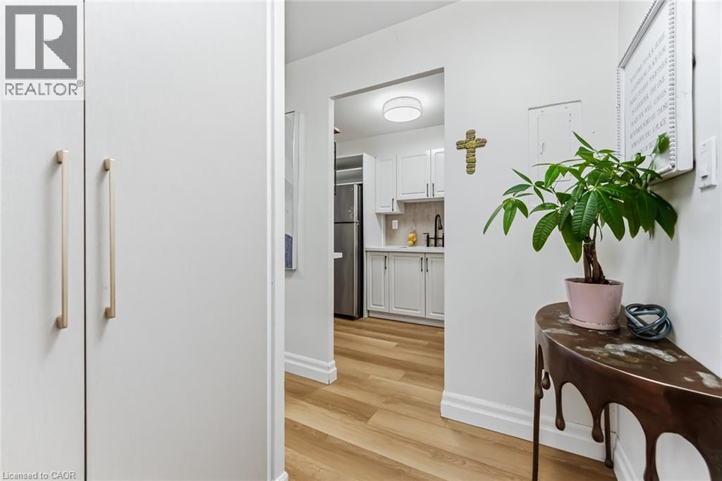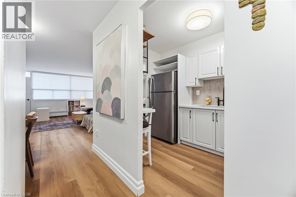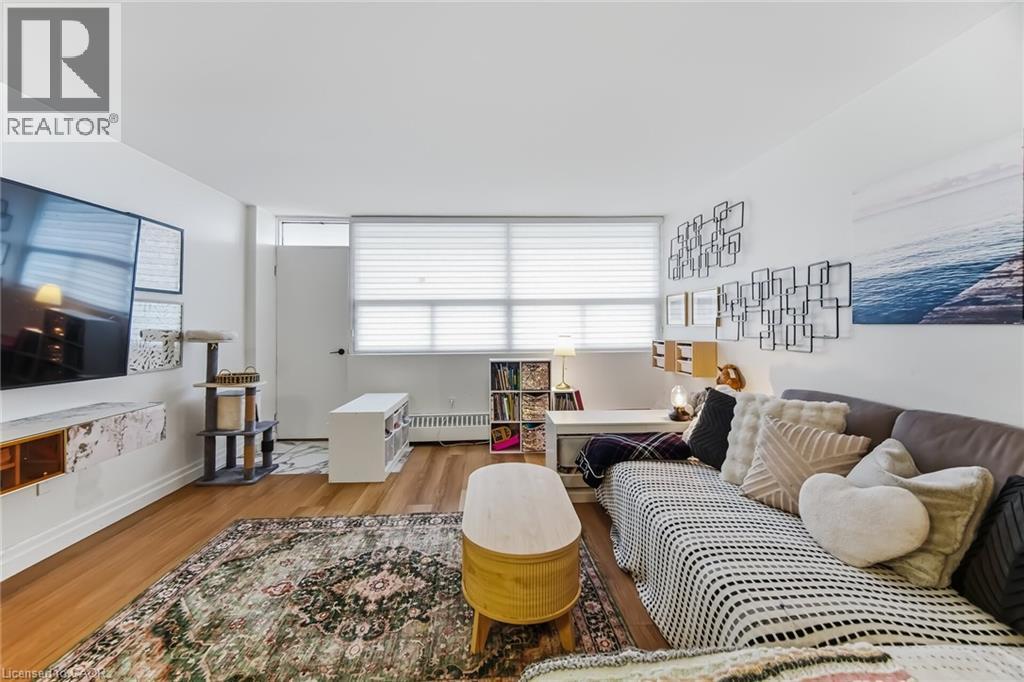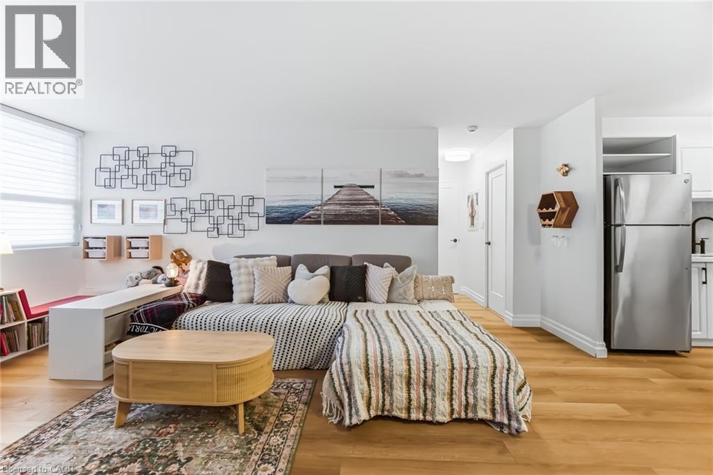 $767.18 MonthlyEnjoy peaceful, effortless living just steps to the lake in the highly sought-after Lighthouse community in the heart of Bronte. This beautifully renovated suite offers bright, comfortable living just a 3-minute walk to Lake Ontario, Bronte Marina, waterfront trails, cafés, restaurants and transit. Featuring modern plank flrs and ceramic flooring throughout, 3 custom 8 ft closets, a matching built-in desk and elegant window coverings including blackout treatments in the bedroom. Updated with a stainless steel stove (2025) and new toilet (2025). Includes a marbled stone floating console and 65” smart TV. Set in a safe, established neighbourhood, this well-managed building offers excellent amenities including outdoor pool, gym, saunas, party room, billiards, library and workshop. All-inclusive maintenance fees cover heat, hydro, water, Bell cable & internet, ideal for those looking to simplify without compromise. (id:51158)