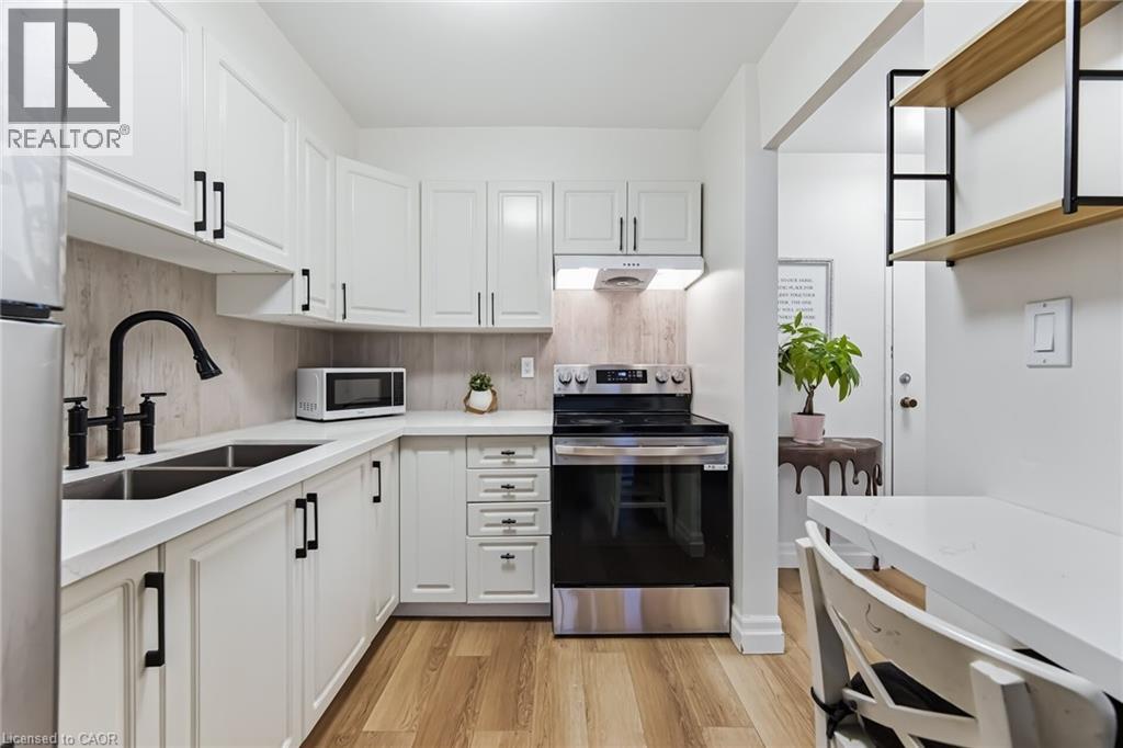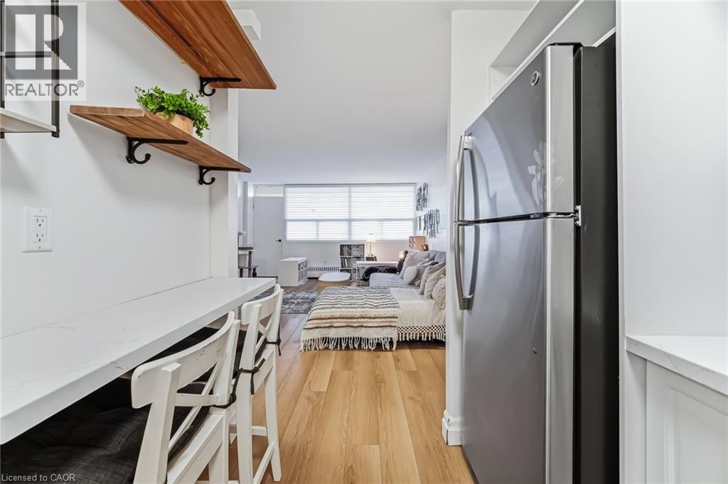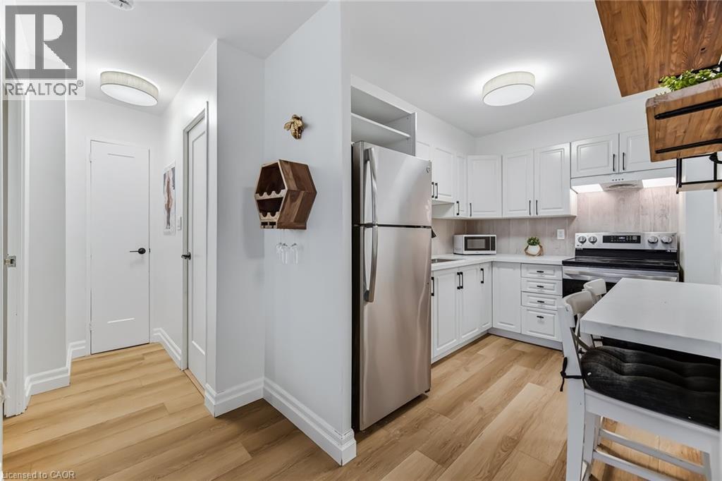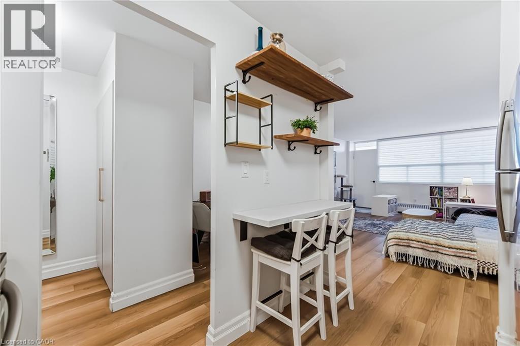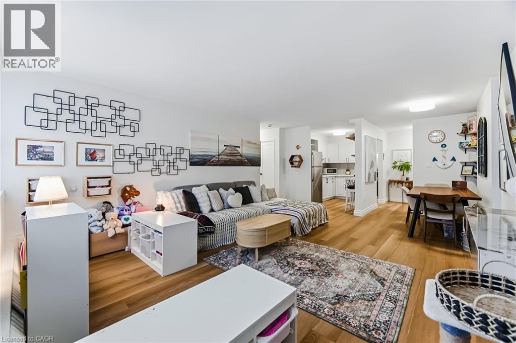 $767.18 MonthlyEnjoy peaceful, effortless living just steps to the lake in the highly sought-after Lighthouse community in the heart of Bronte. This beautifully renovated suite offers bright, comfortable living just a 3-minute walk to Lake Ontario, Bronte Marina, waterfront trails, cafés, restaurants and transit. Featuring modern plank flrs and ceramic flooring throughout, 3 custom 8 ft closets, a matching built-in desk and elegant window coverings including blackout treatments in the bedroom. Updated with a stainless steel stove (2025) and new toilet (2025). Includes a marbled stone floating console and 65” smart TV. Set in a safe, established neighbourhood, this well-managed building offers excellent amenities including outdoor pool, gym, saunas, party room, billiards, library and workshop. All-inclusive maintenance fees cover heat, hydro, water, Bell cable & internet, ideal for those looking to simplify without compromise. (id:51158)