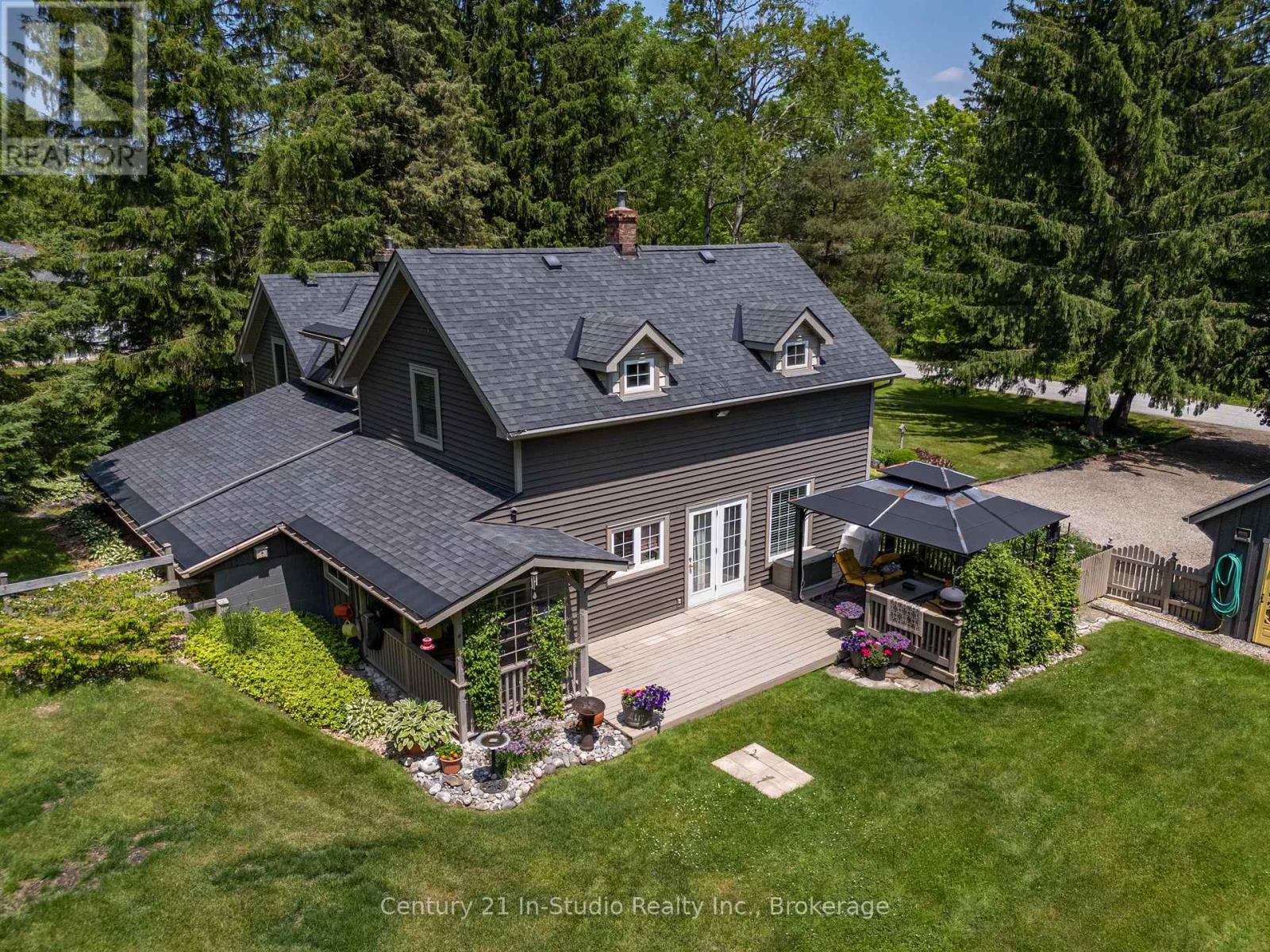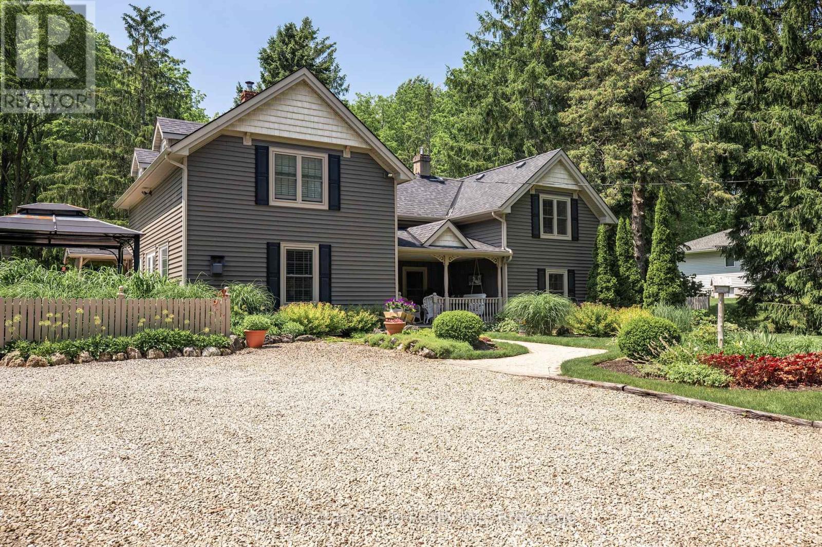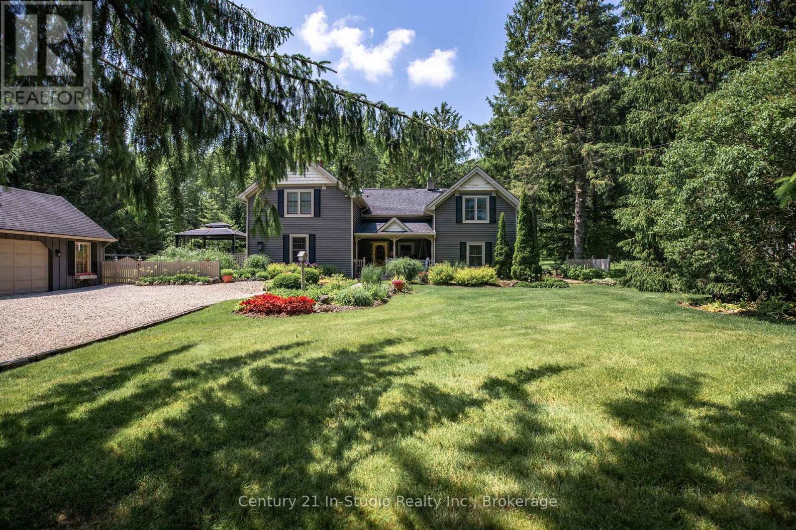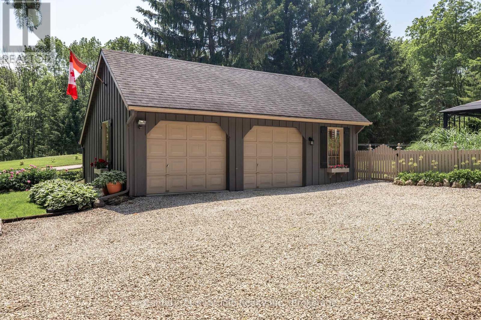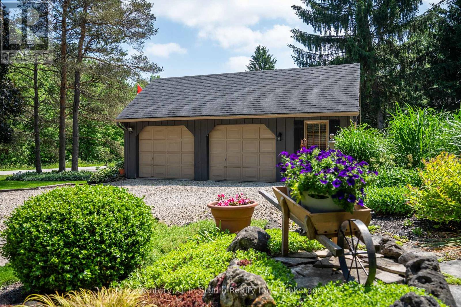 Welcome to one of the best-kept secrets near Owen Sound, where peace, privacy, and convenience meet on a quiet dead-end street. Set on just over an acre of beautifully landscaped land, this property offers a level of serenity that's rarely found this close to town. Mature trees, open green space, and established perennial gardens surround you, making it truly an outdoor paradise. Whether it's morning coffee on the covered front porch, a peaceful afternoon in the gazebo, or watching the kids and pets play safely in the fenced side yard, the outdoor lifestyle here is second to none. Inside, the home is warm and welcoming, with a unique layout that offers both privacy and flexibility. There are two separate living areas, each with its own staircase leading to the second floora great setup for families with children, guests, or those working from home. A central laundry room and powder room sit between the living spaces, making day-to-day life both comfortable and convenient. You'll find four bedrooms, two bathrooms, two gas fireplaces, and a recently updated kitchen that blends modern functionality with timeless charm. A mudroom off the kitchen adds valuable storage and space for a second fridge or freezer. Additional highlights include a detached, insulated 2.5-car garage with a wood stove and a full loft for storage, a 15' x 19' workshop/storage room, central vac, gas dryer, gas BBQ hookup, and hot and cold water taps on the back porch for easy outdoor use. Located in Georgian Bluffs but bordering Owen Sound, you get the best of both worlds: lower property taxes with the perks of city water, transit access, and close proximity to schools, parks, and shopping. Lovingly maintained by the same owners for 49 years, this home offers more than just space, it offers a lifestyle. One visit, and you'll understand why they never wanted to leave. (id:51158)