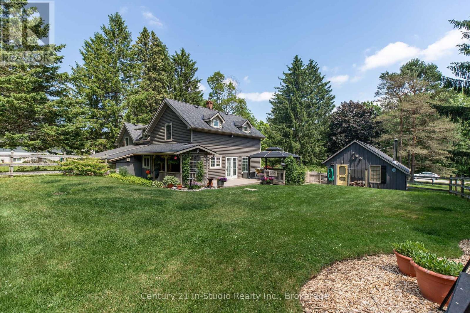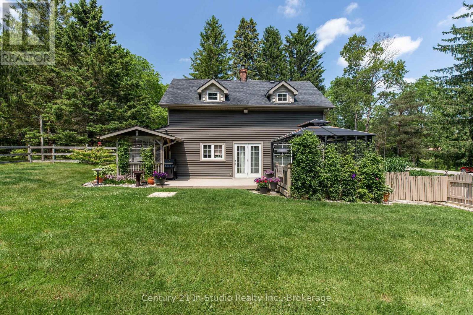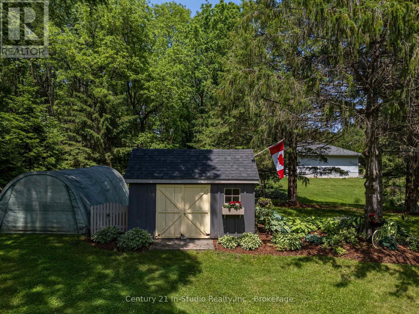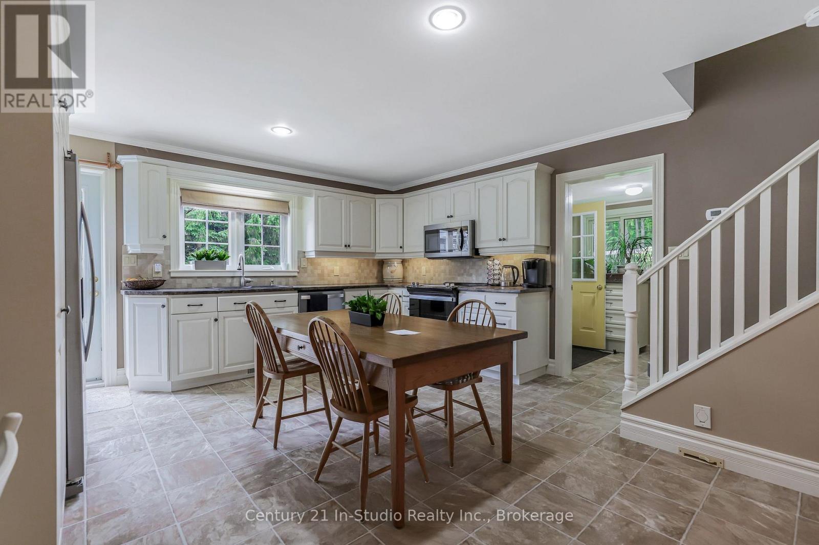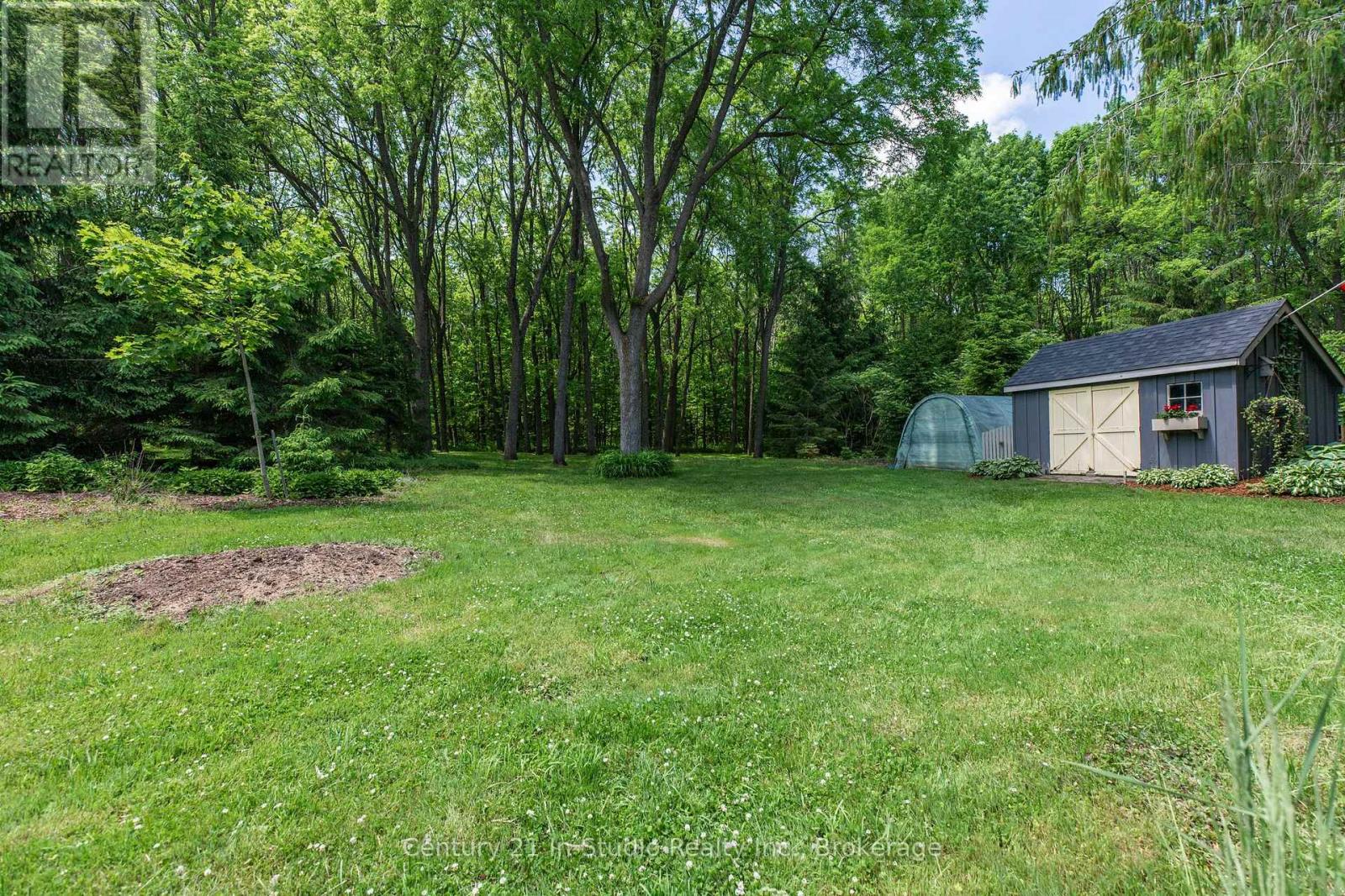 Welcome to one of the best-kept secrets near Owen Sound, where peace, privacy, and convenience meet on a quiet dead-end street. Set on just over an acre of beautifully landscaped land, this property offers a level of serenity that's rarely found this close to town. Mature trees, open green space, and established perennial gardens surround you, making it truly an outdoor paradise. Whether it's morning coffee on the covered front porch, a peaceful afternoon in the gazebo, or watching the kids and pets play safely in the fenced side yard, the outdoor lifestyle here is second to none. Inside, the home is warm and welcoming, with a unique layout that offers both privacy and flexibility. There are two separate living areas, each with its own staircase leading to the second floora great setup for families with children, guests, or those working from home. A central laundry room and powder room sit between the living spaces, making day-to-day life both comfortable and convenient. You'll find four bedrooms, two bathrooms, two gas fireplaces, and a recently updated kitchen that blends modern functionality with timeless charm. A mudroom off the kitchen adds valuable storage and space for a second fridge or freezer. Additional highlights include a detached, insulated 2.5-car garage with a wood stove and a full loft for storage, a 15' x 19' workshop/storage room, central vac, gas dryer, gas BBQ hookup, and hot and cold water taps on the back porch for easy outdoor use. Located in Georgian Bluffs but bordering Owen Sound, you get the best of both worlds: lower property taxes with the perks of city water, transit access, and close proximity to schools, parks, and shopping. Lovingly maintained by the same owners for 49 years, this home offers more than just space, it offers a lifestyle. One visit, and you'll understand why they never wanted to leave. (id:51158)