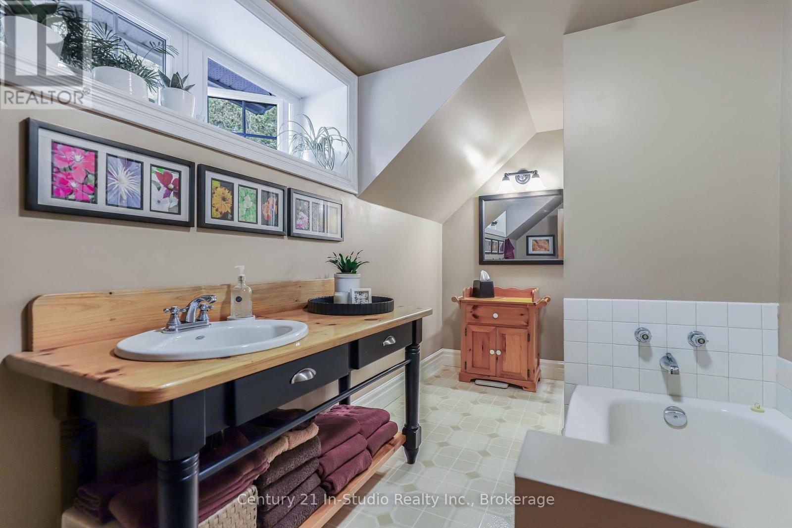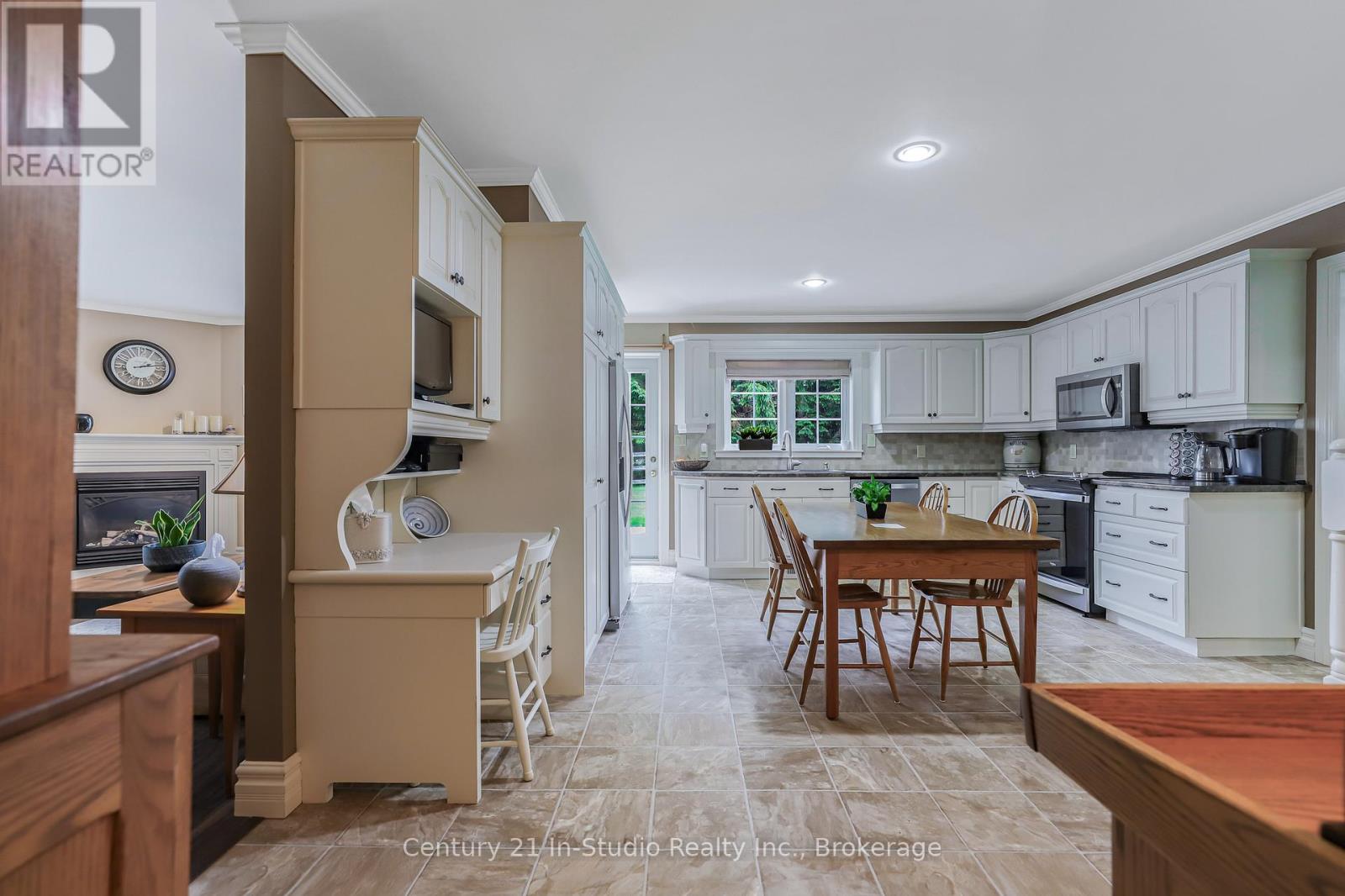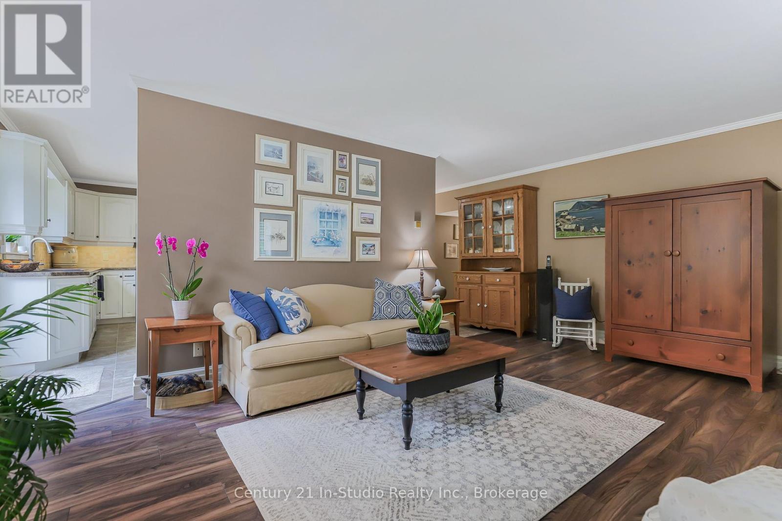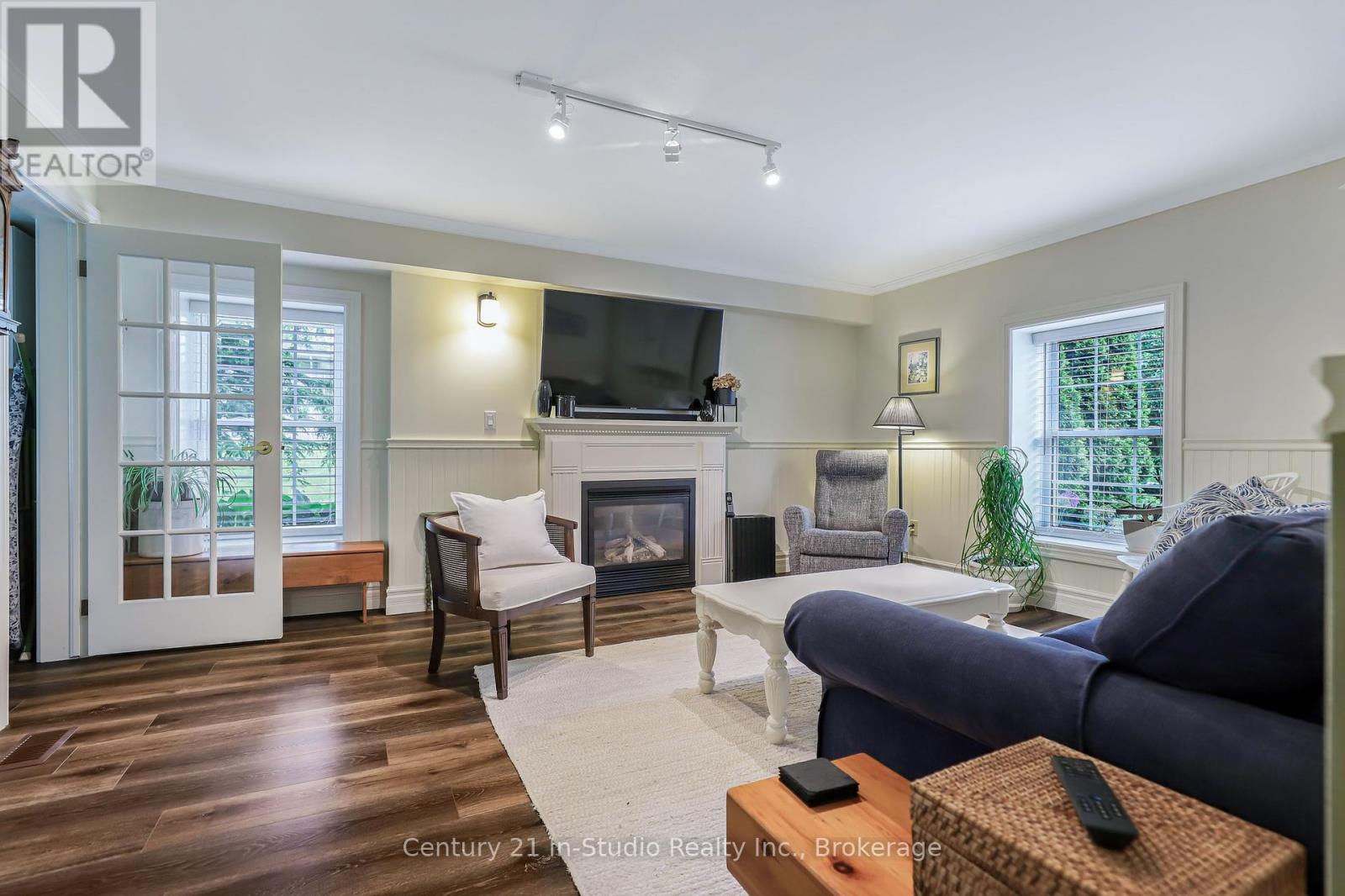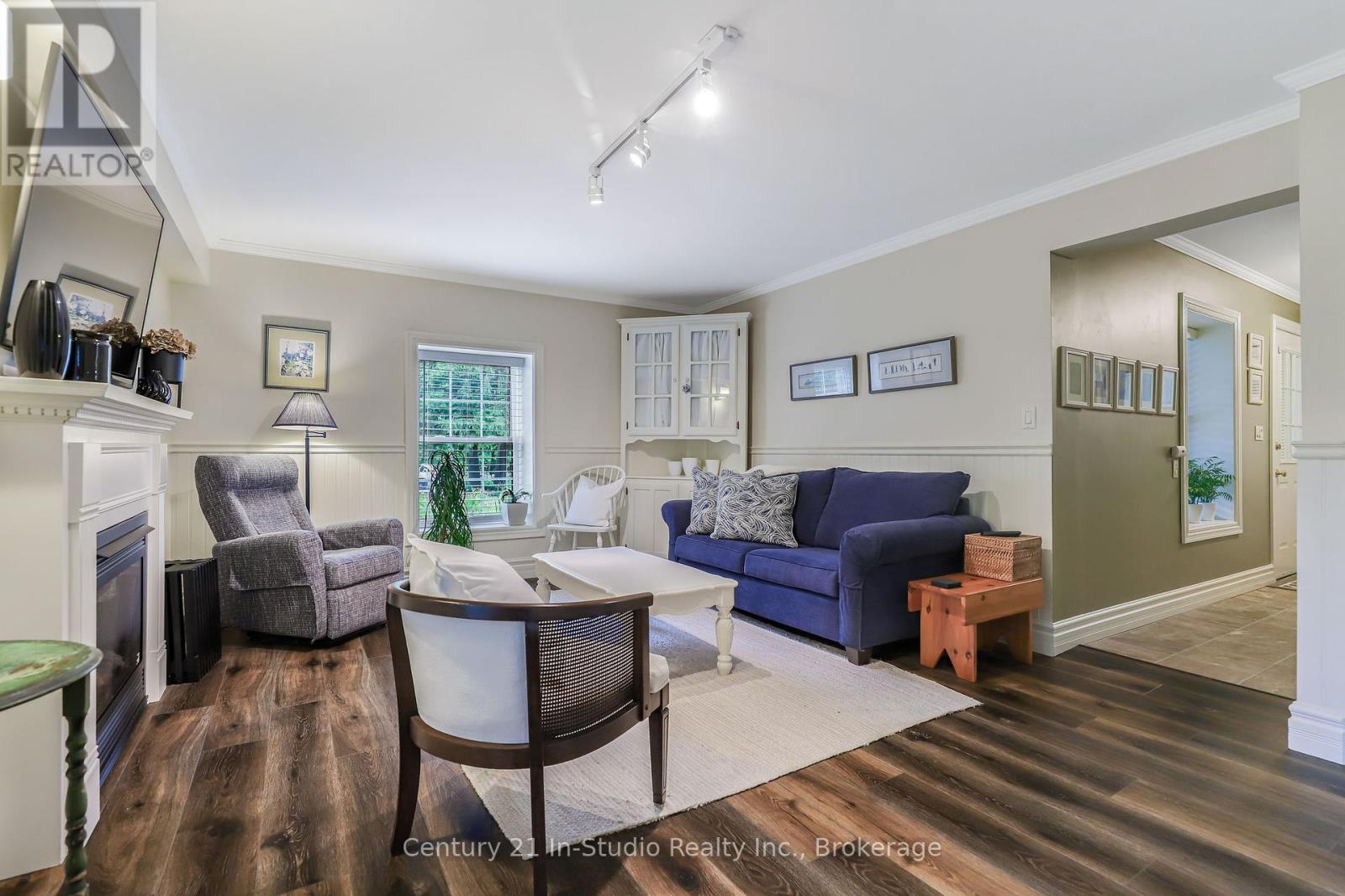 Welcome to one of the best-kept secrets near Owen Sound, where peace, privacy, and convenience meet on a quiet dead-end street. Set on just over an acre of beautifully landscaped land, this property offers a level of serenity that's rarely found this close to town. Mature trees, open green space, and established perennial gardens surround you, making it truly an outdoor paradise. Whether it's morning coffee on the covered front porch, a peaceful afternoon in the gazebo, or watching the kids and pets play safely in the fenced side yard, the outdoor lifestyle here is second to none. Inside, the home is warm and welcoming, with a unique layout that offers both privacy and flexibility. There are two separate living areas, each with its own staircase leading to the second floora great setup for families with children, guests, or those working from home. A central laundry room and powder room sit between the living spaces, making day-to-day life both comfortable and convenient. You'll find four bedrooms, two bathrooms, two gas fireplaces, and a recently updated kitchen that blends modern functionality with timeless charm. A mudroom off the kitchen adds valuable storage and space for a second fridge or freezer. Additional highlights include a detached, insulated 2.5-car garage with a wood stove and a full loft for storage, a 15' x 19' workshop/storage room, central vac, gas dryer, gas BBQ hookup, and hot and cold water taps on the back porch for easy outdoor use. Located in Georgian Bluffs but bordering Owen Sound, you get the best of both worlds: lower property taxes with the perks of city water, transit access, and close proximity to schools, parks, and shopping. Lovingly maintained by the same owners for 49 years, this home offers more than just space, it offers a lifestyle. One visit, and you'll understand why they never wanted to leave. (id:51158)