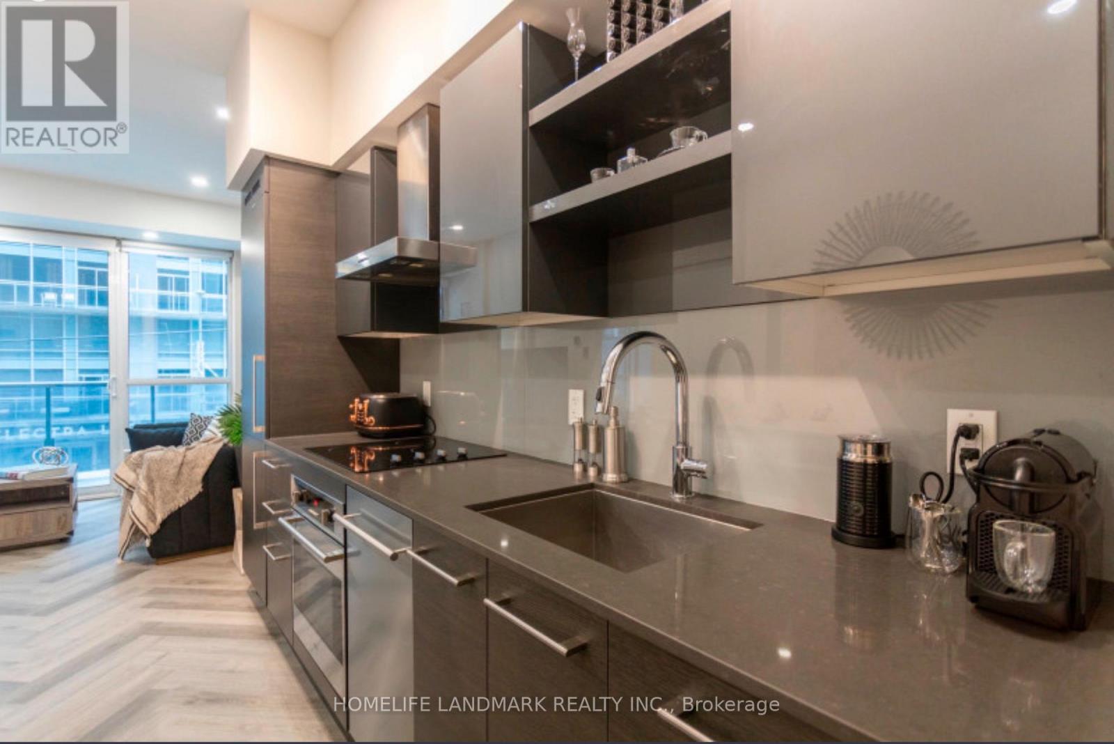 $341 MonthlyExperience luxury urban living at King West Village - DNA3 Condo. South-facing 487 ft 1-bedroom with 9' ceilings, upgraded herringbone luxury flooring, large balcony, quartz countertops, center island and built-in appliances, washer/dryer. Beautiful spotlight lighting throughout the home. Amenities: gym, yoga room, rooftop BBQ terrace, theatre, business centre, concierge, and No Grocery & Tim Hortons in the building. Streetcar at door, steps to Entertainment & Financial Districts. You will Love where you live!--- (id:51158)