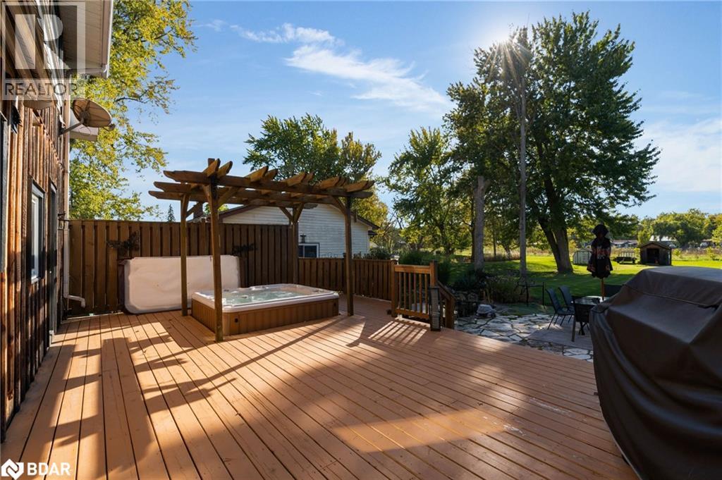 Nestled on a generous lot with peaceful nature behind and the lake just across the road, this property offers the perfect balance of family living and lakeside retreat. Just steps from the waterfront park, you can enjoy morning walks by the water, afternoons at the park, and evenings taking in the fresh lake breeze. Inside, the open-concept layout creates a warm and welcoming space where family and friends can gather with ease. A versatile separate area provides flexibility for a workshop, garage, or hangout, making the home as practical as it is inviting. Outdoors, a large deck and stone patio with a hot tub set the stage for relaxation, entertaining, and enjoying the beautiful natural surroundings. With its serene setting, proximity to the lake, and spaces designed for both everyday living and year-round enjoyment, this home is truly special. (id:51158)