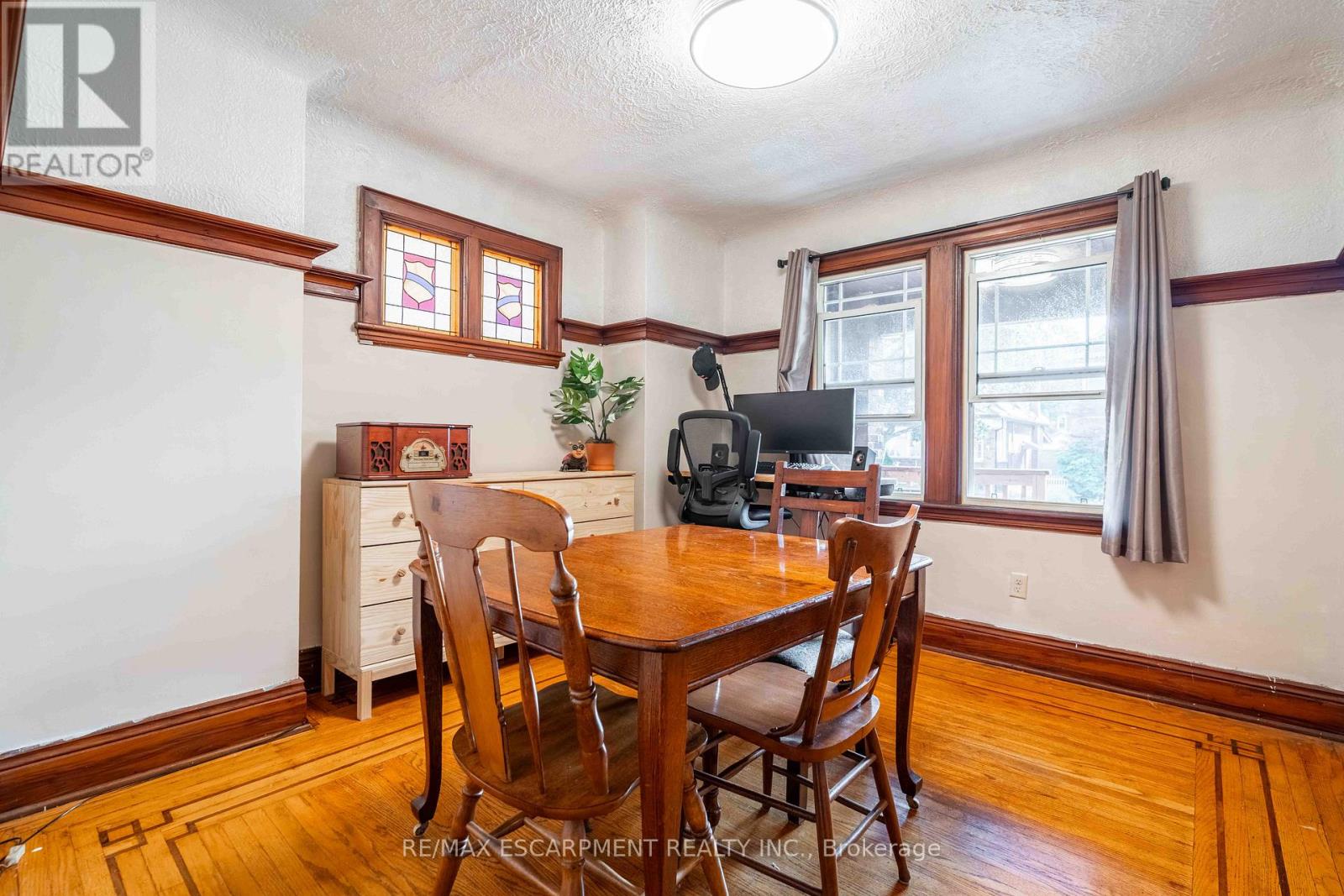 Welcome to 228 Province St S, a 3-bedroom, 1.5-story home full of original character and primed for your updates. Listed at $500,000, it delivers great value in Hamilton's desirable Gage Park area, blending historic charm with modem convenience. Step inside to parquet hardwood floors that add warmth and elegance. Original 5-inch wood baseboards, intricate wood trim, and a solid wood exterior door highlight the home's classic craftsmanship. The stained glass windows create a colourful, magical glow, ideal for relaxed mornings or evenings. Upstairs, two bedrooms offer quirky attic-like charm, perfect for families, offices, or guests. The dean kitchen has ample storage and convenient access to the rear deck. The main floor bedroom, currently used as an office, offers a flexible space to meet your needs. Well-maintained by the sellers: owned hot water tank (2021), no rentals, roof (2018) with lifetime warranty, some windows updated (2004) with lifetime warranty, electrical updated (2010) by Source Electric, and furnace/AC (2010) by Boonstra, exterior waterproofing (2006), Eavestroughs (2009). Focus on enjoyment, not fixes. In Hamilton's vibrant Delta West/ Gage Park neighbourhood near Gage Park, enjoy mature tree-lined streets, family vibes, and Escarpment access for outdoor fun. Groceries, schools, and amenities are nearby. Ifs a welcoming spot for tranquility and connection. This soulful home with history and potential awaits! (id:51158)