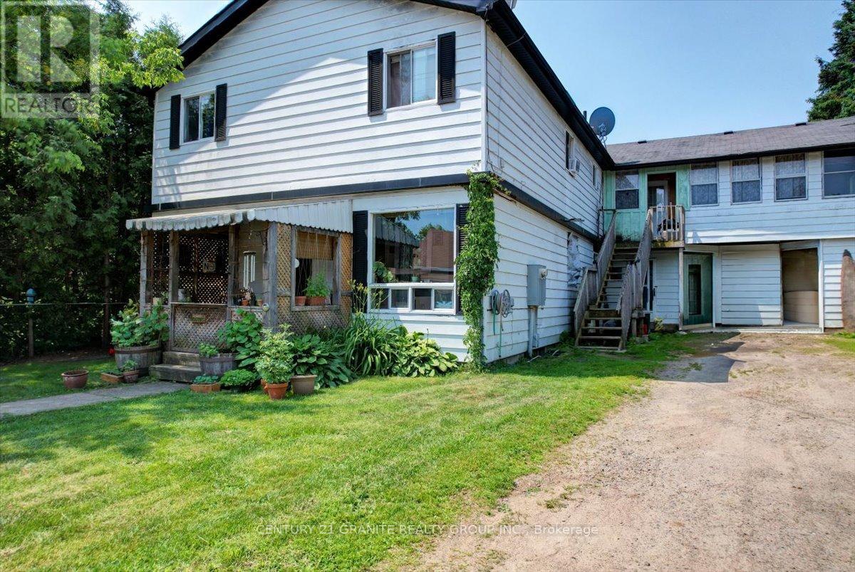This legal 4 unit multiplex in the heart of Wilberforce offers an exceptional opportunity for investors or owner-occupier seeking immediate income and long term growth. Set on a flat 68 x 200 (approx. 0.30 acre) lot, the building includes 2 - 2 bed/1 bath units and 2 - 1 bed/1 bath units, front yard parking is available for each unit. Unit 1 (1 bed/1 bath) features access to a side patio. Unit 2 (1bed/1 bath) includes porch access to the back yard. Unit 3 (2 bed/1 bath) provides a practical layout for small families. Unit 4 (2 bed/1 bath) is fully renovated with a new kitchen, new bathroom, flooring, appliances, and a walkout deck overlooking the fenced backyard. The property is serviced by a well and septic system, heated with electric baseboards, and carries affordable annual taxes. The large, flat backyard is ideal for tenant enjoyment and outdoor gatherings. Located just steps from Wilberforce amenities, shops, restaurants, and Dark Lake with its lovely sandy beach, this asset is attractive to a wide tenant base. With Units 1-3 already rented and Unit 4 move-in ready, this is a rare, income-generating opportunity in a growing rural market. Whether you choose to live in one of the units or add this to your long/short term rental investment portfolio, the potential here is undeniable. Book your private viewing today and secure this smart investment in the heart of the Haliburton Highlands. (id:51158)