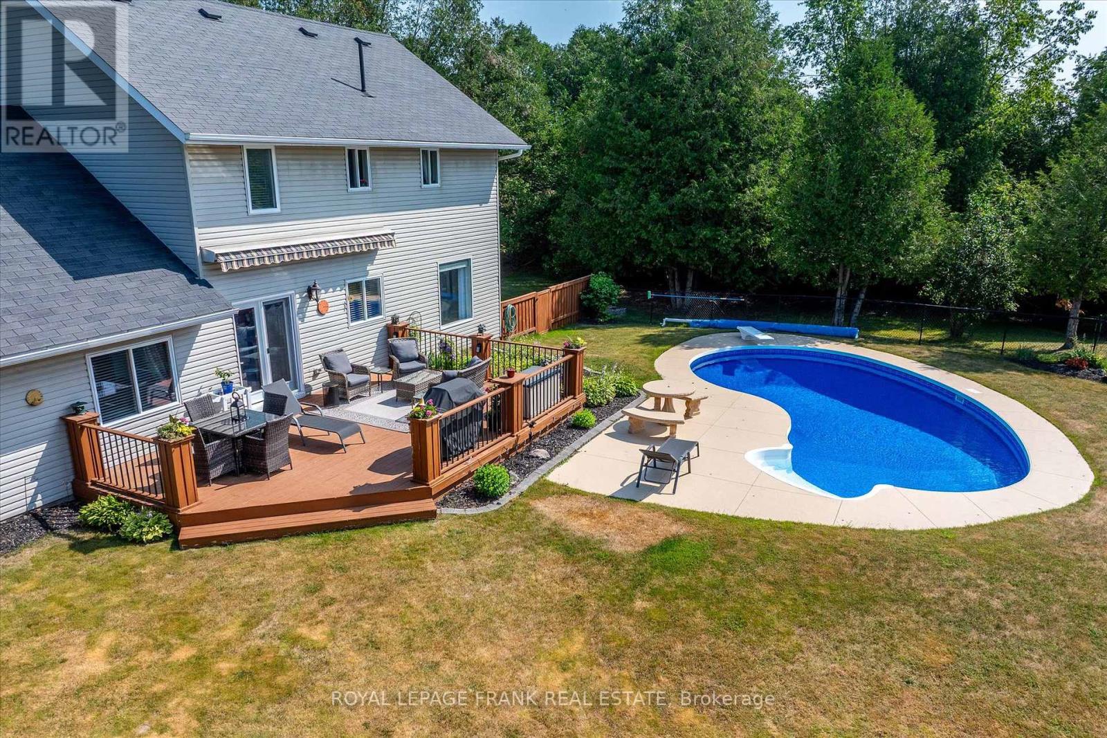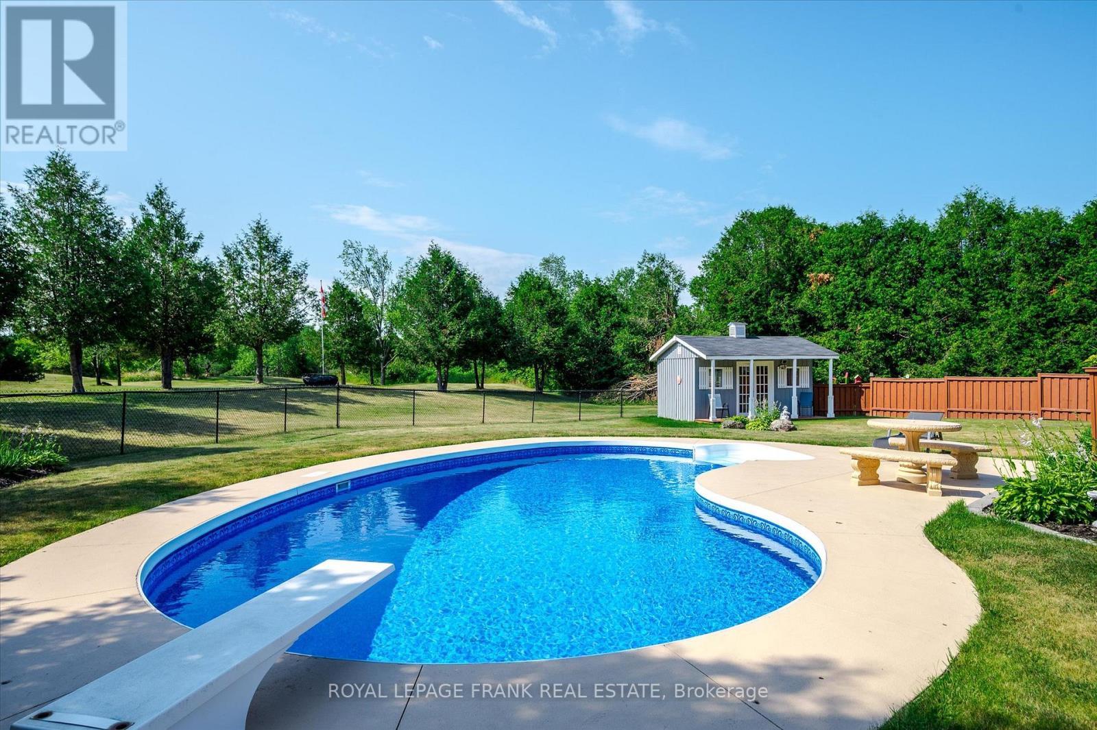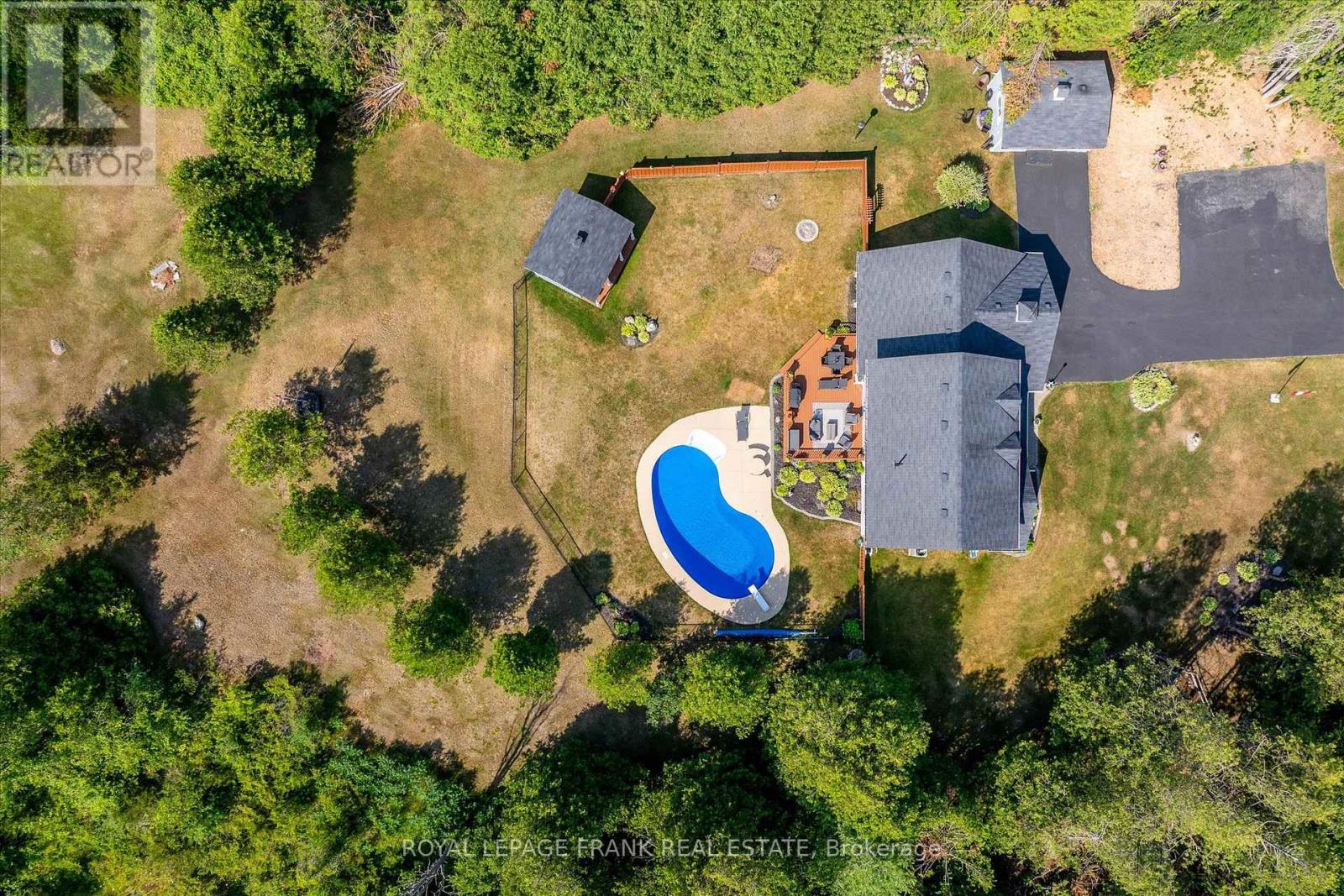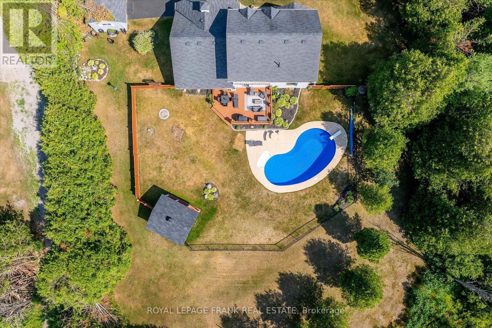 Welcome to 229 Lonsberry Lane, an exceptional 4 bed, 4 bath home nestled on 2.55 beautifully landscaped acres at the end of a quiet cul-de-sac, just 25 minutes from Peterborough. Meticulously maintained inside and out, this inviting home offers the perfect blend of space, privacy, and comfort. The main floor features a large, bright open-concept living room, formal dining room, that overlooks the pool & yard. The eat-in kitchen, and cozy family room, featuring a gas fireplace, are ideal for entertaining or everyday family living. A convenient main floor laundry room and 2-piece bath complete the main floor, beside the access to the garage. Upstairs, the primary suite serves as a peaceful retreat with a walk-in closet and private ensuite bath. Two additional generously sized bedrooms and a second 4-piece bath provide plenty of space for family or guests. The finished basement expands your living space with a large family room, a bedroom, a wine cellar, and an additional full bathroom perfect for extended family or guests. From the kitchen sliding doors lead to the backyard oasis, making outdoor enjoyment effortless. Step outside and experience true resort-style living. The expansive deck overlooks an in-ground saltwater pool surrounded by lush lawn and beautifully landscaped gardens. A charming pool house offers flexibility as a change space, art studio, or private yoga retreat. A separate workshop shed is ideal for tools and outdoor projects. Located just minutes from the scenic trails and Warsaw Caves Conservation Area, this property offers a peaceful lifestyle with access to nature and outdoor recreation perfect for families, creatives, or anyone looking to unwind in a tranquil setting while staying close to city conveniences. Don't miss this rare opportunity to own a meticulously cared-for home in a quiet, welcoming community. (Hydro One Electricity- $230 per month equal billing.) (id:51158)