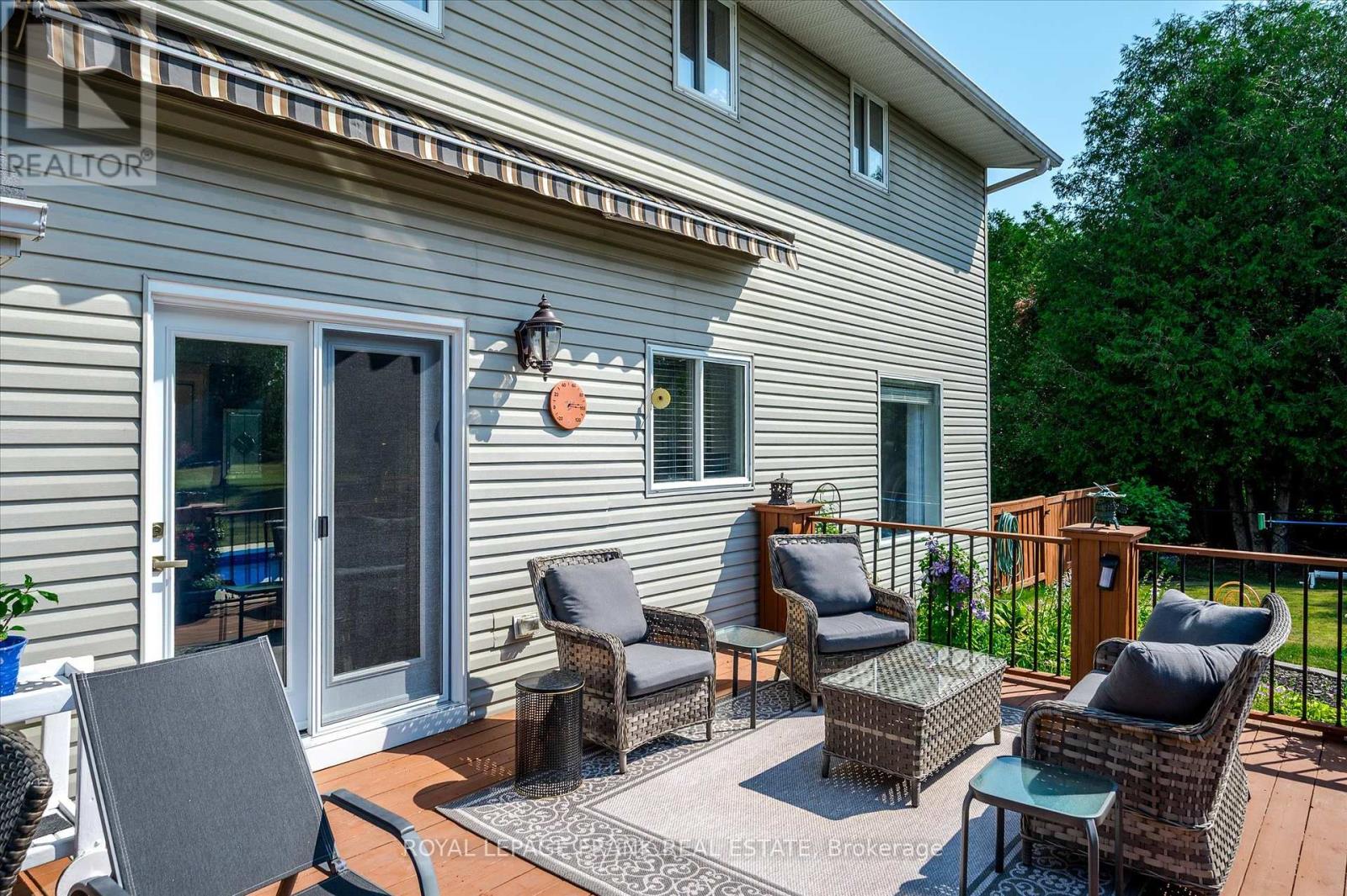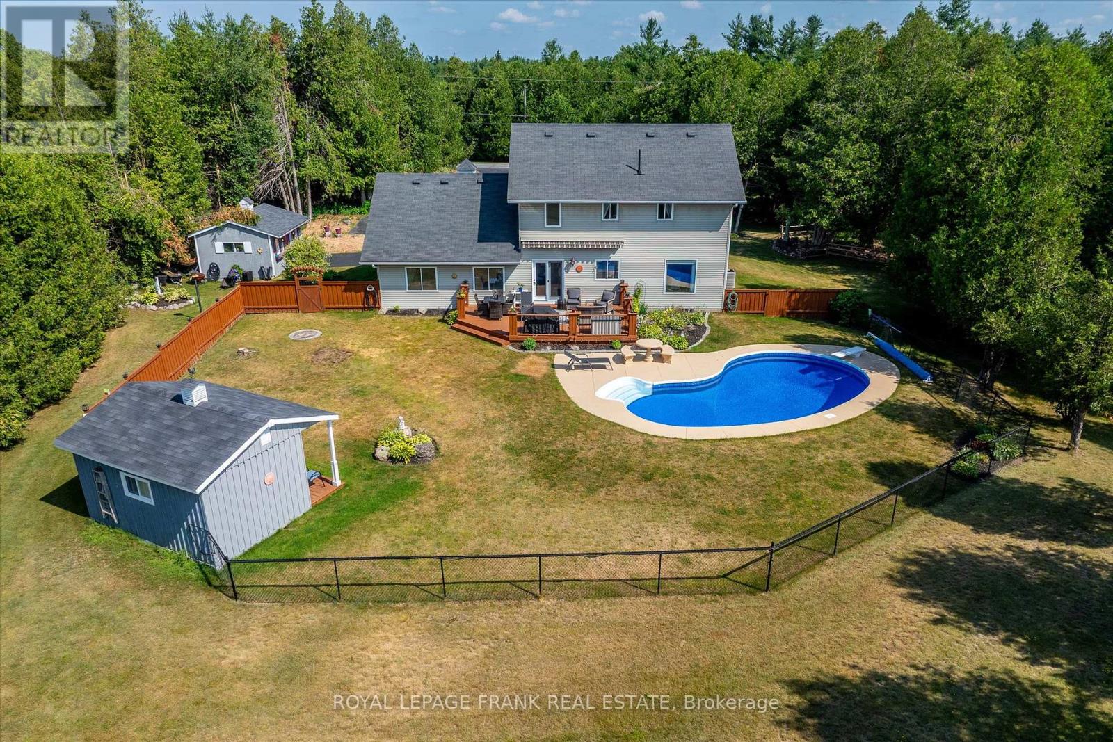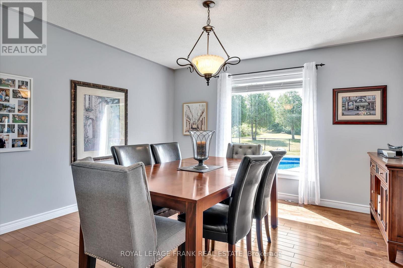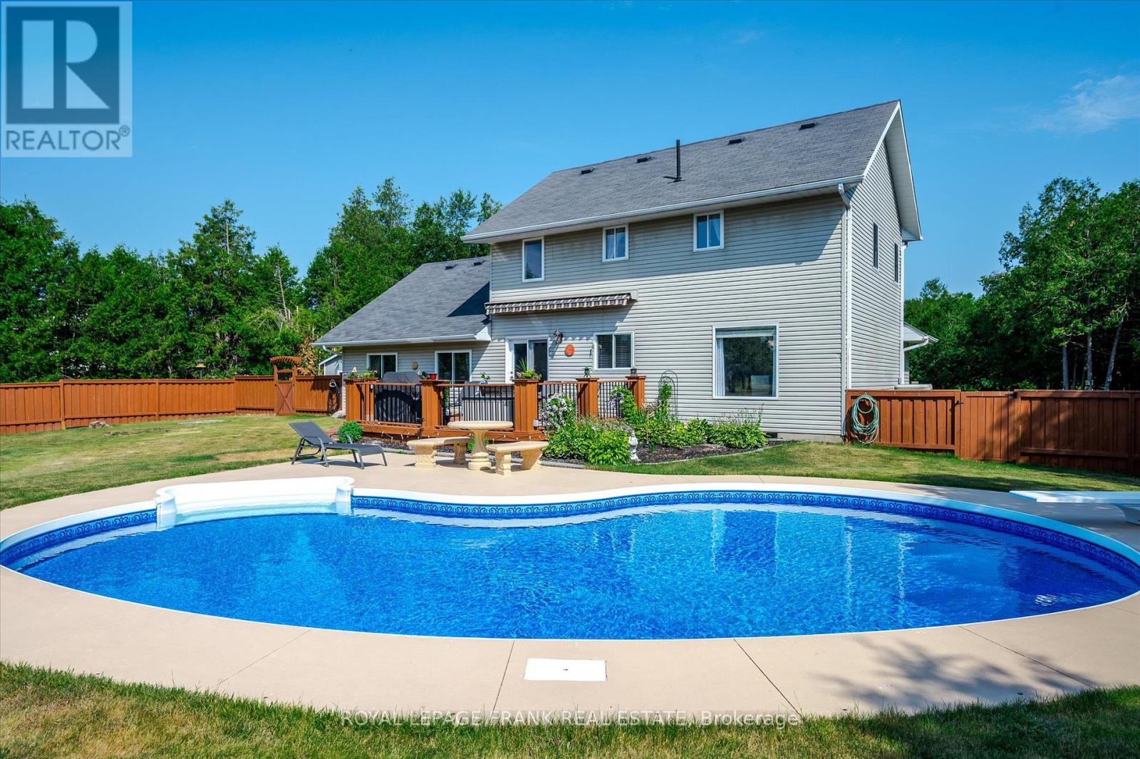 Welcome to 229 Lonsberry Lane, an exceptional 4 bed, 4 bath home nestled on 2.55 beautifully landscaped acres at the end of a quiet cul-de-sac, just 25 minutes from Peterborough. Meticulously maintained inside and out, this inviting home offers the perfect blend of space, privacy, and comfort. The main floor features a large, bright open-concept living room, formal dining room, that overlooks the pool & yard. The eat-in kitchen, and cozy family room, featuring a gas fireplace, are ideal for entertaining or everyday family living. A convenient main floor laundry room and 2-piece bath complete the main floor, beside the access to the garage. Upstairs, the primary suite serves as a peaceful retreat with a walk-in closet and private ensuite bath. Two additional generously sized bedrooms and a second 4-piece bath provide plenty of space for family or guests. The finished basement expands your living space with a large family room, a bedroom, a wine cellar, and an additional full bathroom perfect for extended family or guests. From the kitchen sliding doors lead to the backyard oasis, making outdoor enjoyment effortless. Step outside and experience true resort-style living. The expansive deck overlooks an in-ground saltwater pool surrounded by lush lawn and beautifully landscaped gardens. A charming pool house offers flexibility as a change space, art studio, or private yoga retreat. A separate workshop shed is ideal for tools and outdoor projects. Located just minutes from the scenic trails and Warsaw Caves Conservation Area, this property offers a peaceful lifestyle with access to nature and outdoor recreation perfect for families, creatives, or anyone looking to unwind in a tranquil setting while staying close to city conveniences. Don't miss this rare opportunity to own a meticulously cared-for home in a quiet, welcoming community. (Hydro One Electricity- $230 per month equal billing.) (id:51158)