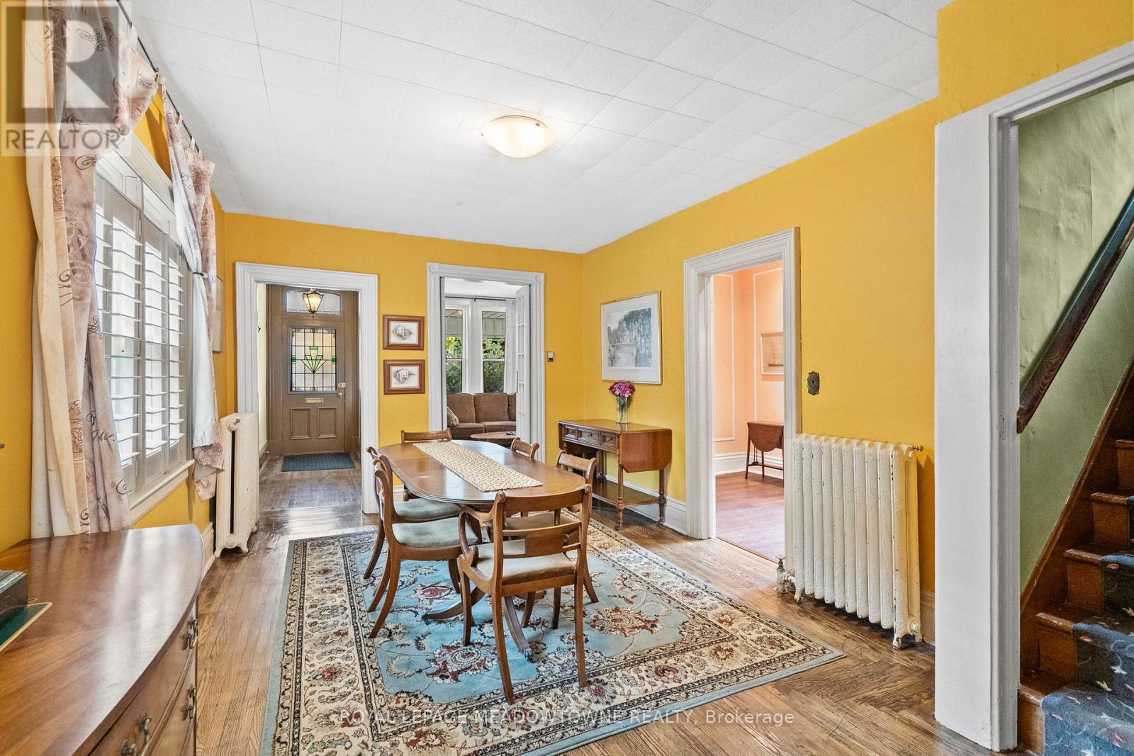 Just South of Downtown Milton. Detached home on a 54 x 120 ft lot with 3+1 bedrooms and a large kitchen overlooking the backyard. Original wood trim, French doors, and a wide front porch add warmth and character. 700 sq ft workshop + garage ideal for hobbyists, storage, or future ideas. Parking for four cars, plus extra parking lot directly behind - perfect for downtown events like Steam Era, the Car Show, or the Fair. Mature trees provide shade and privacy. Updates: Fully rewired (no knob & tube), plumbing upgraded, exterior painted, new front porch, roof 6 years old. One street south of Main Street - you can see Town Hall from your front yard. Walk to cafes, shops, restaurants, and community events. (id:51158)