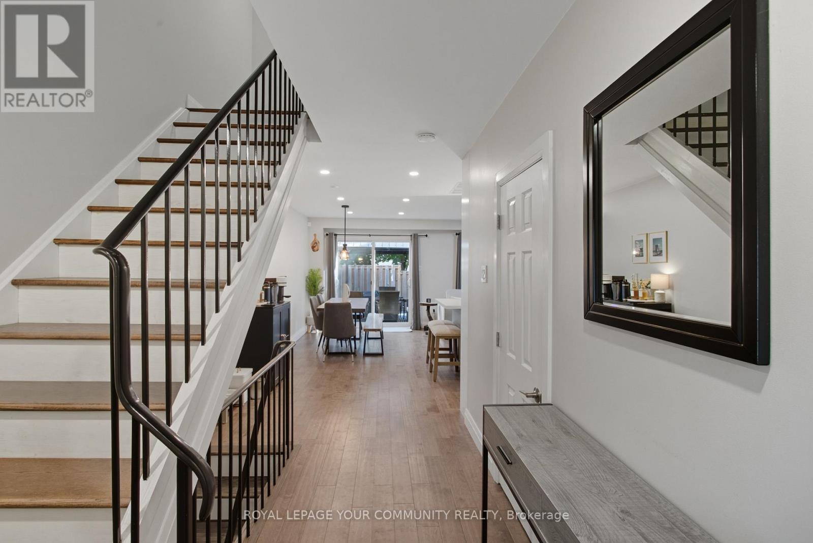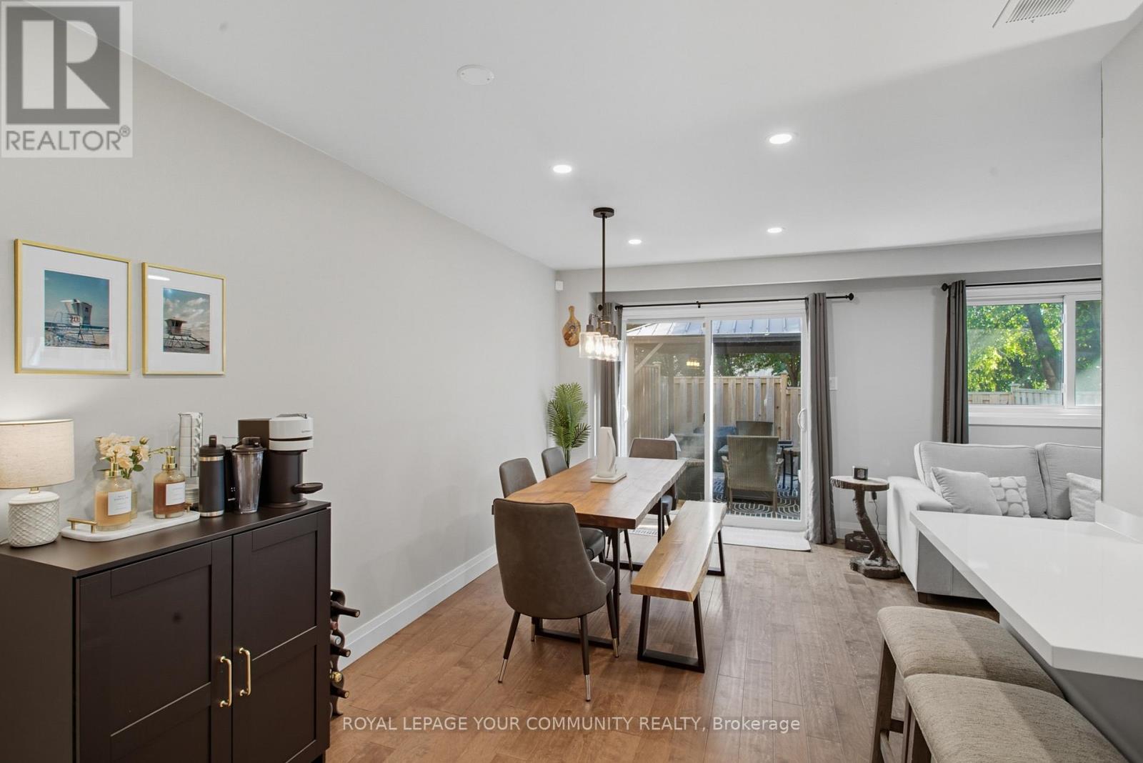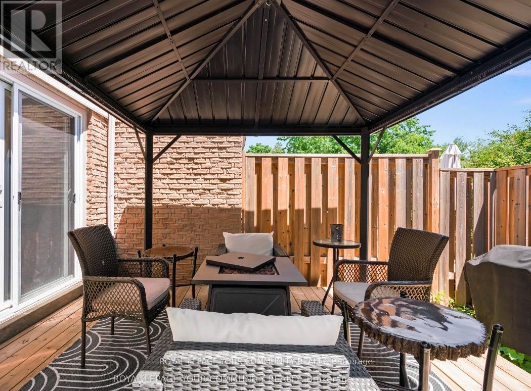 Nestled in the desirable Falgarwood neighbourhood, backing onto greenspace, this fully renovated (App $70,000) 3 bed, 4 bathroom condo townhome offers a great opportunity for young families, downsizers, or anyone eager to find a turnkey home in a fantastic location. As you step inside, you're welcomed by a beautifully updated interior that boasts fresh, contemporary finishes throughout. The main level offers an open concept layout with a sleek, new kitchen equipped with a large centre island. Beautifully Updated and Renovated W 2 (4pc) bathrooms in the 2nd floor, 1 (2pc) washroom in the main floor, and 1 (2pc) washroom in the basement. Main floor boasting an inviting open-concept living/dining and kitchen area. Custom kitchen, hardwood floors, pot lights. Master bedroom with ensuite bathroom and large closet. Two large size bedrooms with a sharing 4pc bathroom. Walk out from the living room to a nice fenced backyard overlooking a green area. Furnace, Central A/C, Windows, doors and stairs are 7 years old. Located in the Iroquois Ridge High School area, far from main roads and noise, close to many parks, walking trails, amenities, shopping, restaurants and easy access to highways. A must see!. (id:51158)