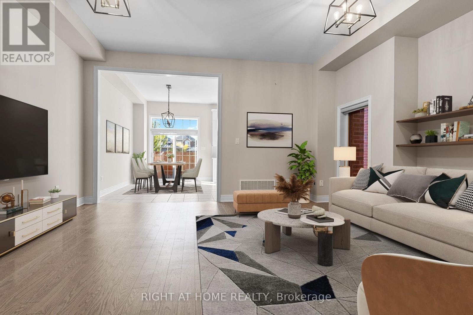 Welcome to this stunning 2-storey approx 1935 sqft Galea Model townhome featuring 10' ceilings on the main floor & 9' ceilings on the second flr, creating a bright, open, and luxurious atmosphere throughout. This spacious kitchen includes all S/S appliances, island & tons of cabinets for plenty of storage. Luxurious granite countertops in the kitchen & all bathrooms. Hardwood flooring on the main level and a double-door front entry that sets an elegant tone from the moment you arrive. This very spacious layout includes 2 large main-floor closets plus a convenient pantry closet for extra storage. Enjoy the finished basement with a 2-piece bathroom & a large recreation space. Step outside to beautifully finished patterned concrete front and back patios/walkways and a fully fenced backyard offering total privacy with a clear front view and no homes directly backing onto your backyard. Great location close to all amenties. (id:51158)