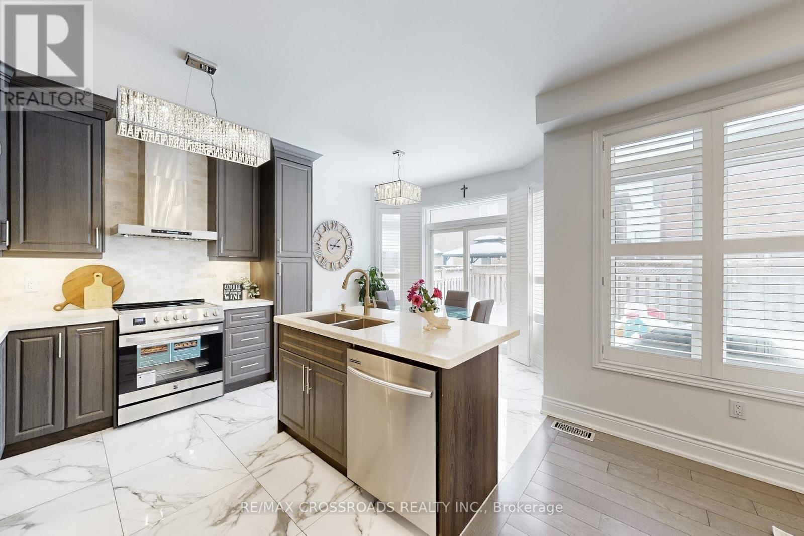 Pride of ownership in Vellore Village, Vaughan. Beautifully updated, sun-filled home featuring 9-ft flat ceilings, hardwood flooring throughout, pot lights, and California shutters on the main floor. Bright, functional layout offers privacy and comfort for family living. Modern gourmet kitchen with central island, brand new refrigerator, induction stove, breakfast area, and walk-out to garden. Spacious primary bedroom with walk-in closet and updated 5-piece ensuite. Extra-wide driveway parks two cars. Professionally landscaped front and backyard-easy to maintain and ideal for family enjoyment. Partially finished basement offers flexible space for gym or recreation. Minutes to Hwy 400, subway station, shopping, restaurants, parks, top ranking schools, Vaughan Mills, Wonderland, Cortellucci Hospital, and all amenities. (id:51158)