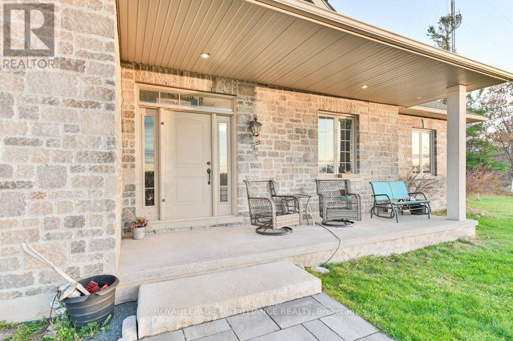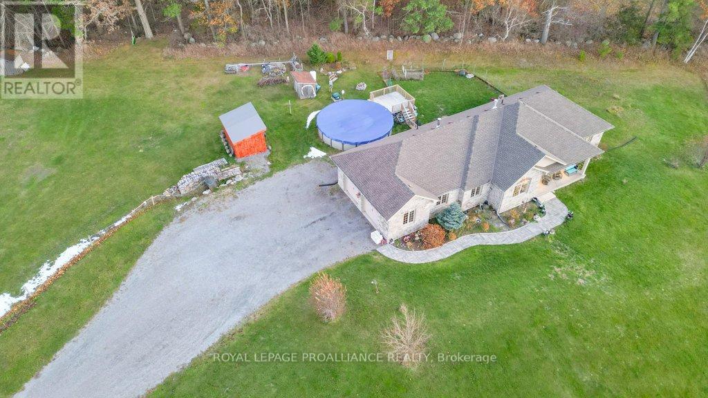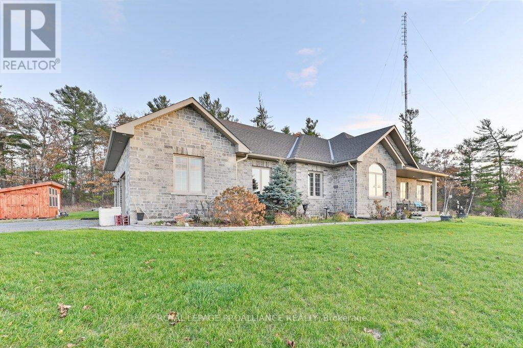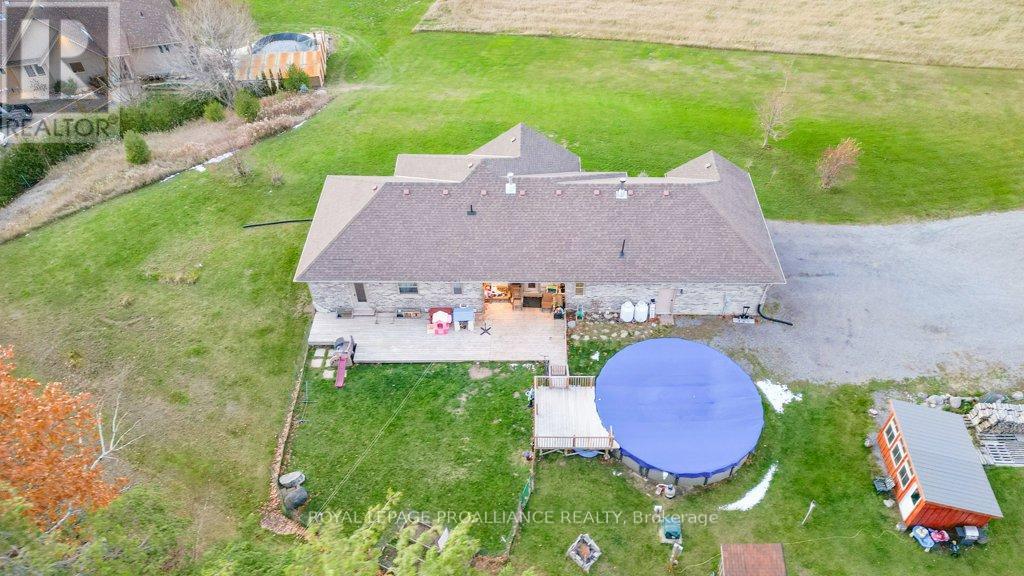 Nestled on 4.7 acres in the picturesque Oak Hills and overlooking beautiful Oak Lake, this exceptional custom all-brick bungalow offers space, privacy, and breathtaking views. Perfectly positioned to capture spectacular sunsets, it's the ideal place to unwind at the end of the day-enjoy a glass of wine or bourbon while watching the sky transform with incredible colours over the lake. The home features main floor laundry, three bedrooms on the main level, and two additional bedrooms on the lower level, along with three full bathrooms and an oversized double-car garage with both inside and outside entry. The inviting main floor offers open-concept living with a stunning stone feature fireplace and beautiful views from every window. The kitchen includes all appliances, a propane stove, and a walk-in pantry, and flows seamlessly into the bright dining area. French doors from the dining room lead to the backyard, where a fenced area provides the perfect space for pets, children, or added privacy. The welcoming front porch is perfectly situated to take in the unforgettable sunset views over Oak Lake. The lower level offers two additional bedrooms, a cozy woodstove, and plenty of space for relaxing, entertaining, or accommodating extended family. Additional features include an HRV system, a heated saltwater pool, and a 10' x 16' garden shed. Located just 10 minutes from Belleville and only minutes to Stirling and the Oak Hills Golf Course, this property offers peaceful country living with convenient access to amenities. A truly one-of-a-kind retreat with views you'll never forget. (id:51158)