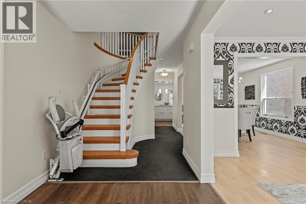 Make a splash this summer with your very own pool! Tucked away on a quiet court, this upgraded 4+1 bed, 3.5 bath, 2 storey home offers just over 2700 sqft of finished living space and many incredible features perfect for a growing family. The main level contains a welcoming foyer next to a joined living/dining room with large windows and an electric fireplace. Cook in this modern open concept kitchen (2016) with large island, stone countertops, tile backsplash, and built-in stainless steel appliances that overlooks a cozy sunken family room with a brick fireplace with gas insert. A laundry room with access to a powder room, garage, and side entrance rounds out the convenient main floor features. The second level contains 4 generous sized bedrooms with a modern main bathroom (2015) with glass shower and a huge primary bedroom with ensuite and large closets. The fully finished basement contains an exercise room, 5th bedroom, large rec-room, 3 piece bathroom (2022), and tons of storage. Step outside to a fully fenced yard containing a huge wooden deck surrounding an above ground pool (new liner 2024), perfect for relaxing in the sun or entertaining guests. The property offers unique accessibility features such as wheelchair accessible entryway and electric stair lift. Conveniently located near highway access, shopping, restaurants, and everyday amenities. Additional Upgrades: A/C (2023), Furnace (2020), Backflow Valve (2019), Roof (2018), Electrical Panel (2016), 2nd Floor Windows (2016). Won't last long! (id:51158)