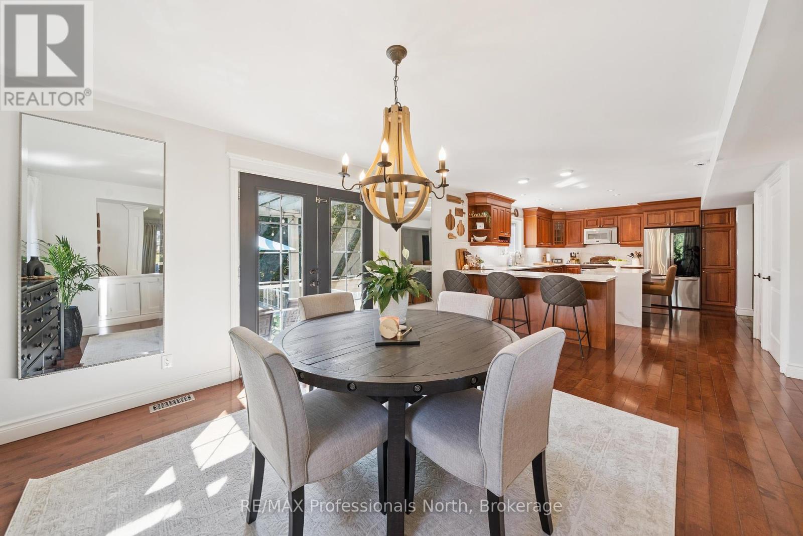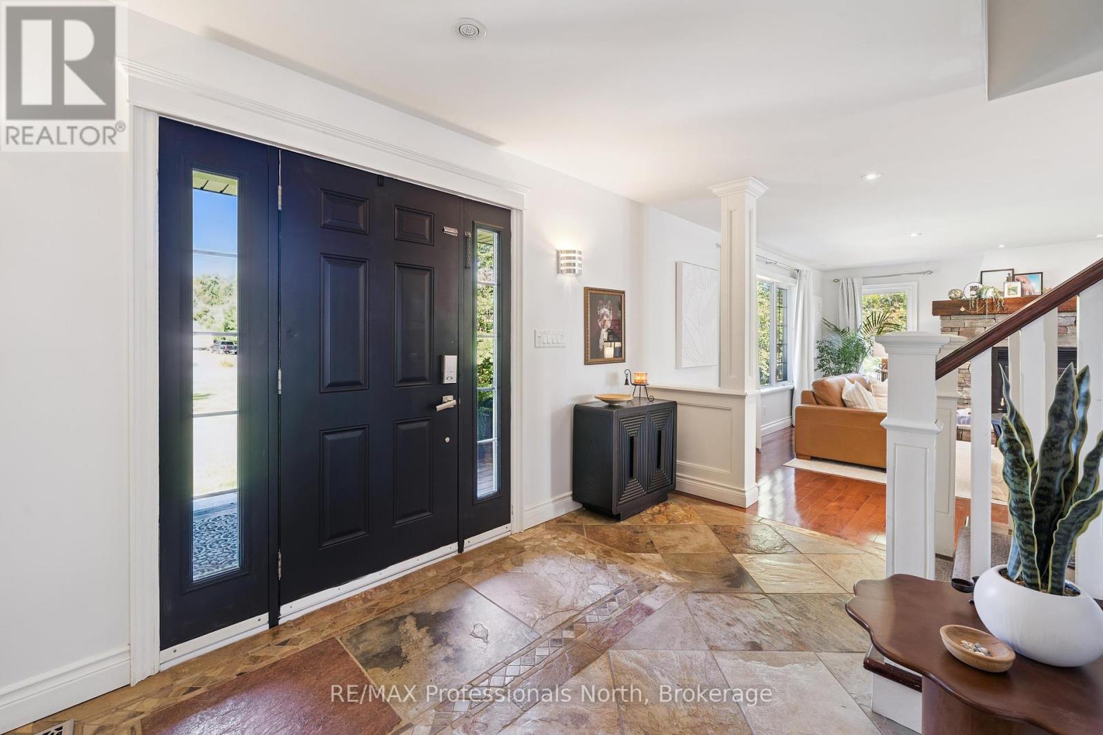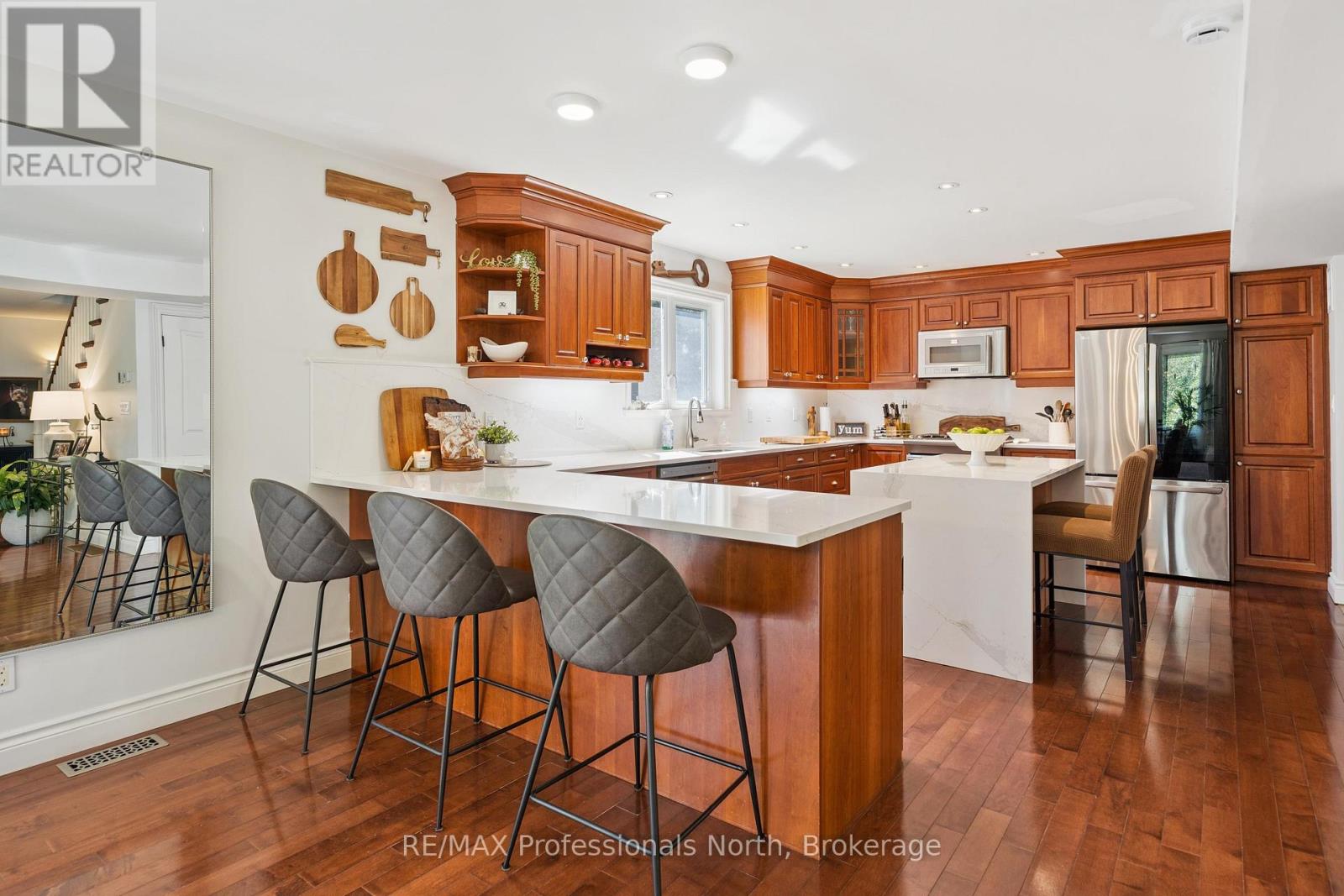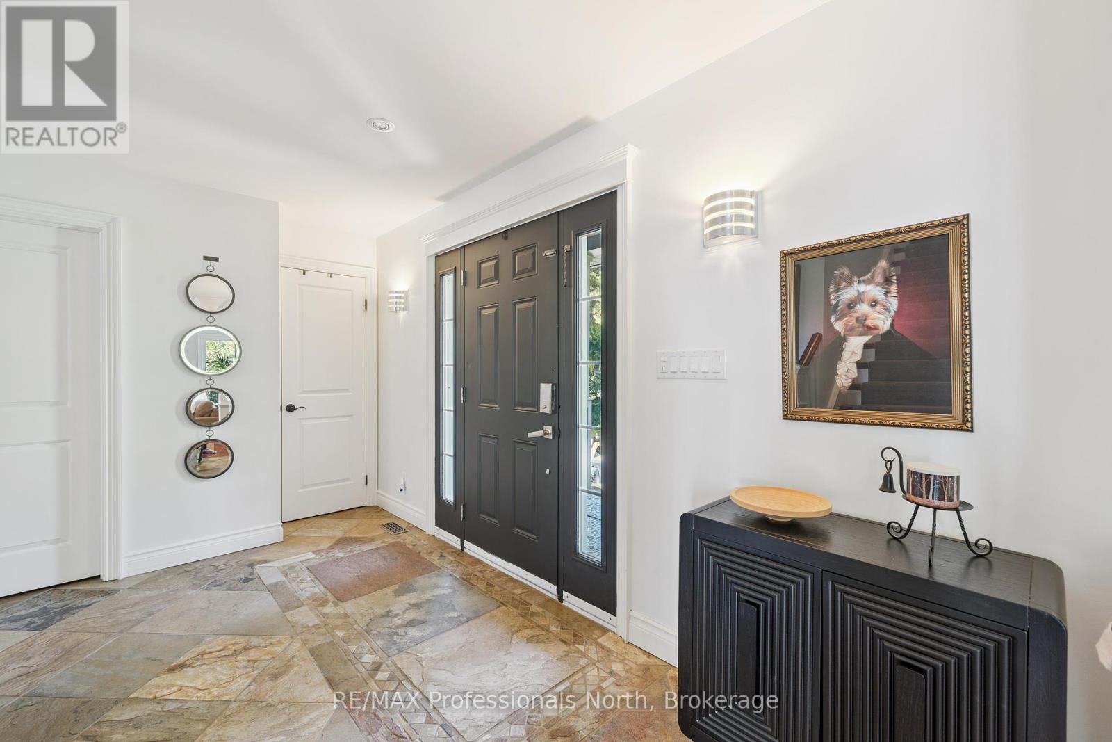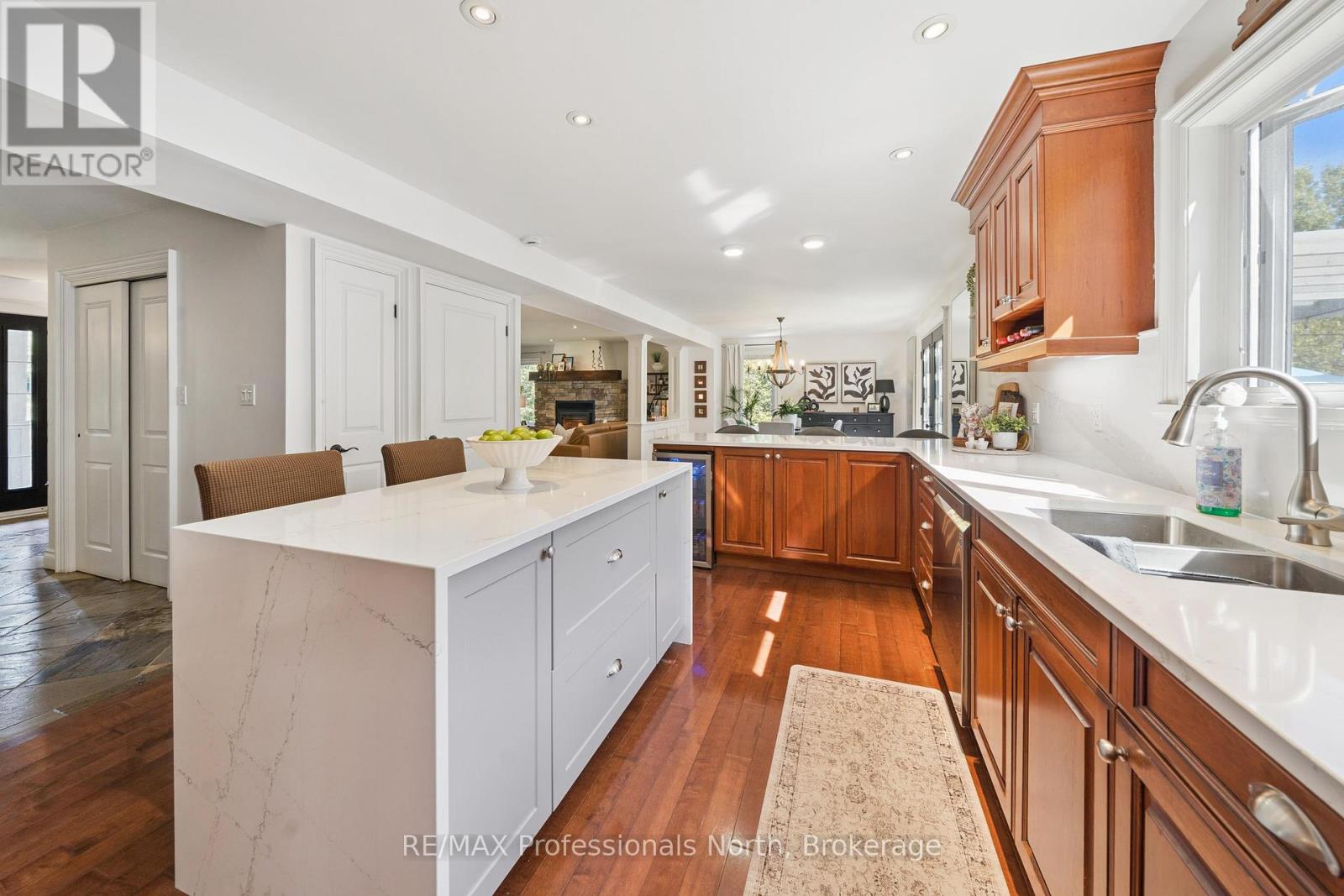 Welcome to Riverview Estates one of Huntsvilles most sought-after neighbourhoods, just minutes from downtown. Nestled alongside the Muskoka River, which connects Fairy Lake and Mary Lake, this community offers both convenience and a true Muskoka lifestyle. This charming two-storey, four-bedroom, four-bathroom home has been lovingly maintained and thoughtfully updated. A granite stone walkway leads to a spacious front porch the perfect spot for your morning coffee or evening unwind while watching deer wander by. Inside, the open-concept living and dining area is anchored by a stunning stone, wood-burning fireplace and hardwood flooring. The large kitchen is a true centerpiece, featuring brand-new quartz countertops, backsplash, and an island, gas oven and tons of storage and counter space. It overlooks a portion of the wooded backyard, bringing nature right into your cooking and dining experience. Upstairs, you'll find three generous bedrooms, including a primary suite with ensuite bath - double sinks, plus an updated four-piece bathroom. All bathrooms have been refreshed with new flooring, vanities, countertops, sinks, and light fixtures. A brand-new finished basement adds even more living space, including a large recreation room, office area, bedroom, and full three-piece bathroom. Over the garage, a bonus recreation room with a cozy gas furnace, endless possibilities here for movie nights, playroom, or home office. Step outside to your private backyard oasis, featuring a pool with a brand-new heater, large deck, and screened-in shed ideal for entertaining or relaxing in total privacy. The sellers have invested in numerous upgrades for peace of mind, including: Hot water on demand Generac system (2024)New A/C (2023)New roof Brand-new pool heater Riverview Estates is a family- and pet-friendly neighbourhood with flat streets perfect for walking and biking, nearby boat launches, and 50 acres of hiking trails just across from Riverside Public School. (id:51158)