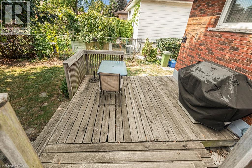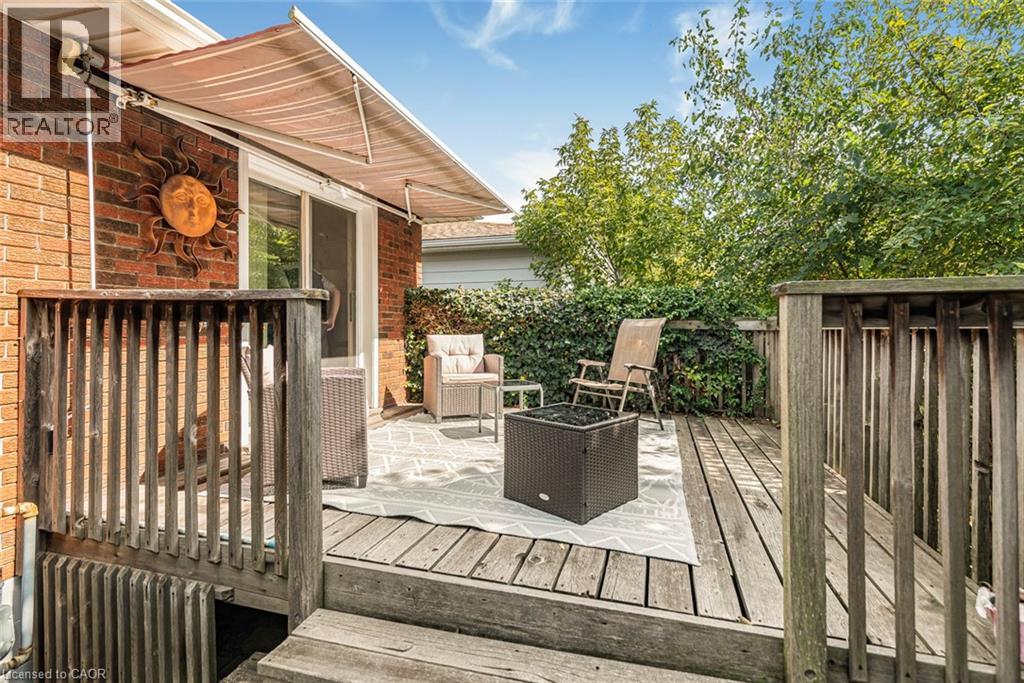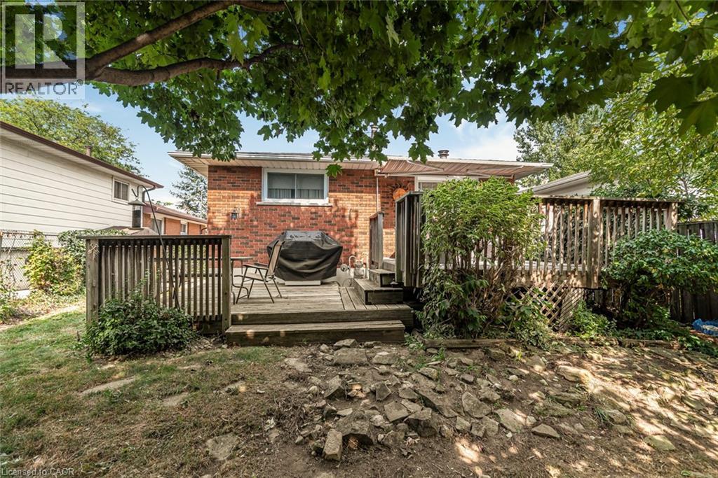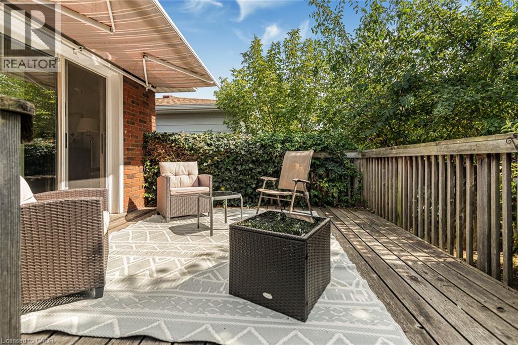 Welcome to this charming 3 + 1 bedroom, brick bungalow. Offering both comfort & versatility! Main floor offers bright eat-in-kitchen, updated 3 pc walk-in shower bath (2022), hardwood floors. A set of patio doors off the back bedroom opens to a two tiered deck with manual retractable awning, perfect for morning coffee or evening relaxation. The partially finished lower level extends the living space with a cozy recreation room (brick wood burning fireplace in as is condition), 3 pc bath, additional bedroom, workshop, & a dedicated laundry room - ideal for family living or in-law potential. With its functional layout, multiple entrances and welcoming curb appeal; this home is truly cute & inviting! (id:51158)
