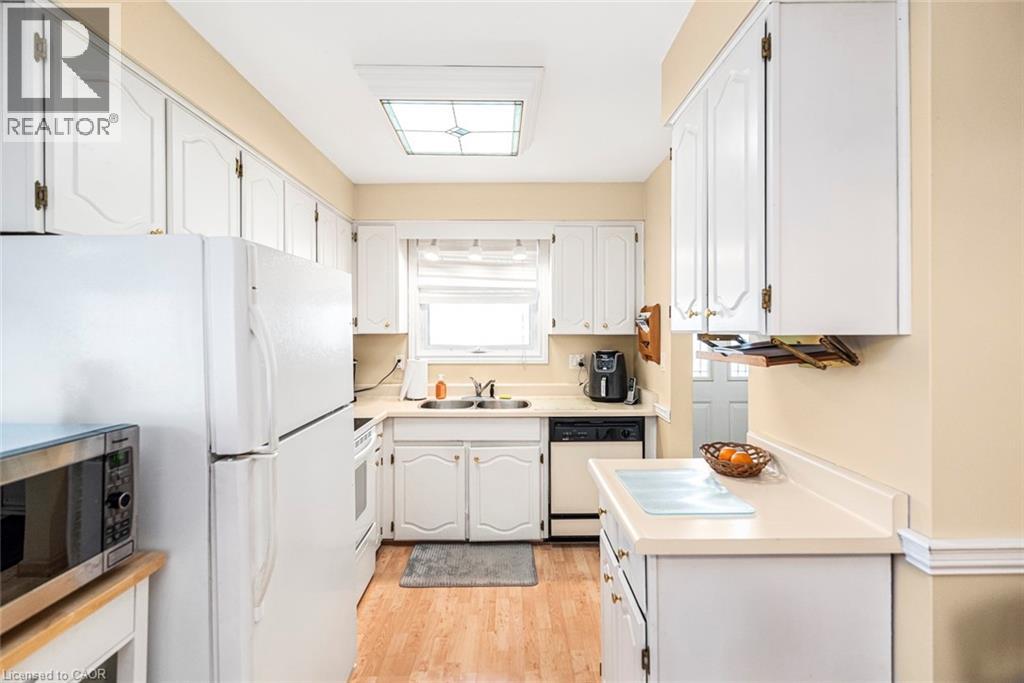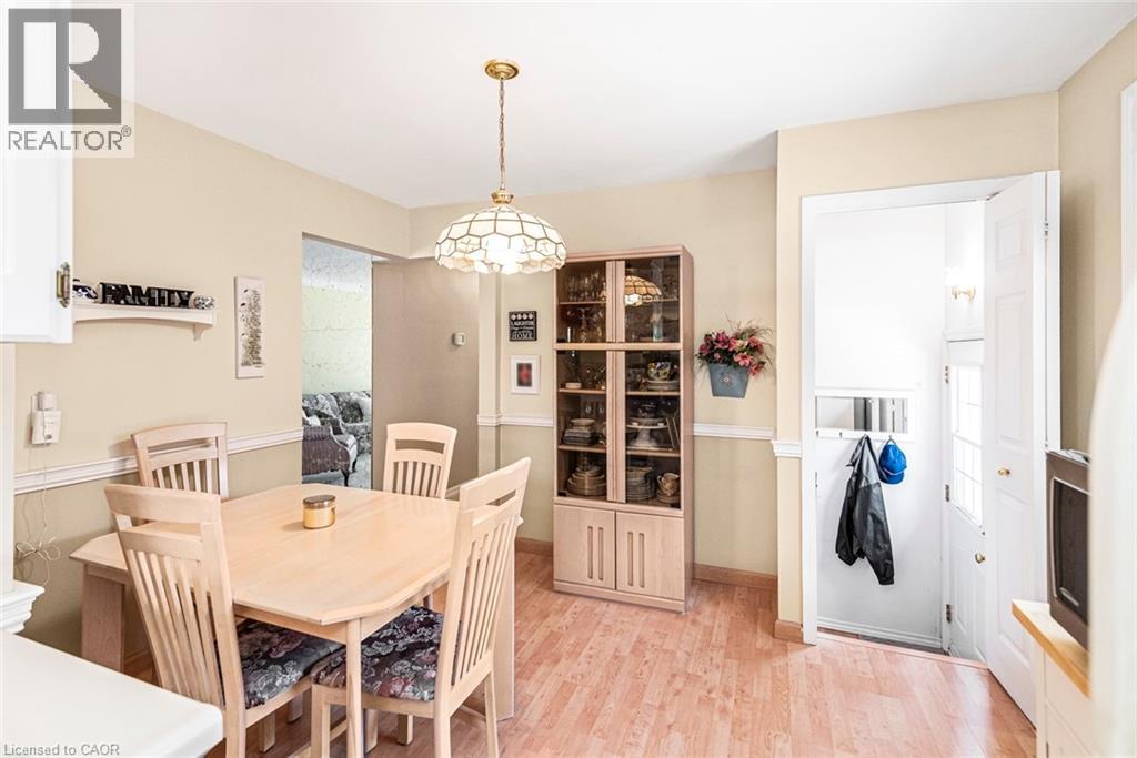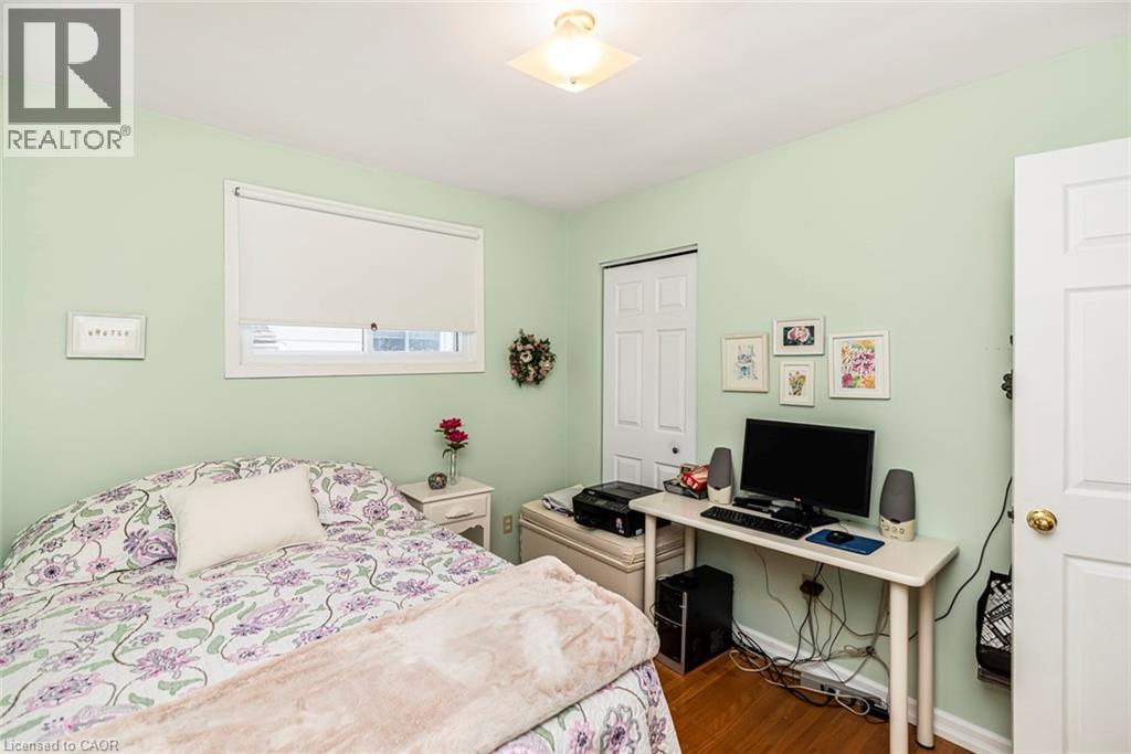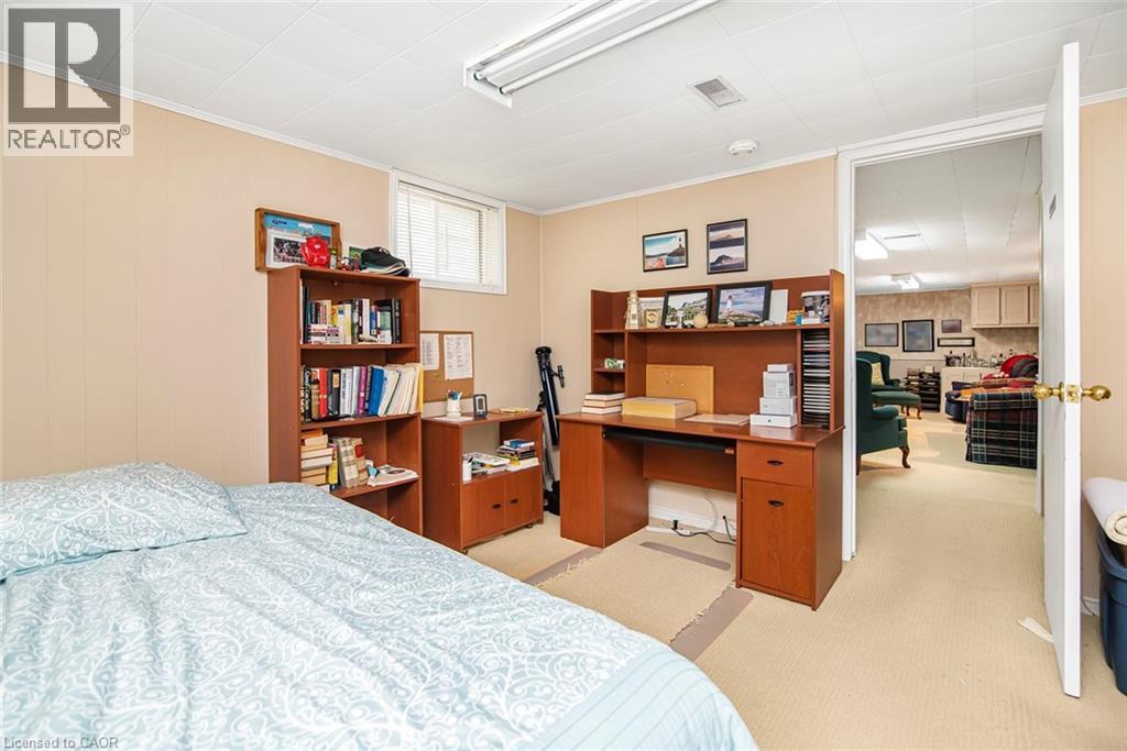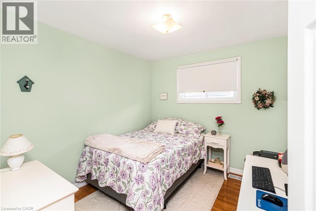 Welcome to this charming 3 + 1 bedroom, brick bungalow. Offering both comfort & versatility! Main floor offers bright eat-in-kitchen, updated 3 pc walk-in shower bath (2022), hardwood floors. A set of patio doors off the back bedroom opens to a two tiered deck with manual retractable awning, perfect for morning coffee or evening relaxation. The partially finished lower level extends the living space with a cozy recreation room (brick wood burning fireplace in as is condition), 3 pc bath, additional bedroom, workshop, & a dedicated laundry room - ideal for family living or in-law potential. With its functional layout, multiple entrances and welcoming curb appeal; this home is truly cute & inviting! (id:51158)