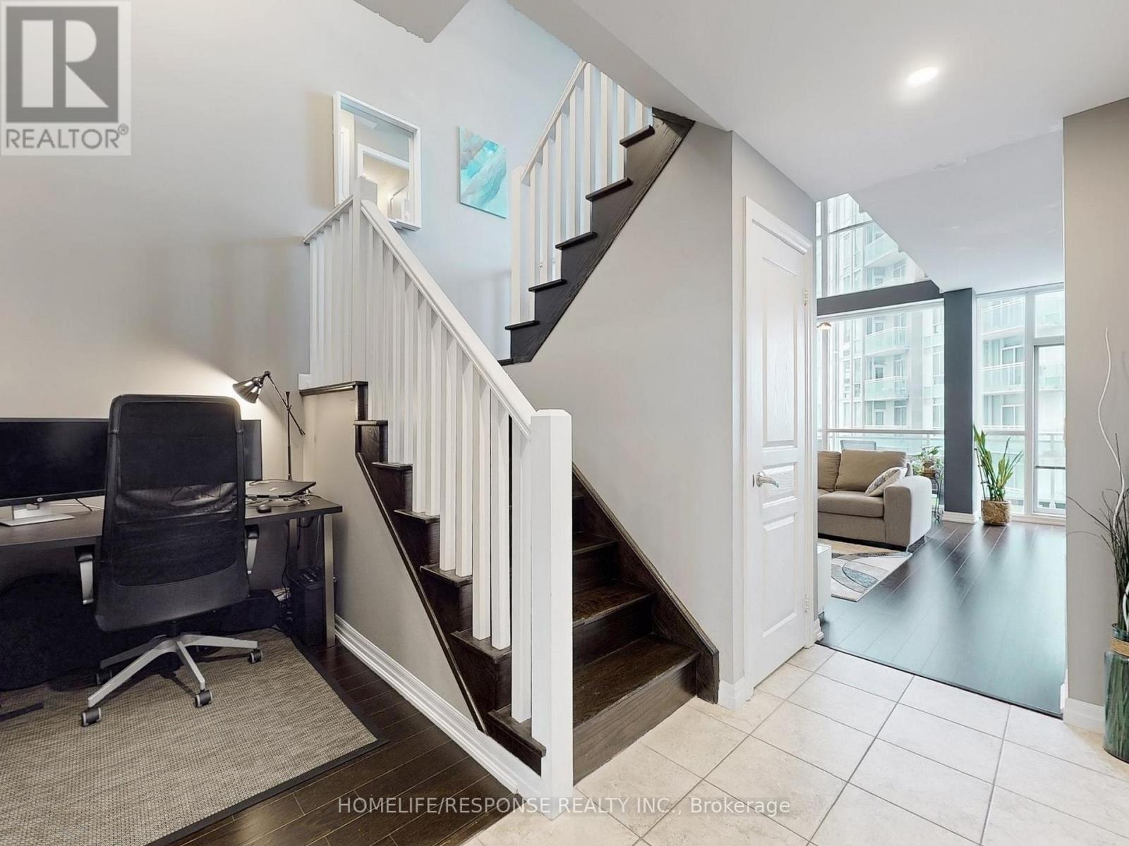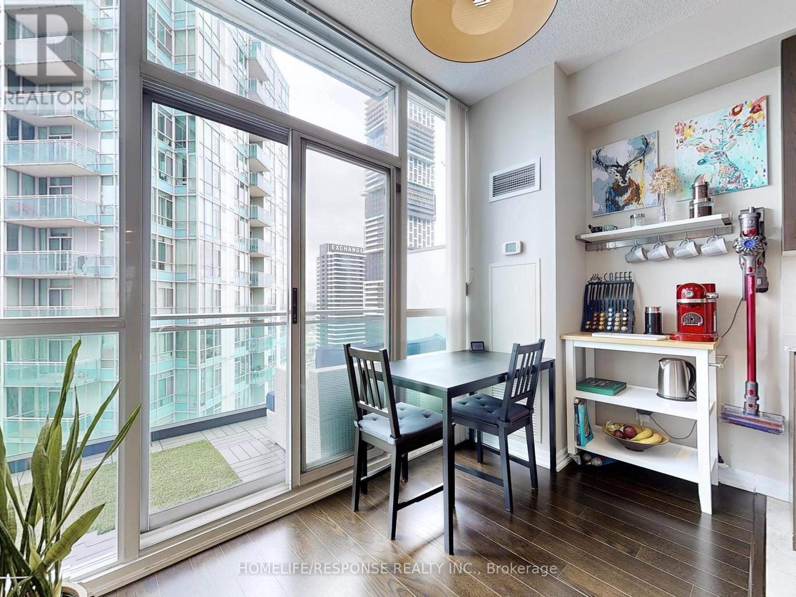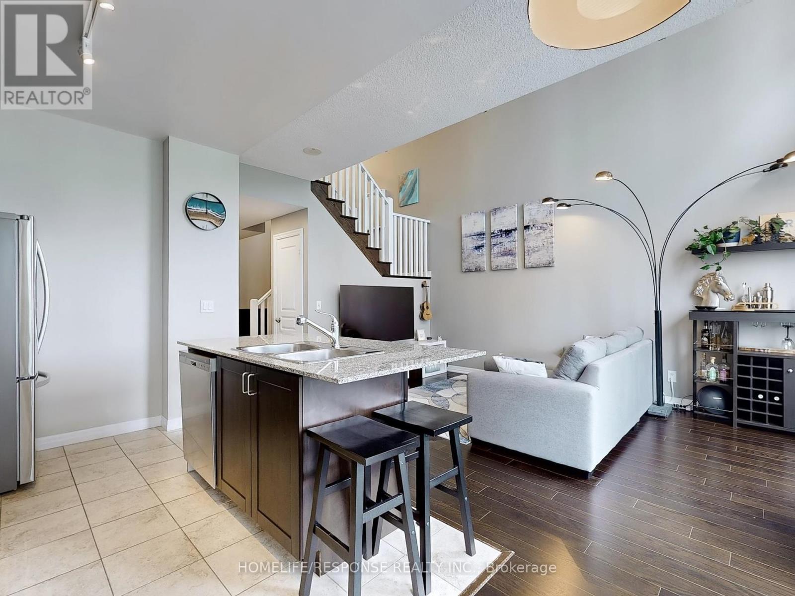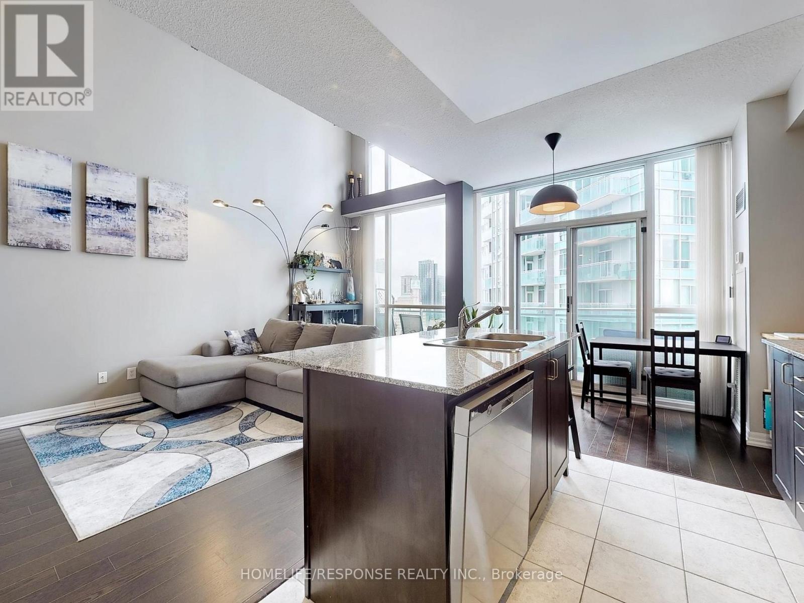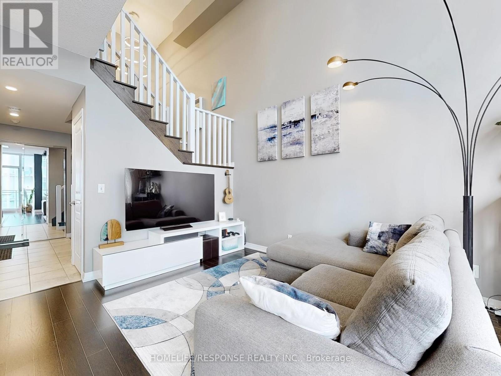 Dreams Really Do Come True! This one-of-a-kind, modern two-storey loft in the upscale Onyx building offers over 800 sq ft of luxurious living in the heart of downtown Mississauga. Featuring a gorgeous upgraded kitchen with stainless steel appliances, granite counters, and a center island, its perfect for entertaining. The bright, open-concept design boasts soaring 18-foot floor-to-ceiling windows that flood the space with natural light, a spacious living and dining area, and a large balcony with breathtaking panoramic views of Mississauga and Celebration Square an ideal spot to watch fireworks! This beautifully designed loft includes 1 bedroom + den, 2 bathrooms, a large closet, and a 4-piece ensuite. The versatile den is perfect for a home office or nursery. Residents enjoy unbeatable convenience with steps to grocery stores, medical care, Sheridan college, YMCA, Library, top restaurants, entertainment, Square One Mall, walking distance to tennis/soccer fields and easy access to buses, the QEW, 401/403, and Cooksville GO station all just minutes away. Next to Kariya park with cherry blossoms in spring. Experience refined urban living in one of Mississauga's most sought-after addresses! 2 Parking. Amenities Include: 24 Hour Concierge! Guest Parking! Rooftop Patio! Fitness Centre! Yoga Room, Indoor Pool, Hot Tub! (id:51158)
