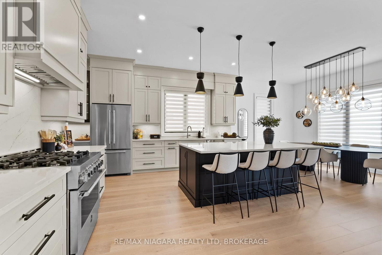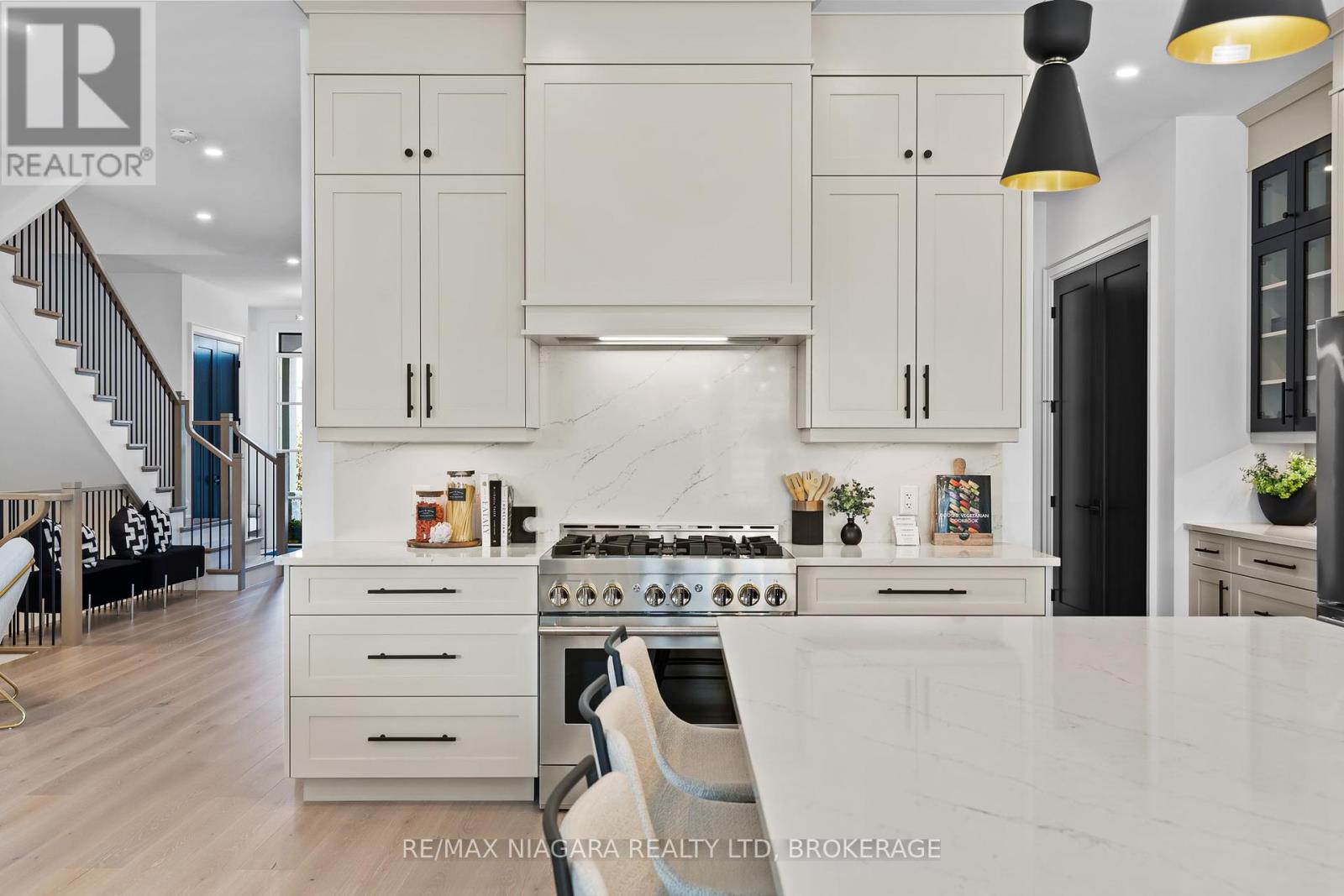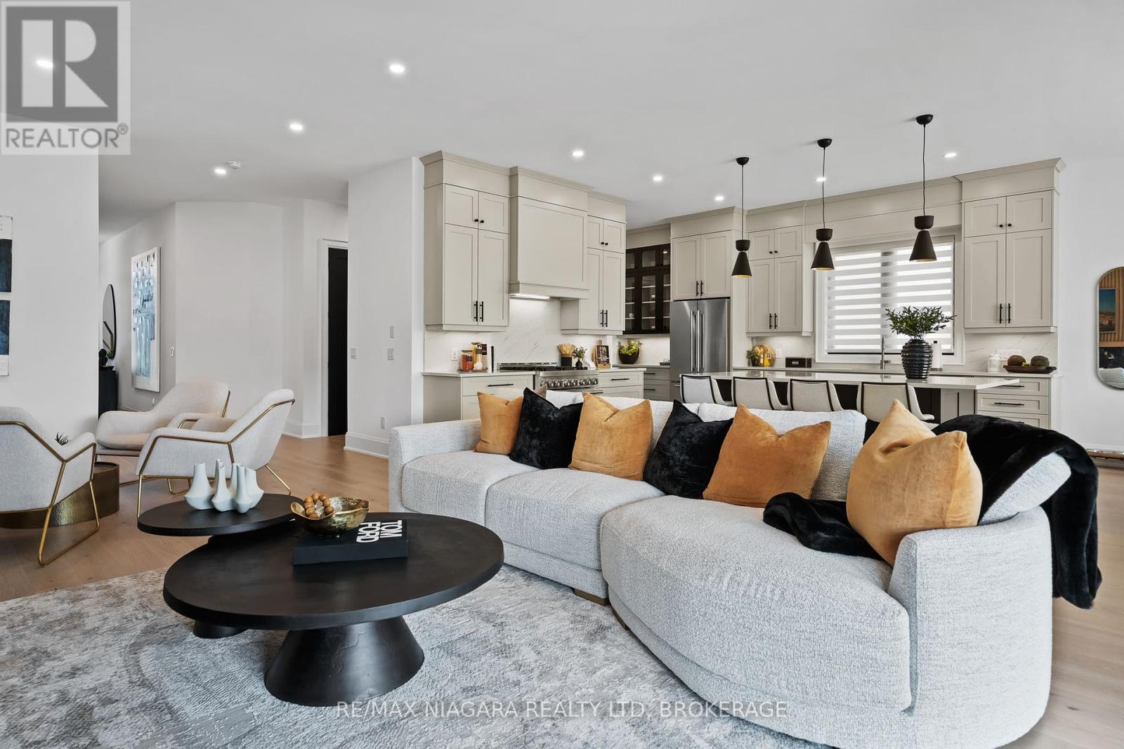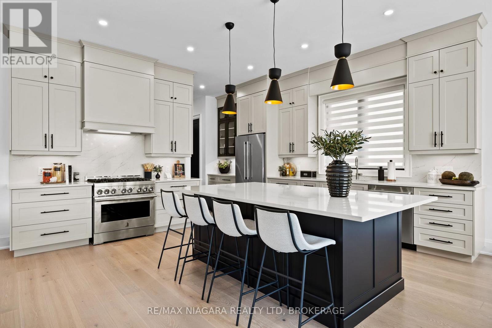 $70,000 0FF THE FIRST 7 OFFERS!!!! KENMORE HOMES 70TH ANNIVERSARY SPECIAL!!!! Welcome to luxury living in Terravita, Niagara Falls premier new home community. This brand-new Kenmore Homes model offers an exquisite blend of modern elegance and thoughtful design, with over 4,000 sq. ft. of finished living space. Featuring 10' ceilings on the main floor and 9' ceilings on the second, this home is flooded with natural light, enhanced by 8' doors and automatic window coverings throughout. Pot lights are installed inside and out, adding a sophisticated ambiance to every space. The spacious 4+1 bedroom, 4.5 bathroom layout ensures that every bedroom has direct access to a bathroom, making it perfect for families or guests.The gourmet kitchen is a chefs dream, boasting high-end Jenn-Air stainless steel appliances. Sleek quartz backsplash, an oversized kitchen island, and a butlers station or coffee bar and pantry closet provide both functionality and style. The primary suite is a true retreat, featuring a massive walk-in closet and a luxury ensuite with a glass-tiled shower, freestanding tub, and modern fluted wood panel accent wall. Upstairs, a versatile loft space adds extra room for relaxation, while the convenient second-floor laundry comes equipped with a washer and dryer. The finished basement offers incredible additional living space with legal egress windows, a large bedroom/office/gym area, a spacious rec room ideal for a home theatre or pool table, two storage rooms, and a stylish 3-piece bathroom.The exterior is just as impressive, showcasing a stone and stucco facade, a paver stone driveway, front irrigation system and a covered rear patio with glass railing perfect for outdoor enjoyment. Located near schools, walking trails and minutes from wine country, golf courses, fine dining, amongst many other amenities this home places convenience at your doorstep. (id:51158)
