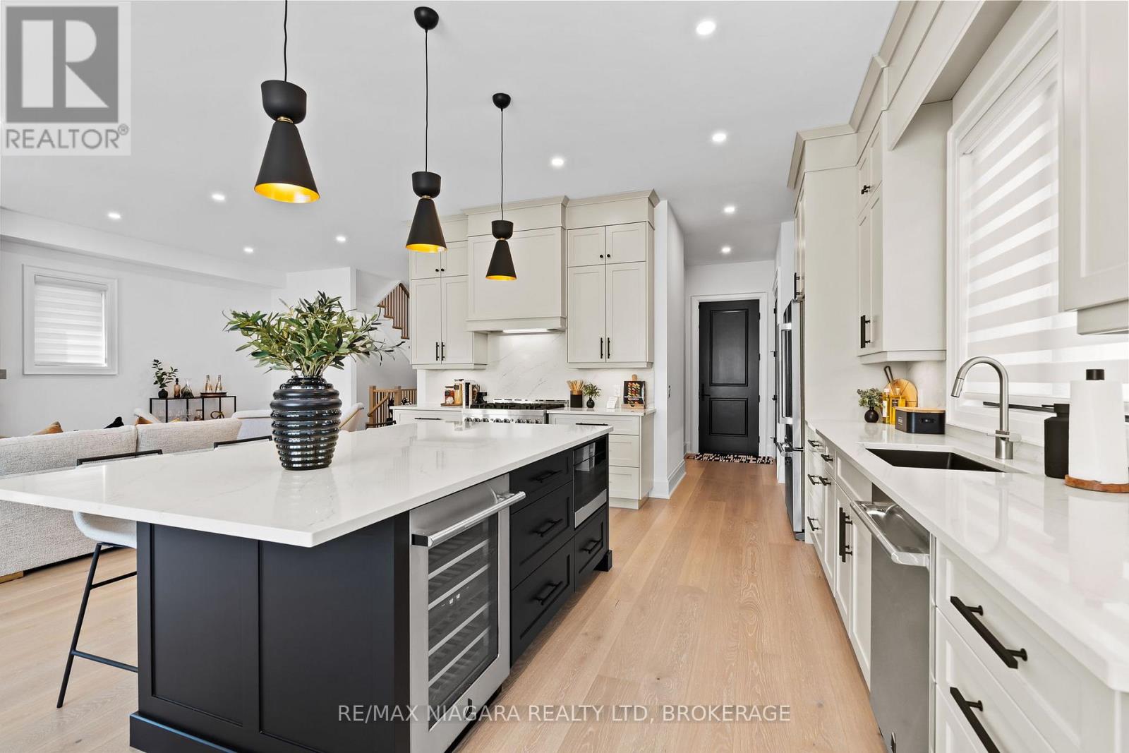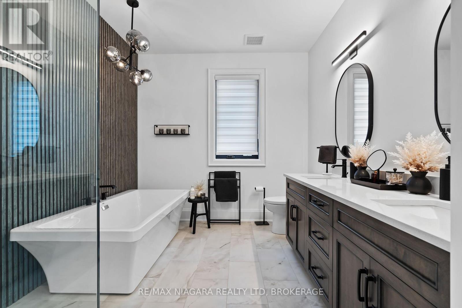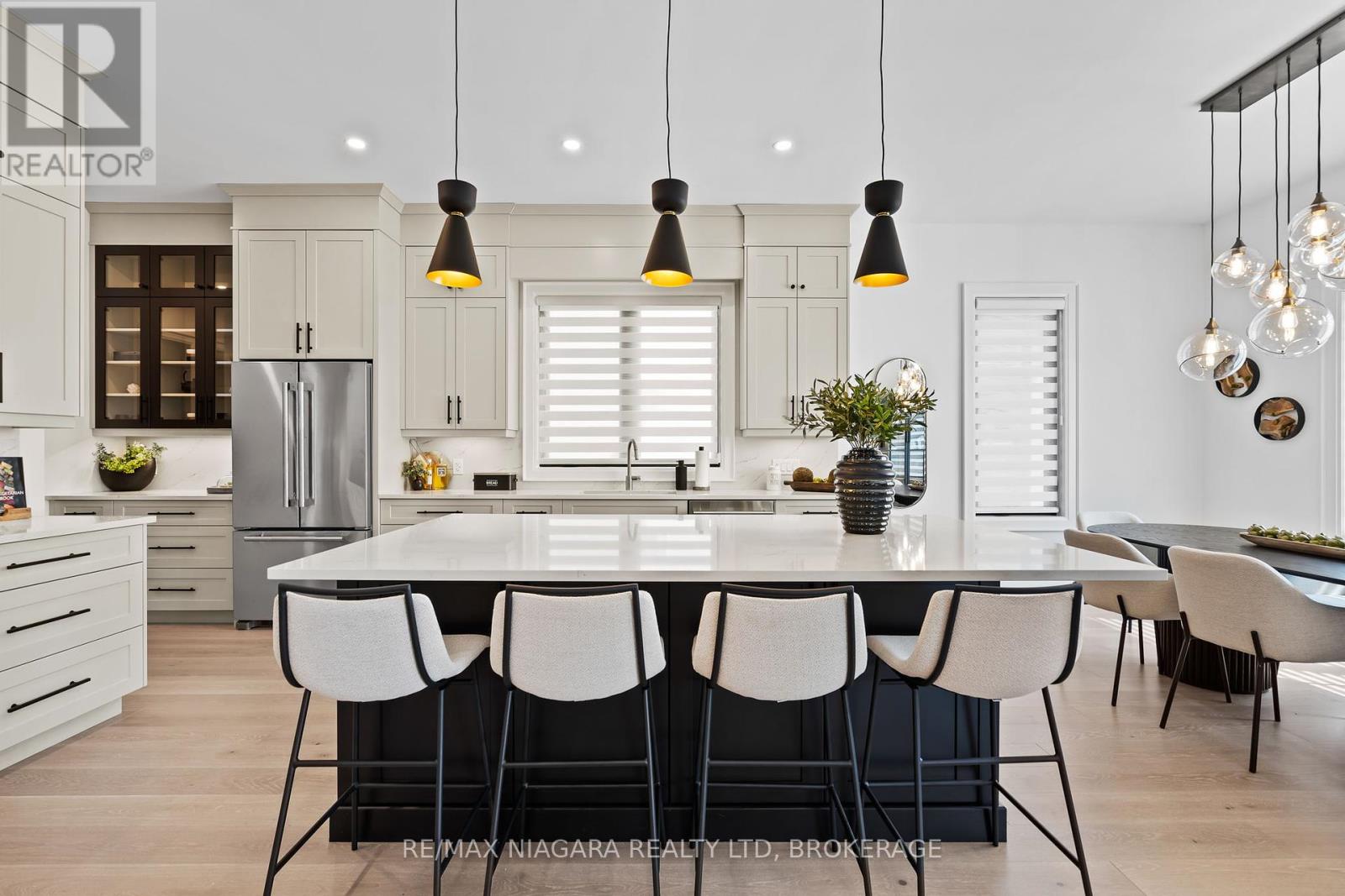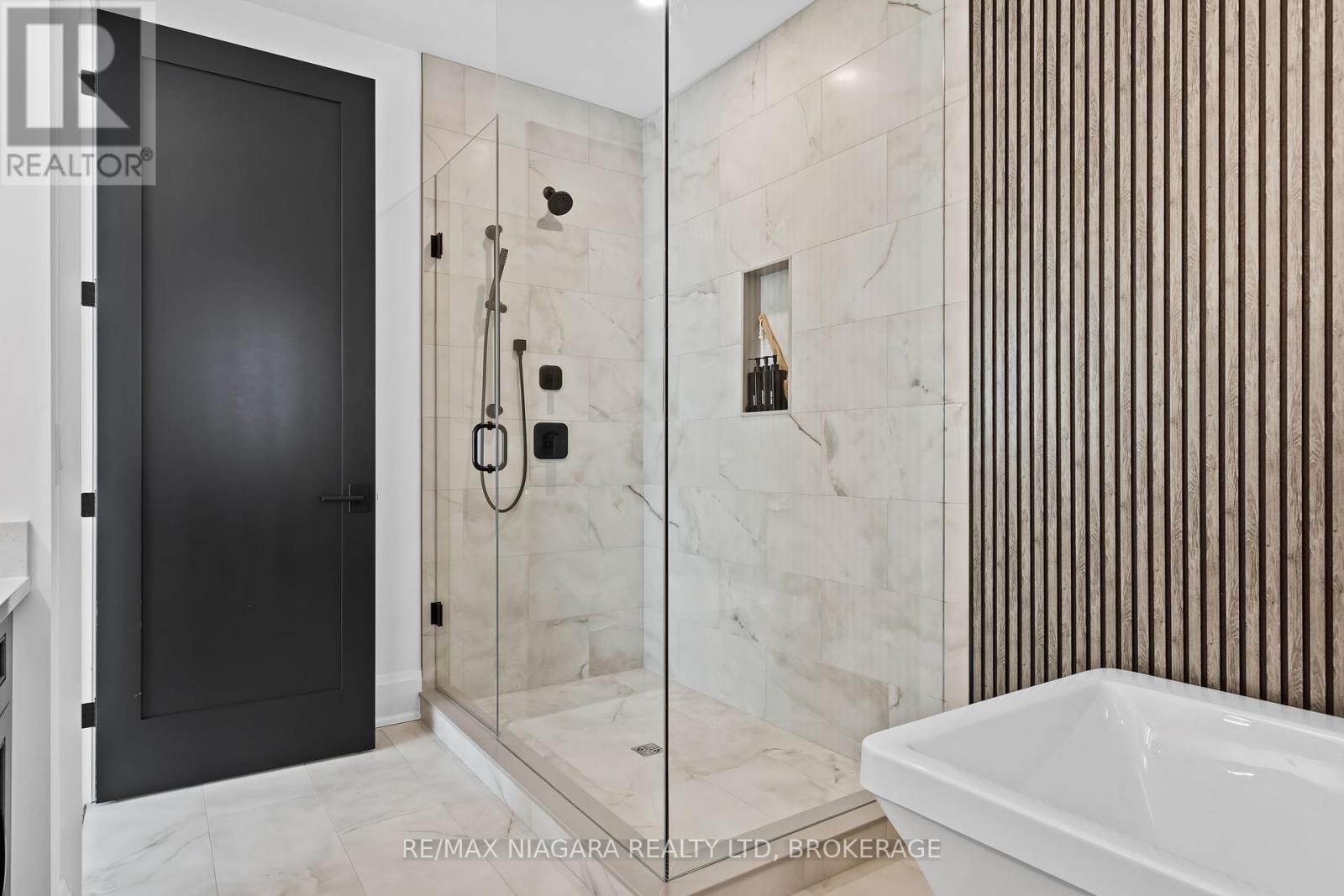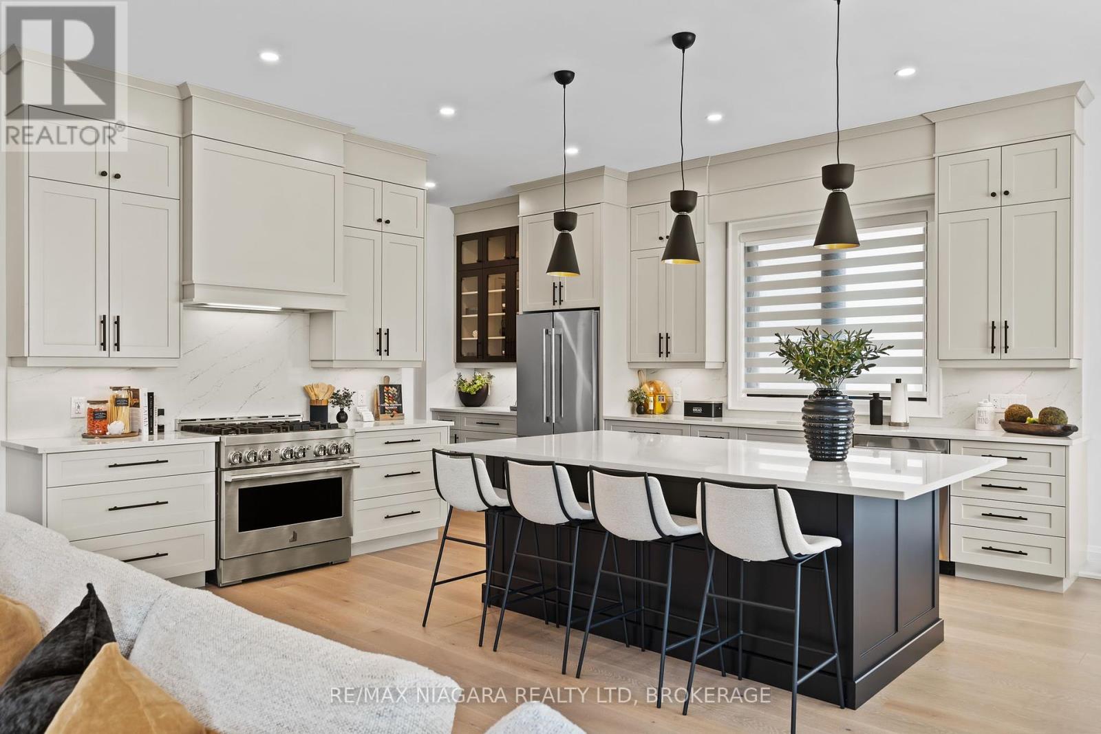 $70,000 0FF THE FIRST 7 OFFERS!!!! KENMORE HOMES 70TH ANNIVERSARY SPECIAL!!!! Welcome to luxury living in Terravita, Niagara Falls premier new home community. This brand-new Kenmore Homes model offers an exquisite blend of modern elegance and thoughtful design, with over 4,000 sq. ft. of finished living space. Featuring 10' ceilings on the main floor and 9' ceilings on the second, this home is flooded with natural light, enhanced by 8' doors and automatic window coverings throughout. Pot lights are installed inside and out, adding a sophisticated ambiance to every space. The spacious 4+1 bedroom, 4.5 bathroom layout ensures that every bedroom has direct access to a bathroom, making it perfect for families or guests.The gourmet kitchen is a chefs dream, boasting high-end Jenn-Air stainless steel appliances. Sleek quartz backsplash, an oversized kitchen island, and a butlers station or coffee bar and pantry closet provide both functionality and style. The primary suite is a true retreat, featuring a massive walk-in closet and a luxury ensuite with a glass-tiled shower, freestanding tub, and modern fluted wood panel accent wall. Upstairs, a versatile loft space adds extra room for relaxation, while the convenient second-floor laundry comes equipped with a washer and dryer. The finished basement offers incredible additional living space with legal egress windows, a large bedroom/office/gym area, a spacious rec room ideal for a home theatre or pool table, two storage rooms, and a stylish 3-piece bathroom.The exterior is just as impressive, showcasing a stone and stucco facade, a paver stone driveway, front irrigation system and a covered rear patio with glass railing perfect for outdoor enjoyment. Located near schools, walking trails and minutes from wine country, golf courses, fine dining, amongst many other amenities this home places convenience at your doorstep. (id:51158)