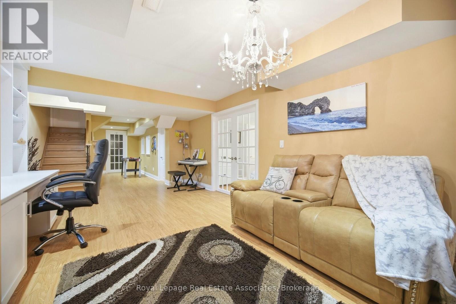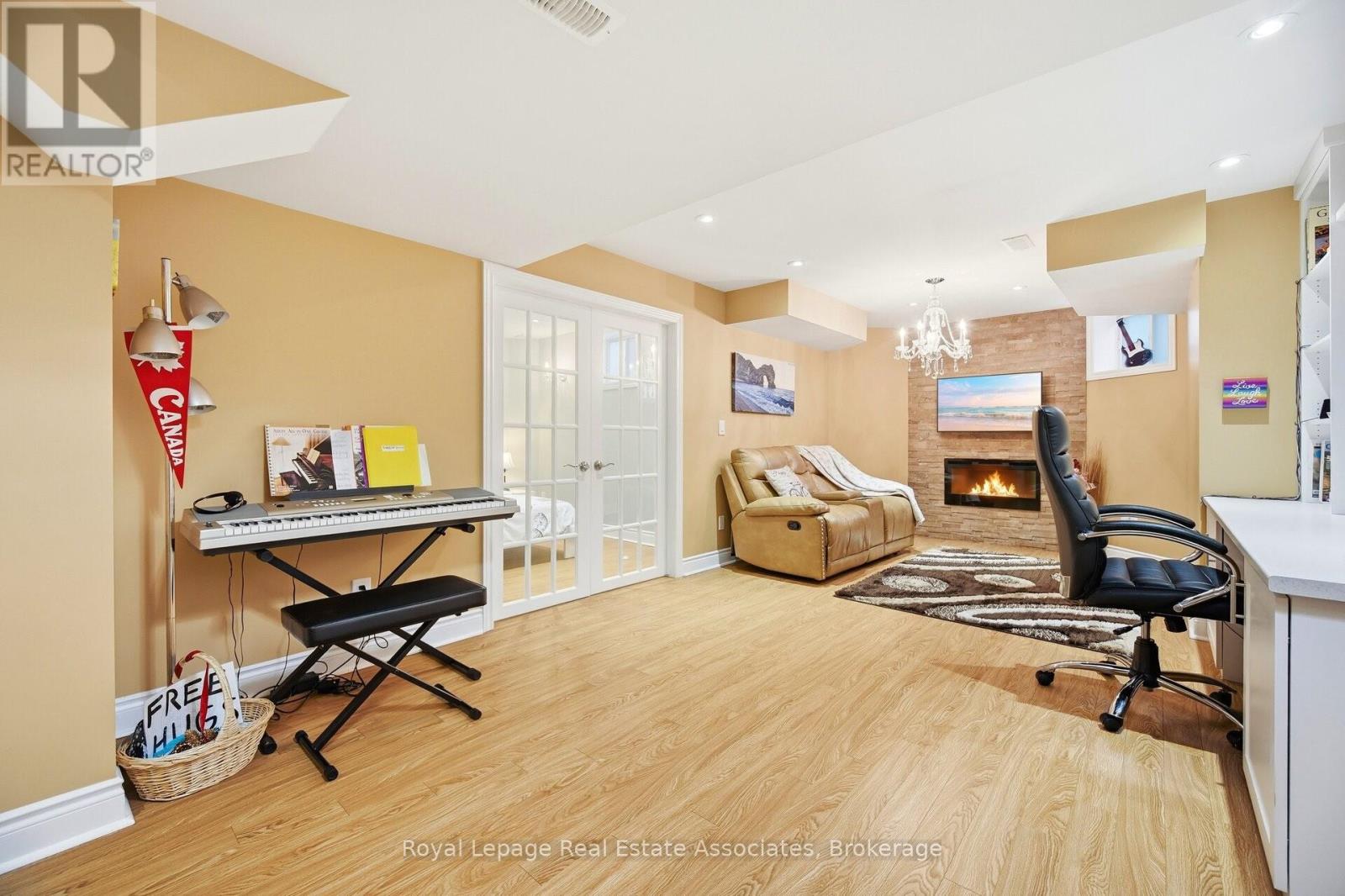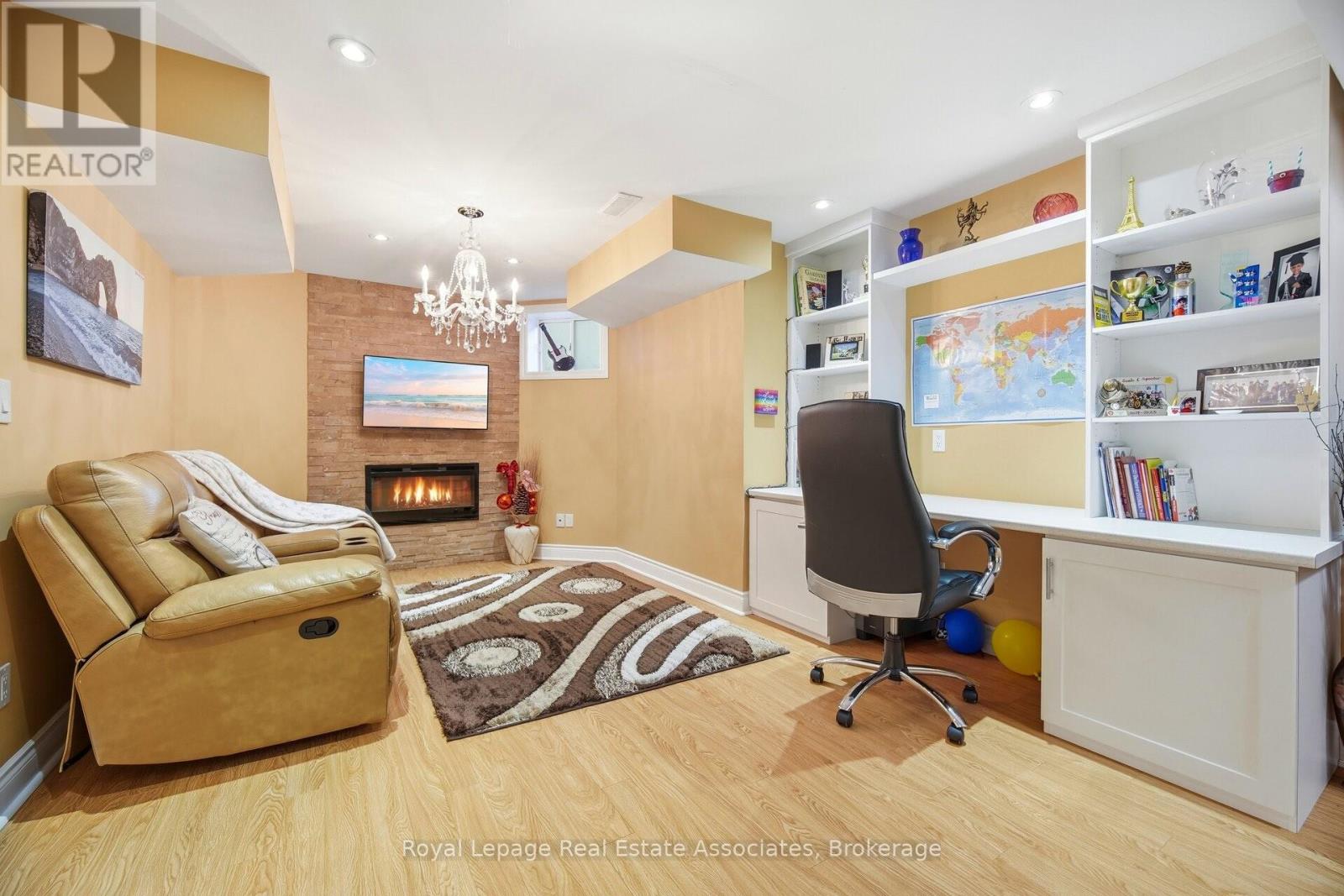 Absolutely stunning and impeccably maintained executive home located on a quiet, family-friendly street in desirable Westmount. This beautifully upgraded, carpet-free 3+1 bedroom, 4-bath residence showcases quality craftsmanship and thoughtful design throughout. Step inside through double doors to an impressive great room with 9-ft ceilings, abundant natural light, and a gas fireplace. The chef-inspired kitchen features granite countertops, travertine backsplash, stainless steel appliances, pantry storage, a large breakfast island, and a bright eat-in area. California shutters, pot lights, and upgraded lighting enhance the space throughout. The second level offers a spacious primary retreat with a sitting area, walk-in closet, and spa-like ensuite with soaker tub. Two additional generously sized bedrooms and a convenient upper floor laundry room complete this floor. The professionally finished basement is exceptionally bright with large windows and offers a stylish family room with a modern ledge rock fireplace, built-in desk and bookcase, an additional bedroom, a 3-piece bath, and ample storage. The backyard is equally impressive, with an oversized patio, curved backyard feature wall, low-maintenance landscaping, and fully fenced. Close to Oakville Hospital, top-rated schools, Bronte GO Station, Bronte Creek Provincial Park, walking trails, and major highways. A turnkey lease opportunity-move in and enjoy. (id:51158)
