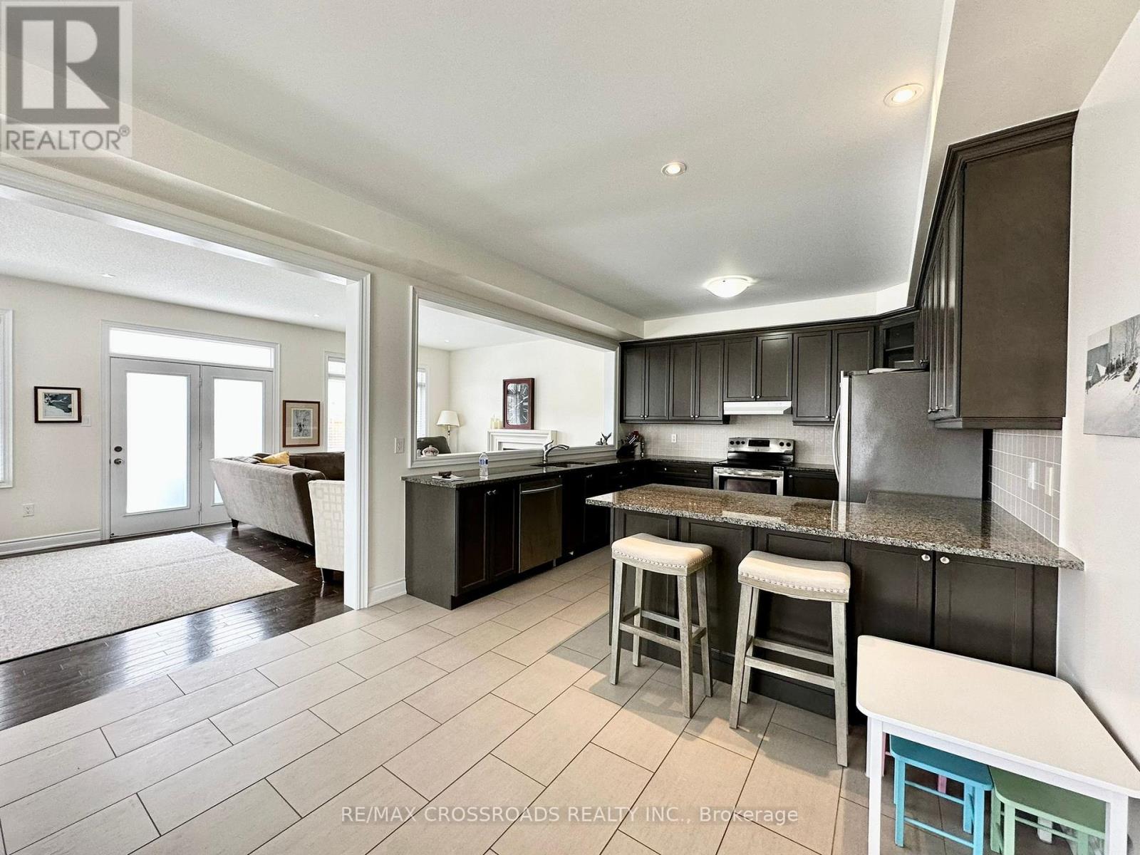 This stunning detached home in the highly sought-after Stouffville area features 4 spacious bedrooms & 3 bathrooms, complemented by a double garage. The interior boasts bright & airy living spaces, highlighted by impressive 9-foot ceilings that enhance the overall sense of openness. The *functional layout* is designed for both comfort & convenience, with an open concept living & dining area that seamlessly flows into the backyard, perfect for entertaining or family gatherings. The kitchen is featuring elegant *granite countertops* and high-quality *maple hardwood flooring* throughout the main level, ensuring a warm & inviting atmosphere. This home is equipped with certified energy-efficient high-end appliances, ensuring both sustainability & cost savings. The family room is a cozy retreat, complete with pot lights and a stylish fireplace, creating the perfect ambiance for relaxation. The *primary bedroom* offers an ensuite bathroom, providing a private sanctuary for homeowners. Additionally, the third bedroom features a walk-out balcony, ideal for enjoying morning coffee or evening sunsets. Conveniently located, this property is within close proximity to excellent schools, picturesque parks, a tennis court, shopping centers, and the vibrant Main Street. The nearby GO Station makes commuting a breeze, and easy access to Highway 404 ensures that you are just a short drive away from all the amenities you could desire. This home is a perfect blend of modern comfort and prime location , making it an ideal choice for families or anyone looking to enjoy the best of Stouffville living. Don't miss out on this opportunity! (id:51158)